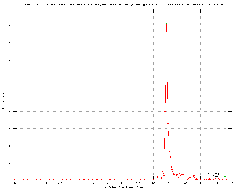 | 5 | we are here today with hearts broken, yet with god's strength, we celebrate the life of whitney houston Urls http://reuters.com/article/2012/02/18/idUS206771456120120218?feedType=RSS&feedName=wtMostRead http://movies.yahoo.com/news/whitney-houston-funeral-guests-begin-arriving-170153631.html http://reuters.com/article/2012/02/19/idUS206771456120120219?feedType=RSS&feedName=wtMostRead http://thewrap.com/movies/article/whitney-houston-funeral-guests-begin-arriving-35519 http://.canada.com/nanaimodailynews/news/story.html?id=6175611 |