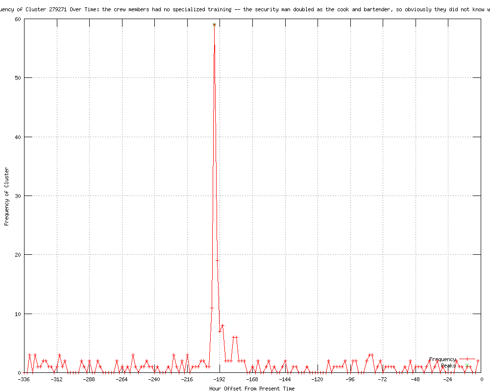 | 120 | the crew members had no specialized training - the security man doubled as the cook and bartender, so obviously they did not know what to do Urls http://sg.news.yahoo.com/hungarian-cruise-ship-victim-crew-violinist-161156560.html http://toledoblade.com/World/2012/01/18/Italy-names-28-missing-from-the-cruise-ship-search-teams-suspend-operations-as-boat-shifts.html http://brownsvilleherald.com/articles/rome-135964-cruise-italians.html http://courierpress.com/news/2012/jan/18/cruise-ship-rescue-operations-suspended-22-still-m/?partner=RSS http://my.news.yahoo.com/italians-name-28-missing-cruise-passengers-crew-140803822.html http://orangeleader.com/topstories/x1405465408/Italians-name-28-missing-cruise-passengers-crew http://ajc.com/business/italians-name-28-missing-1306787.html?cxtype=rss_news_82111 http://kdwn.com/index.php?page=2§ion=WORLD_NEWS&title=Italians_name_28_missing_cruise_passengers,_crew http://seattlepi.com/business/article/Hungarian-cruise-ship-victim-was-crew-violinist-2608550.php http://kwwl.com/story/16544729/italy-pm-thanks-giglio-for-welcoming-ship-refugees http://kswo.com/story/16544729/italy-pm-thanks-giglio-for-welcoming-ship-refugees http://kxxv.com/story/16544729/italy-pm-thanks-giglio-for-welcoming-ship-refugees http://wlox.com/story/16544729/italy-pm-thanks-giglio-for-welcoming-ship-refugees http://kusi.com/story/16544729/italy-pm-thanks-giglio-for-welcoming-ship-refugees http://news9.com/story/16544729/italy-pm-thanks-giglio-for-welcoming-ship-refugees http://wlbt.com/story/16544729/italy-pm-thanks-giglio-for-welcoming-ship-refugees http://ksla.com/story/16544729/italy-pm-thanks-giglio-for-welcoming-ship-refugees http://wect.com/story/16544729/italy-pm-thanks-giglio-for-welcoming-ship-refugees http://kwqc.com/Global/story.asp?S=16544729 http://ktvn.com/story/16544729/italy-pm-thanks-giglio-for-welcoming-ship-refugees http://digitalburg.com/artman2/publish/National_Affairs_59/Italians_name_28_missing_cruise_passengers_crew.shtml http://kyivpost.com/news/world/detail/120763/ http://wkrn.com/story/16544729/italy-pm-thanks-giglio-for-welcoming-ship-refugees http://.nbc17.com/news/2012/jan/18/search-ship-survivors-suspended-day-captain-still--ar-1827736/ http://klkntv.com/story/16544729/italy-pm-thanks-giglio-for-welcoming-ship-refugees http://kcautv.com/story/16544729/italy-pm-thanks-giglio-for-welcoming-ship-refugees http://mysanantonio.com/business/article/Italians-name-28-missing-cruise-passengers-crew-2588067.php http://woi-tv.com/story/16544729/italy-pm-thanks-giglio-for-welcoming-ship-refugees http://cbs3springfield.com/story/16544729/italy-pm-thanks-giglio-for-welcoming-ship-refugees http://kare11.com/rss/article/957226/391/28-missing-Italian-cruise-passengers-crew-named- http://kswt.com/story/16544729/italy-pm-thanks-giglio-for-welcoming-ship-refugees http://wten.com/story/16544729/italy-pm-thanks-giglio-for-welcoming-ship-refugees http://wric.com/story/16544729/italy-pm-thanks-giglio-for-welcoming-ship-refugees http://cbsnews.com/8301-202_162-57361125/cruise-violinist-idd-as-disasters-first-victim/ http://wrex.com/story/16544729/italy-pm-thanks-giglio-for-welcoming-ship-refugees http://ckom.com/content/italians-name-28-missing-cruise-passengers-crew http://kcbd.com/story/16544729/italy-pm-thanks-giglio-for-welcoming-ship-refugees http://wmbfnews.com/story/16544729/italy-pm-thanks-giglio-for-welcoming-ship-refugees http://guardian.co.uk/world/feedarticle/10047541 http://sunjournal.com/news/news/2012/01/18/italian-government-releases-names-those-still-miss/1142889 http://ktiv.com/story/16544729/italy-pm-thanks-giglio-for-welcoming-ship-refugees http://knoe.com/story/16544729/italy-pm-thanks-giglio-for-welcoming-ship-refugees http://sg.news.yahoo.com/german-woman-alive-cruise-ship-missing-21-174258018.html http://ajc.com/business/german-woman-is-alive-1306787.html?cxtype=rss_news_82111 http://kmph.com/story/16544729/italy-pm-thanks-giglio-for-welcoming-ship-refugees http://feeds.cbsnews.com/~r/CBSNewsMain/~3/Xay2lxO5ytc/ http://seattlepi.com/news/article/Italians-name-28-missing-cruise-passengers-crew-2608550.php http://wandtv.com/story/16544729/italy-pm-thanks-giglio-for-welcoming-ship-refugees http://newson6.com/story/16544729/italy-pm-thanks-giglio-for-welcoming-ship-refugees http://kdwn.com/index.php?page=2§ion=WORLD_NEWS&title=German_woman_is_alive,_cruise_ship_missing_at_21 http://feeds.cbsnews.com/~r/CBSNewsWorld/~3/IlqI-cEIbcE/ http://sunjournal.com/node/1142889 http://cbsnews.com/8301-202_162-57361125/cruise-violinist-is-first-disaster-victim-idd/ http://news.yahoo.com/german-woman-alive-cruise-ship-missing-21-174258018.html http://theskanner.com/article/VIDEO-German-Woman-is-Alive-Cruise-Ship-Missing-21-Passengers-2012-01-18 http://wbay.com/story/16544729/italy-pm-thanks-giglio-for-welcoming-ship-refugees http://newstimes.com/news/article/German-woman-is-alive-cruise-ship-missing-at-21-2608550.php http://mysanantonio.com/news/article/German-woman-is-alive-cruise-ship-missing-at-21-2608550.php http://kare11.com/rss/article/957226/391/Missing-Italian-cruise-passengers-crew-named- http://huffingtonpost.com/2012/01/18/costa-concordia-victim-sandor-feher-hungary_n_1213387.html http://wkyc.com/news/national/225746/22/Two-Americans-on-list-of-missing-in-Italy-ship-disaster http://wkyc.com/news/article/225746/45/Two-Americans-on-list-of-missing-in-Italy-ship-disaster http://wkyc.com/news/article/225746/45/Two-Americans-on-list-of-missing-in-Italy-ship-disaster?odyssey=tab%7Ctopnews%7Cbc%7Clarge http://seattlepi.com/news/article/German-woman-is-alive-cruise-ship-missing-at-21-2608550.php http://globalnews.ca/Canada/italy+names+28+missing+from+the+cruise+ship+search+teams+suspend+operations+as+boat+shifts2/6442562085/story.html http://feeds.cbsnews.com/~r/CBSNewsWorld/~3/Xay2lxO5ytc/ http://globalnews.ca/Canada/italy+names+those+missing+from+the+cruise+ship+search+teams+suspend+operations+as+boat+shifts2/6442562085/story.html http://sg.news.yahoo.com
