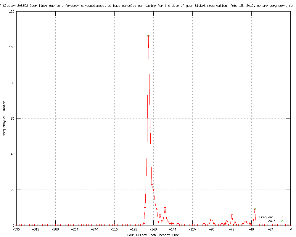 | 34 | due to unforeseen circumstances, we have cancelled our taping for the date of your ticket reservation, february Urls http://conservativerefocus.com/blog5.php/2012/02/16/the-colbert-report-screeches-to-mysterious-halt-for-liberal-funny-man-no-truthiness-available http://gossipurge.com/news/story/469638/ http://washingtonpost.com/lifestyle/style/comedy-central-still-mum-on-canceled-tapings-of-colbert-report/2012/02/16/gIQAf5mhIR_story.html?wprss=rss_homepage http://democraticunderground.com/101452948 http://ktvz.com/entertainment/30474534/detail.html http://localnews8.com/entertainment/30474534/detail.html http://nbcmontana.com/entertainment/30474534/detail.html http://10news.com/entertainment/30474534/detail.html http://ktxs.com/entertainment/30474534/detail.html http://kmbc.com/kcwe/30474534/detail.html http://wcyb.com/nationalnews/30474534/detail.html http://wcyb.com/entertainment/30474534/detail.html http://clickorlando.com/entertainment/-Colbert-Report-abruptly-suspends-tapings/-/1636654/8787638/-/rtaj6iz/-/index.html http://blog.seattlepi.com/hottopics/2012/02/16/%e2%80%98colbert-report%e2%80%99-abrubtly-halts-production-for-2-days/ http://kjct8.com/entertainment/30474534/detail.html http://blog.beaumontenterprise.com/hottopics/2012/02/16/%e2%80%98colbert-report%e2%80%99-abruptly-halts-production-for-2-days/ http://kesq.com/entertainment/30474534/detail.html http://foxtricities.com/entertainment/30474534/detail.html http://blog.seattlepi.com/hottopics/2012/02/16/%e2%80%98colbert-report%e2%80%99-abruptly-halts-production-for-2-days/ http://ksbw.com/entertainment/30474534/detail.html http://wlwt.com/entertainment/30474534/detail.html http://wcti12.com/entertainment/30474534/detail.html http://channel3000.com/entertainment/30474534/detail.html http://blog.seattlepi.com/hottopics/2012/02/16/%e2%80%98colbert-report%e2%80%99-shut-down-for-family-emergency/ http://blog.beaumontenterprise.com/hottopics/2012/02/16/%e2%80%98colbert-report%e2%80%99-shut-down-for-family-emergency/ http://wbaltv.com/entertainment/30474534/detail.html http://thebostonchannel.com/entertainment/30474534/detail.html http://wxii12.com/entertainment/30474534/detail.html http://pastemagazine.com/articles/2012/02/colbert-report-halts-filming-due-to-unforeseen-cir.html http://gothamist.com/2012/02/16/colbert_show_mysteriously_suspends.php http://charlestoncitypaper.com/HolyCinema/archives/2012/02/16/colbert-report-on-hold http://justnews.com/entertainment/-Colbert-Report-abruptly-suspends-tapings/-/1716846/8787638/-/mgcgj/-/index.html http://feeds.gothamistllc.com/click.phdo?i=c807a6e0e1ae371420f7c2ef4d810f4d http://popdecay.com/2012/02/16/colbert-report-abruptly-suspends-production/10179 |