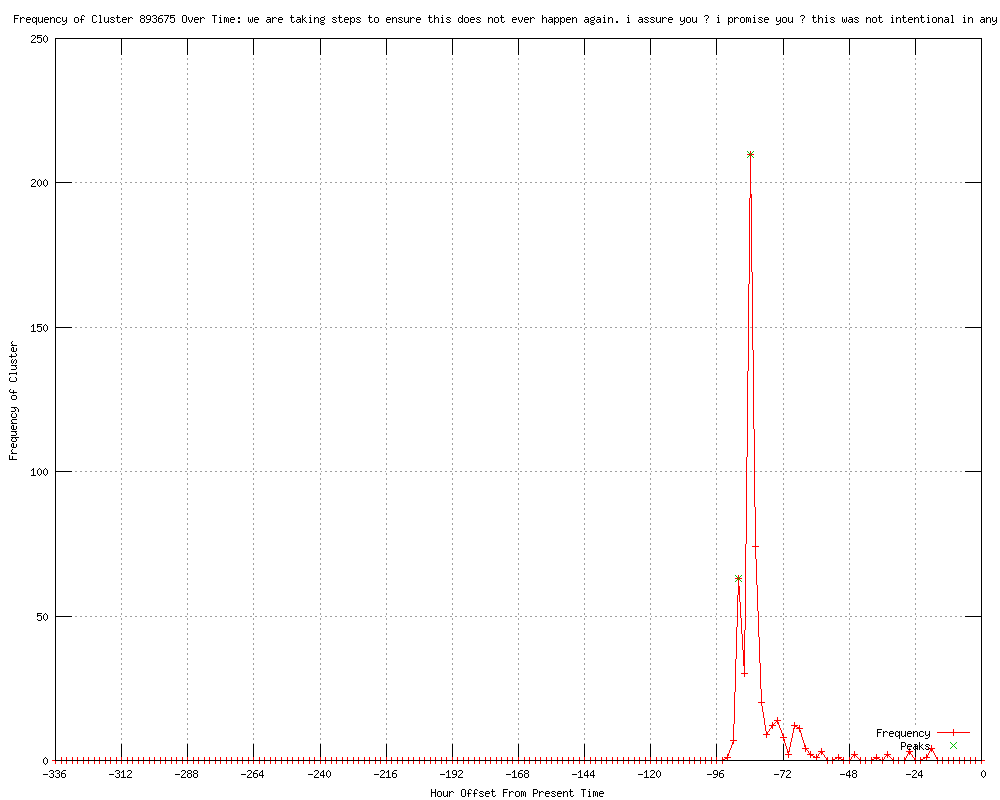 | 16 | i assure you -- i promise you -- this was not intentional in any way Urls http://defense.gov//news/newsarticle.aspx?id=67260 http://yubanet.com/usa/Panetta-Allen-Apologize-for-Destruction-of-Religious-Materials.php http://globalsecurity.org/military/library/news/2012/02/mil-120221-afps02.htm http://feeds.nydailynews.com/~r/nydnrss/sports/hockey/islanders/~3/GUU3IcVfvWg/angry-protesters-surge-american-air-base-setting-fired-throwing-rocks-copies-quran-bruned-pile-garbage-article-1.1026199 http://deccanchronicle.com/channels/world/north-america/afghan-inmates-passed-messages-korans-us-officials-555 http://perthnow.com.au/news/breaking-news/afghan-inmates-passed-messages-in-korans/story-e6frg12u-1226278043558?from=public_rss http://adelaidenow.com.au/news/breaking-news/afghan-inmates-passed-messages-in-korans/story-e6frea73-1226278043558?from=public_rss http://news.com.au/breaking-news/afghan-inmates-passed-messages-in-korans/story-e6frfku0-1226278043558 http://dailytelegraph.com.au/news/breaking-news/afghan-inmates-passed-messages-in-korans/story-e6freuyi-1226278043558 http://heraldsun.com.au/news/breaking-news/afghan-inmates-passed-messages-in-korans/story-e6frf7jx-1226278043558 http://spacewar.com/reports/Afghan_inmates_passed_messages_in_Korans_officials_999.html http://presszoom.com/story_173330.html http://hclindia.com/node/1067946 http://indiafeatures.com/node/1067946 http://webnewswire.com/node/1067946 http://broadcastindia.com/node/1067946 |