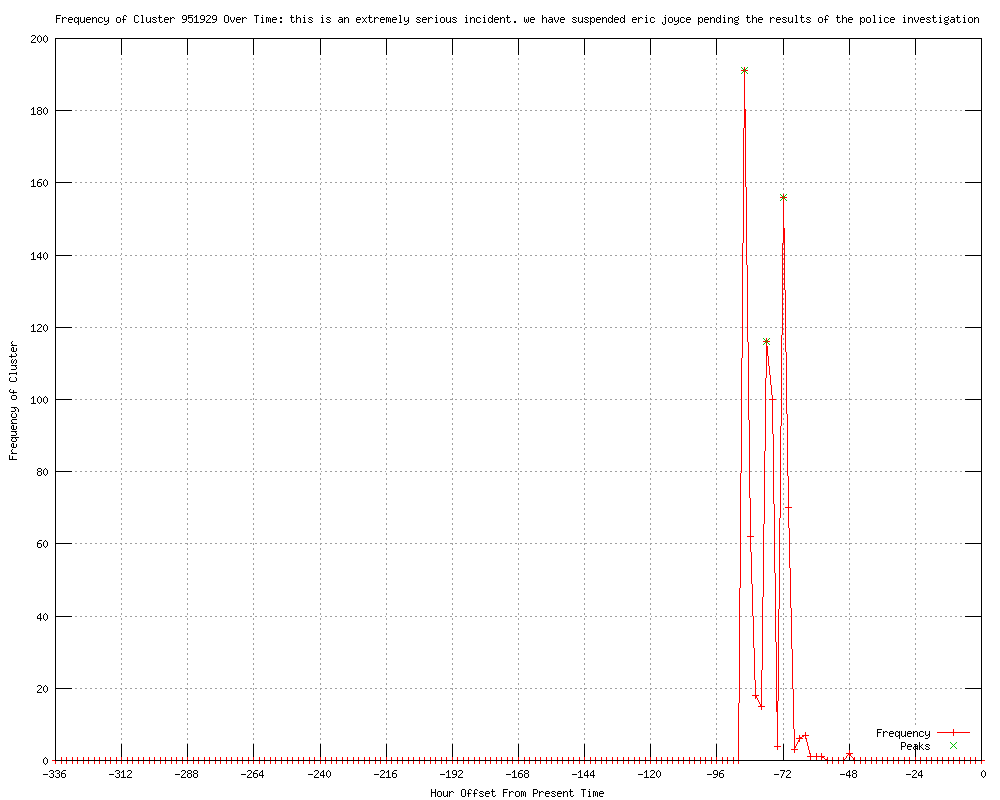 | 753 | this is an extremely serious incident. we have suspended eric joyce pending the results of the police investigation Urls http://chichester.co.uk/news/labour_suspends_mp_over_assault_1_3550323 http://newmarketjournal.co.uk/news/labour_suspends_mp_over_assault_1_3550323 http://buryfreepress.co.uk/news/national-news/labour_suspends_mp_over_assault_1_3550323 http://louthleader.co.uk/news/labour_suspends_mp_over_assault_1_3550323 http://wakefieldexpress.co.uk/news/national/labour_suspends_mp_over_assault_1_4275268 http://whitbygazette.co.uk/news/national/labour_suspends_mp_over_assault_1_4275268 http://buxtonadvertiser.co.uk/news/national/labour_suspends_mp_over_assault_1_4275268 http://leightonbuzzardonline.co.uk/news/national/labour_suspends_mp_over_assault_1_3550323 http://dewsburyreporter.co.uk/news/national/labour_suspends_mp_over_assault_1_4275268 http://leighreporter.co.uk/news/national/labour_suspends_mp_over_assault_1_4275268 http://ilkestonadvertiser.co.uk/news/national/labour_suspends_mp_over_assault_1_4275268 http://peterboroughtoday.co.uk/news/national-news/labour_suspends_mp_over_assault_1_3550323 http://todmordennews.co.uk/news/national/labour_suspends_mp_over_assault_1_4275268 http://northamptonchron.co.uk/news/national/labour_suspends_mp_over_assault_1_3550323 http://southyorkshiretimes.co.uk/news/national-news/labour_suspends_mp_over_assault_1_4275268 http://dissexpress.co.uk/news/national-news/labour_suspends_mp_over_assault_1_3550323 http://dailyrecord.co.uk/news/politics-news/2012/02/23/labour-suspend-falkirk-mp-eric-joyce-over-alleged-house-of-commons-bar-assault-86908-23762096/ http://yp.feedsportal.com/c/534/f/567724/s/1cdf5cf6/l/0L0Syorkshirepost0O0Cpudsey0Imp0Istuart0Iandrew0Iheadbutted0Iby0Ilabour0Iman0Iin0Icommons0Ibrawl0I10I4276258/story01.htm http://uk.news.yahoo.com/labour-mp-arrested-commons-bar-brawl-110342801.html http://independent.co.uk/news/uk/crime/labour-suspends-mp-eric-joyce-over-assault-7376786.html http://telegraph.feedsportal.com/c/32726/f/564430/s/1cdfc264/l/0L0Stelegraph0O0Cnews0Cuknews0Ccrime0C910A0A4840CMP0EEric0EJoyce0Earrested0Eand0Esuspended0Efrom0ELabour0Eparty0Eover0EHouse0Eof0ECommons0Ebrawl0Bhtml/story01.htm http://telegraph.feedsportal.com/c/32726/f/579309/s/1cdfe34a/l/0L0Stelegraph0O0Cnews0Cuknews0Ccrime0C910A0A4840CMP0EEric0EJoyce0Earrested0Eand0Esuspended0Efrom0ELabour0Eparty0Eover0EHouse0Eof0ECommons0Ebrawl0Bhtml/story01.htm http://telegraph.feedsportal.com/c/32726/f/579330/s/1cdfe3c1/l/0L0Stelegraph0O0Cnews0Cuknews0Ccrime0C910A0A4840CMP0EEric0EJoyce0Earrested0Eand0Esuspended0Efrom0ELabour0Eparty0Eover0EHouse0Eof0ECommons0Ebrawl0Bhtml/story01.htm http://granthamjournal.co.uk/news/labour_suspends_mp_over_assault_1_3553684 http://yorkshireeveningpost.co.uk/news/latest-news/top-stories/labour_suspends_mp_over_assault_updated_1_4275568 http://stamfordmercury.co.uk/news/labour_suspends_mp_over_assault_1_3553684 http://yorkshireeveningpost.co.uk/labour_suspends_mp_over_assault_updated_1_4275568 http://bournelocal.co.uk/news/labour_suspends_mp_over_assault_1_3553684 http://independent.co.uk/news/uk/crime/mp-eric-joyce-held-over-assault-7376786.html http://dailyrecord.co.uk/news/politics-news/2012/02/23/falkirk-mp-eric-joyce-still-held-by-police-and-suspended-by-labour-over-alleged-commons-assault-86908-23762096/ http://contradandista.blogspot.com/2012/02/labour-suspends-mp-eric-joyce-after.html http://bankruptbanker.blogspot.com/2012/02/labour-suspends-mp-eric-joyce-after.html http://walesonline.co.uk/news/wales-news/2012/02/23/mp-eric-joyce-in-police-custody-over-commons-bar-assault-91466-30395561/ http://truelifecrime.blogspot.com/2012/02/labour-suspends-mp-eric-joyce-after.html http://monasteryofthemists.blogspot.com/2012/02/labour-suspends-mp-eric-joyce-after.html http://incoldblogs.blogspot.com/2012/02/labour-suspends-mp-eric-joyce-after.html http://lawyerslawcourts.blogspot.com/2012/02/labour-suspends-mp-eric-joyce-after.html http://eurolanded.blogspot.com/2012/02/labour-suspends-mp-eric-joyce-after.html http://newsmashs.blogspot.com/2012/02/labour-suspends-mp-eric-joyce-after.html http://creditcrunchs.blogspot.com/2012/02/labour-suspends-mp-eric-joyce-after.html http://facepunch.com/threads/1165867?goto=newpost http://celeberityvideo.blogspot.com/2012/02/labour-suspends-mp-eric-joyce-after.html http://scarborougheveningnews.co.uk/news/national/labour_suspends_mp_over_assault_1_4275268 http://thestar.co.uk/news/national/labour_suspends_mp_over_assault_1_4275268 http://eastwoodadvertiser.co.uk/news/national/labour_suspends_mp_over_assault_1_4275268 http://worthingherald.co.uk/news/national/labour_suspends_mp_over_assault_1_3550323 http://wetherbynews.co.uk/news/national/labour_suspends_mp_over_assault_1_4275268 http://clitheroeadvertiser.co.uk/news/national-news/labour_suspends_mp_over_assault_1_4275268 http://thevisitor.co.uk/news/national-news/labour_suspends_mp_over_assault_1_4275268 http://skegnessstandard.co.uk/news/national-news/labour_suspends_mp_over_assault_1_3550323 http://northantset.co.uk/news/national/labour_suspends_mp_over_assault_1_3550323 http://doncasterfreepress.co.uk/news/labour_suspends_mp_over_assault_1_4275268 http://dunstabletoday.co.uk/news/national/labour_suspends_mp_over_assault_1_3550323 http://chorley-guardian.co.uk/news/national/labour_suspends_mp_over_assault_1_4275268 http://wscountytimes.co.uk/news/national/labour_suspends_mp_over_assault_1_3550323 http://mirfieldreporter.co.uk/news/national/labour_suspends_mp_over_assault_1_4275268 http://spenboroughguardian.co.uk/news/national/labour_suspends_mp_over_assault_1_4275268 http://bognor.co.uk/news/national/labour_suspends_mp_over_assault_1_3550323 http://harboroughmail.co.uk/news/national/labour_suspends_mp_over_assault_1_3550323 http://hemsworthandsouthelmsallexpress.co.uk/news/national/labour_suspends_mp_over_assault_1_4275268 http://leamingtoncourier.co.uk/news/labour_suspends_mp_over_assault_1_3550323 http://bexhillobserver.net/news/national-ne