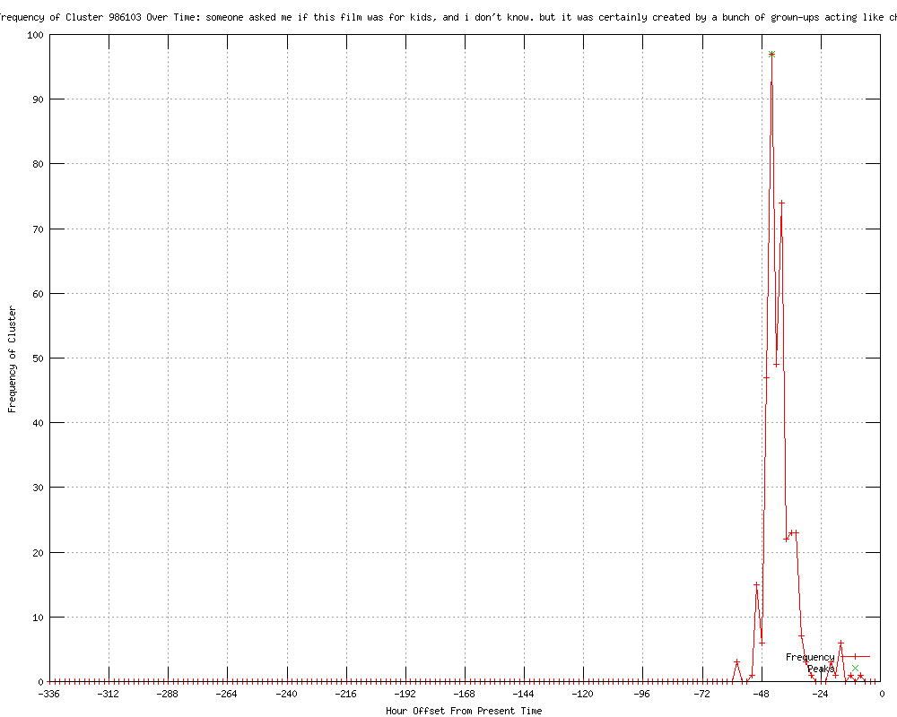 | 5 | someone asked me if this film was for kids, and i don't know Urls http://mercurynews.com/academy-awards/ci_20051922?source=rss http://insidebayarea.com/oakland-tribune/ci_20051922 http://insidebayarea.com/daily-review/ci_20051922 http://mercurynews.com/entertainment/ci_20051922?source=rss http://mercurynews.com/movies-dvd/ci_20051922 |