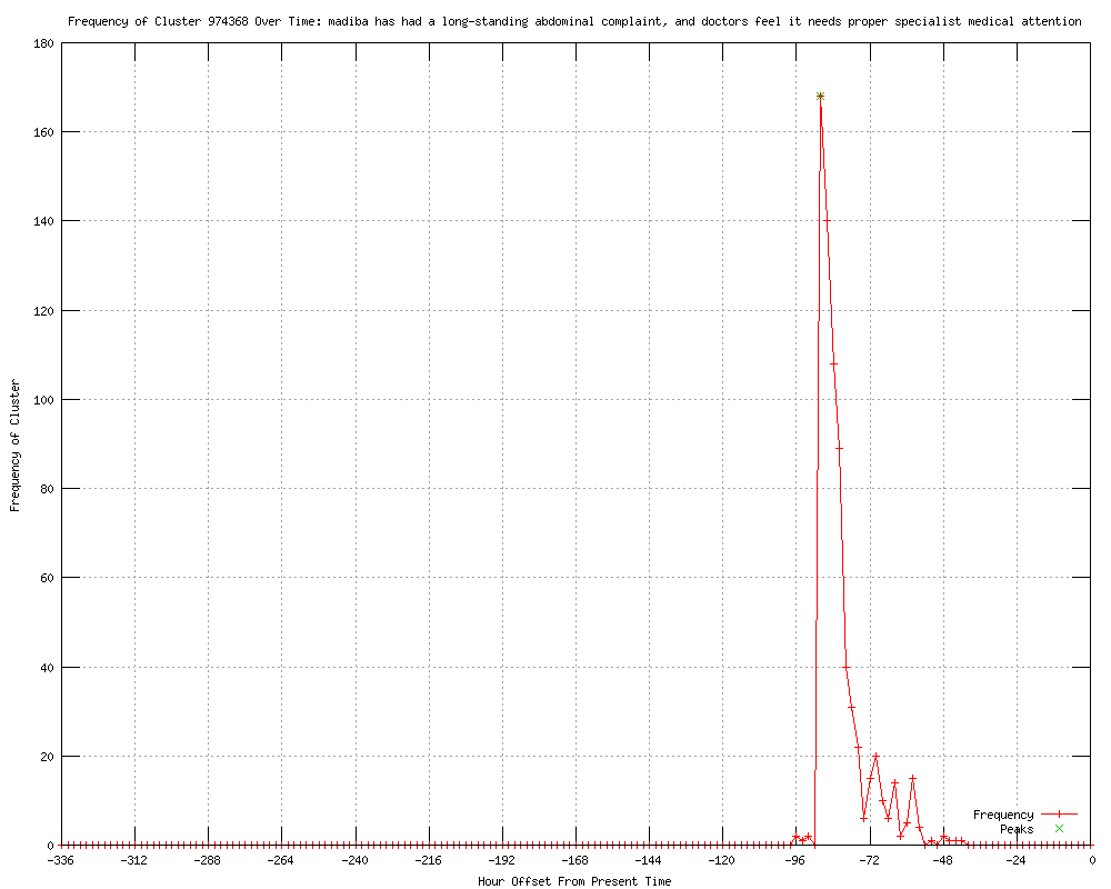 | 87 | madiba has had a long-standing abdominal complaint and doctors feel it needs proper specialist medical attention Urls http://earthquake-today.blogspot.com/2012/02/batangas-today-nelson-mandela.html http://rt.com/news/line/2012-02-25/#id27067 http://rediff.com/news/report/mandela-admitted-to-in-hospital-south-africa/20120225.htm http://informationnigeria.org/2012/02/nelson-mandela-hospitalized.html http://ghanabusinessnews.com/2012/02/25/nelson-mandela-admitted-in-hospital-with-abdominal-complaint/ http://mg.co.za/article/2012-02-25-mandela-admitted-to-hospital-for-specialist-treatment/ http://sg.news.yahoo.com/nelson-mandela-admitted-hospital-091430813.html http://modernghana.com/news/380082/1/nelson-mandela-admitted-to-hospital.html http://uk.news.yahoo.com/nelson-mandela-admitted-hospital-091430636.html http://naharnet.com/stories/en/31255-ex-s-african-leader-nelson-mandela-admitted-to-hospital http://telegraph.feedsportal.com/c/32726/f/564430/s/1ceccfc5/l/0L0Stelegraph0O0Cnews0Cworldnews0Cnelson0Emandela0C910A54450CNelson0EMandela0Etaken0Eto0Ehospital0Bhtml/story01.htm http://raxanreeb.com/2012/02/south-africa-nelson-mandela-admitted-to-hospital/ http://my.news.yahoo.com/nelson-mandela-admitted-hospital-091430813.html http://abc.net.au/news/2012-02-25/nelson-mandela-admitted-to-hospital/3852792 http://allafrica.com/stories/201202250116.html http://telegraph.feedsportal.com/c/32726/f/568301/s/1ced2023/l/0L0Stelegraph0O0Cnews0Cworldnews0Cnelson0Emandela0C910A54450CNelson0EMandela0Etaken0Eto0Ehospital0Bhtml/story01.htm http://telegraph.feedsportal.com/c/32726/f/579330/s/1ced2027/l/0L0Stelegraph0O0Cnews0Cworldnews0Cnelson0Emandela0C910A54450CNelson0EMandela0Etaken0Eto0Ehospital0Bhtml/story01.htm http://.canada.com/nanaimodailynews/news/story.html?id=6208791 http://ibtimes.com/articles/304461/20120225/nelson-mandela-south-africa-leader-hospital-illness.htm http://dawn.com/2012/02/25/mandela-admitted-to-hospital-in-south-africa.html http://panarmenian.net/eng/news/95783/ http://mybroadband.co.za/vb/showthread.php/407303-Madiba-admitted-to-hospital?goto=newpost http://au.news.yahoo.com/a/-/business/13012934/nelson-mandela-admitted-to-hospital/ http://nytimes.com/2012/02/26/world/africa/nelson-mandela-hospitalized-over-stomach-ailment.html?partner=rss&emc=rss http://adelaidenow.com.au/news/world/nelson-mandela-hospitalised/story-e6frea8l-1226281522249?from=public_rss http://capitalfm.co.ke/news/2012/02/nelson-mandela-93-admitted-to-hospital/ http://feeds.bangkokpost.com/c/33101/f/535950/s/1ced33ad/l/0L0Sbangkokpost0N0Cbreakingnews0C281540A0Cmandela0Eadmitted0Eto0Ehospital/story01.htm http://au.news.yahoo.com/a/-/world/13012934/nelson-mandela-admitted-to-hospital/ http://feeds.bangkokpost.com/c/33101/f/535952/s/1ced1a72/l/0L0Sbangkokpost0N0Cnews0Cworld0C281540A0Cmandela0Eadmitted0Eto0Ehospital/story01.htm http://nation.com.pk/pakistan-news-newspaper-daily-english-online/international/25-Feb-2012/nelson-mandela-admitted-to-hospital http://au.news.yahoo.com/world/a/-/world/13012934/nelson-mandela-admitted-to-hospital/ http://hindustantimes.com/world-news/Africa/Nelson-Mandela-admitted-to-hospital/Article1-816947.aspx http://feeds.bangkokpost.com/c/33101/f/535952/s/1ced5eac/l/0L0Sbangkokpost0N0Cnews0Cworld0C281540A0Cnelson0Emandela0Eadmitted0Eto0Ehospital/story01.htm http://deccanchronicle.com/channels/world/africa/ex-safrican-leader-nelson-mandela-93-admitted-hospital-643 http://vanguardngr.com/2012/02/nelson-mandela-93-admitted-to-hospital/ http://indiatalkies.com/2012/02/nelson-mandela-admitted-hospital-stomach-ailment.html http://breitbart.com/article.php?id=CNG.2ff270d6401d539b5e8cb3a161e0d59f.51&show_article=1 http://cnn.com/2012/02/25/world/africa/south-africa-mandela-hospital/ http://edition.cnn.com/2012/02/25/world/africa/south-africa-mandela-hospital/index.html?eref=rss_latest http://hamaraphotos.com/news/politics/nelson-mandela-hospitalised-after-stomach-complaint.html http://thaindian.com/newsportal/politics/nelson-mandela-hospitalised-after-stomach-complaint-lead_100600301.html http://kjct8.com/news/30540658/detail.html http://nbcmontana.com/news/30540658/detail.html http://ktxs.com/news/30540658/detail.html http://inditop.com/world/nelson-mandela-hospitalised-after-stomach-complaint http://wcyb.com/nationalnews/30540658/detail.html http://newkerala.com/news/2011/worldnews-163863.html http://punchbowlblog.com/2012/02/25/nelson-mandela-hospitalised-2/ http://10news.com/news/30540658/detail.html http://ktvz.com/news/30540658/detail.html http://localnews8.com/news/30540658/detail.html http://indiatalkies.com/2012/02/nelson-mandela-hospitalised-stomach-complaint.html http://slumz.boxden.com/f5/feb-25-nelson-mandela-admitted-hospital-abdominal-ailment-1711525/ http://nytimes.com/2012/02/26/world/africa/nelson-mandela-hospitalized.html?partner=rss&emc=rss http://feeds.bignewsnetwork.com/?sid=203778818 http://timesofindia.indiatimes.com/world/rest-of-world/Nelson-Mandela-admitted-to-hospital/articleshow/12033312.cms http://theglobeandmail.com/news/world/nelson-mandela-hospitalized-with-stomach-ailment/article2349918/?utm_medium=Feeds%3A%20RSS%2FAtom&utm_source=Home&utm_content=2349918 http://theglobeandmail.com/news/world/nelson-mandela-hospitalized-with-stomach-ailment/article2349918/?utm_medium=Feeds%3A%20RSS%2FAtom&utm_source=World&utm_content=2349918 http://newkerala.com/news/2011/worldnews-163910.html http://da.feedsportal.com/c/33039/f/555218/s/3c1aaa63/l/0Ltimesofindia0Bindiatimes0N0Cworld0Crest0Eof0Eworld0CNelson0EMandela0Eadmitted0Eto0Ehospital0Carticleshow0C120A333120Bcms/ia1.htm http://independent.ie/world-news/frail-nelson-mandela-93-admitted-to-hospital-3031686.html http://feeds.bangkokpost.com/c/33101/f/535950/s/1ced3d44/l/0L0Sbangkokpost0N0Cbreakingnews0C281540A0Cnelson0Emandela0Eadmitted0Eto0Ehospital/story01.htm http://omelnor.org/vb/showthread.php?t=135053&goto=newpost http://emagazineindia.com/archives/26852 http://indiatoday.feedsportal.com/c/33614/f/589699/s/1cee