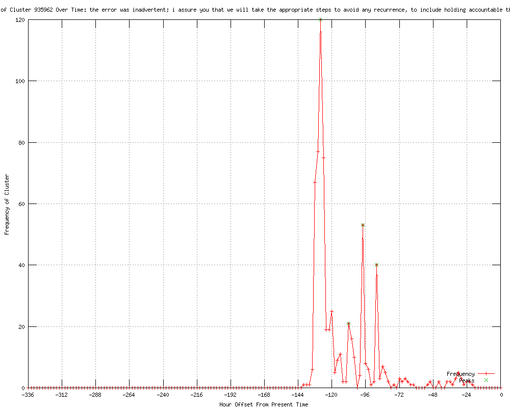 | 7 | we will take the appropriate steps to avoid any recurrence, to include holding accountable those responsible Urls http://businessweek.com/news/2012-02-23/obama-apologizes-for-koran-burning-as-afghans-troops-killed.html http://hedgefundmgr.blogspot.com/2012/02/todays-headlines_23.html http://bloomberg.com/news/2012-02-23/apologies-fail-to-quell-ire-over-koran-burning-at-u-s-base-as-probe-opens.html http://businessweek.com/news/2012-02-23/obama-apologizes-for-koran-burning-as-afghan-riots-continue.html http://businessweek.com/news/2012-02-23/obama-apologizes-for-koran-burning-amid-afghan-riots.html http://frontpagemag.com/2012/02/24/apologies-useless-against-deadly-afghan-rampage/ http://horowitzfreedomcenter.org/2012/02/23/apologies-useless-against-deadly-afghan-rampage/ |