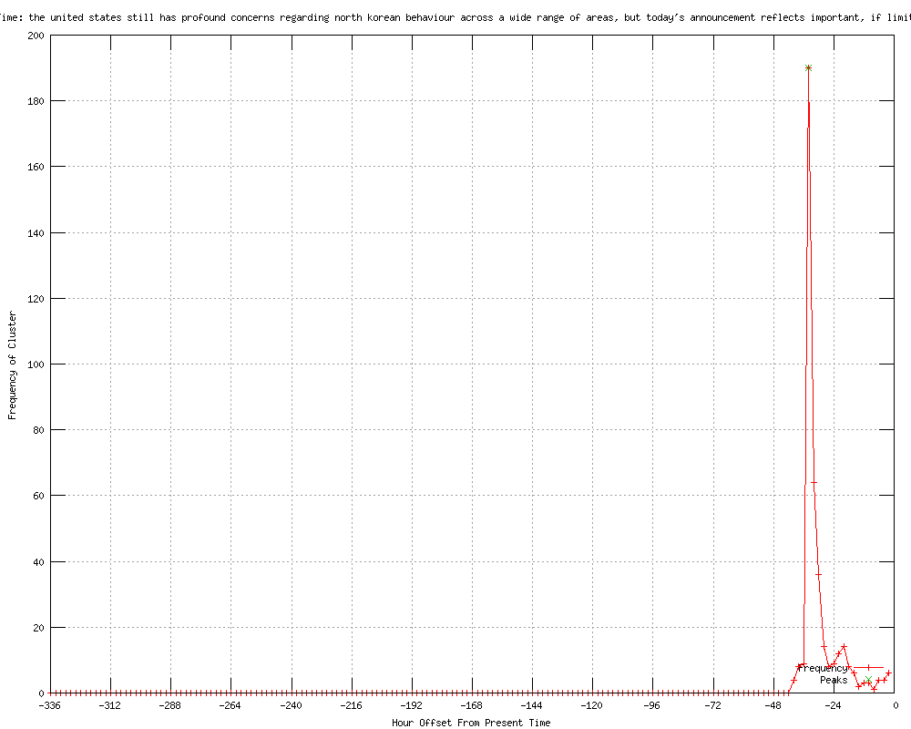 | 19 | the united states still has profound concerns regarding north korean behavior across a wide range of areas Urls http://news.yahoo.com/blogs/envoy/u-announces-diplomatic-breakthrough-north-korea-152331635.html http://disclose.tv/forum/north-korea-gives-up-its-nukes-t68574.html http://slumz.boxden.com/f5/feb-29-u-s-announces-diplomatic-breakthrough-north-korea-1713611/ http://mcclatchydc.com/2012/02/29/140392/north-korea-agrees-to-nuclear.html#storylink=rss http://community.qvc.com/DiscussionDetail/tabid/73/ThreadID/270822/nuclear-bomb-or-food-hmmmmmmm.aspx http://kansascity.com/2012/02/29/3459506/north-korea-agrees-to-nuclear.html#storylink=rss http://fortmilltimes.com/2012/02/29/1914800/north-korea-agrees-to-nuclear.html http://miamiherald.com/2012/02/29/2667508/north-korea-agrees-to-nuclear.html http://heraldonline.com/2012/02/29/3782080/north-korea-agrees-to-nuclear.html http://enquirerherald.com/2012/02/29/1833473/north-korea-agrees-to-nuclear.html http://kentucky.com/2012/02/29/2089020/north-korea-agrees-to-nuclear.html#storylink=rss http://blippitt.com/north-korea-breakthrough-u-s-announces-diplomatic-success/ http://welcome2thenow.blogspot.com/2012/02/north-korea-obviously-wants-obama-to.html http://barking-moonbat.com/index.php/weblog/dont_do_it1/ http://bangordailynews.com/2012/02/29/news/world-news/north-korea-agrees-to-nuclear-pause-in-exchange-for-food/ http://ontd-political.livejournal.com/9385847.html http://lakewyliepilot.com/2012/02/29/1445895/north-korea-agrees-to-nuclear.html http://stripes.com/news/north-korea-agrees-to-nuclear-pause-in-exchange-for-food-1.170251?localLinksEnabled=false http://newsobserver.com/2012/03/01/1894939/n-korea-agrees-to-nuclear-pause.html#storylink=rss |