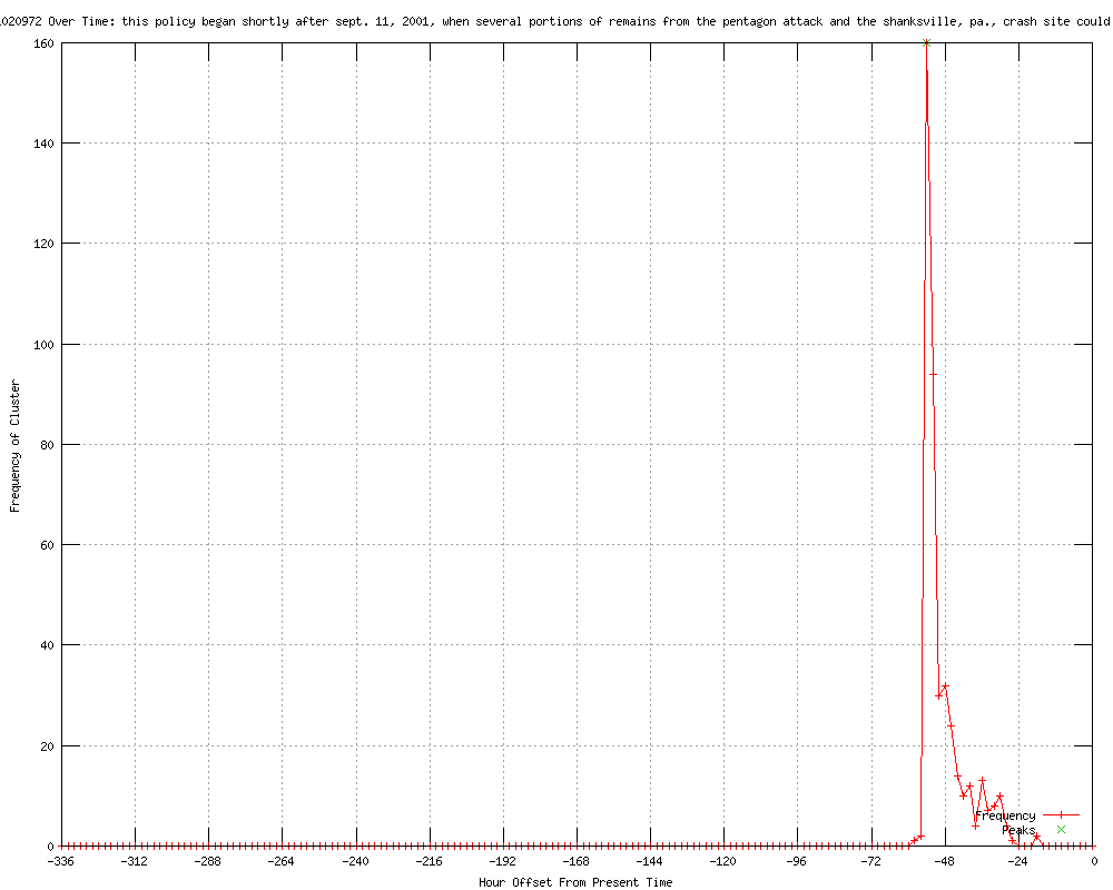 | 8 | this policy began shortly after sept. 11, 2001, when several portions of remains from the pentagon attack and the ... crash site could not be tested or identified Urls http://winnipegfreepress.com/breakingnews/report-partial-remains-of-some-sept-11-2001-victims-were-sent-to-a-landfill-140744533.html http://foxnews.com/politics/2012/02/28/remains-some-11-victims-went-to-landfill-according-to-pentagon-report/ http://guardian.co.uk/world/2012/feb/28/september-11-victims-remains-landfill-pentagon http://thespec.com/news/world/article/678331--partial-remains-of-some-sept-11-2001-victims-were-sent-to-a-landfill http://guelphmercury.com/news/world/article/678370--partial-remains-of-war-dead-and-some-sept-11-victims-sent-to-a-landfill-says-report http://nzherald.co.nz/world/news/article.cfm?c_id=2&objectid=10788762&ref=rss http://thespec.com/news/world/article/678581--partial-remains-of-some-sept-11-victims-were-buried-in-a-landfill http://weeklyintercept.blogspot.com/2012/02/some-911-victims-remains-were-sent-to.html |