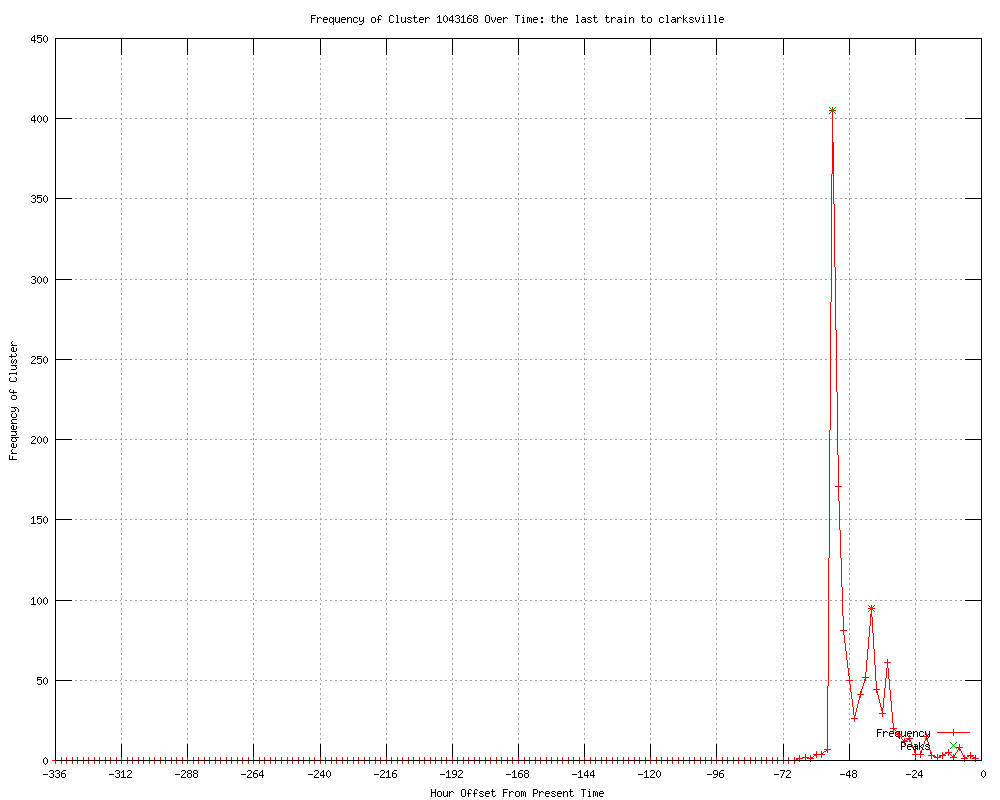 | 8 | the last train to clarksville Urls http://webpronews.com/davy-jones-dead-2012-02 http://wik.io/info/US/317630558 http://allieiswired.com/archives/2012/02/davy-jones-of-the-monkees-dead-at-66/ http://blog.devshirme.com/2012/02/davy-jones-rip/ http://ChicagoTribune.feedsportal.com/c/34253/f/622826/s/1d0d27f1/l/0L0Schicagotribune0N0Cnews0Ccolumnists0Cct0Emet0Ekass0E0A30A10E20A120A30A10H0A0H4827990Bcolumn0Dtrack0Frss/story01.htm http://findata.co.nz/News/14792937/Being_a_believer_is_a_little_bit_me_and_a_little_bit_you.htm http://chicagotribune.com/news/columnists/ct-met-kass-0301-20120301,0,482799.column?track=rss http://chicagotribune.com/news/columnists/ct-met-kass-0301-20120301,0,482799.column |