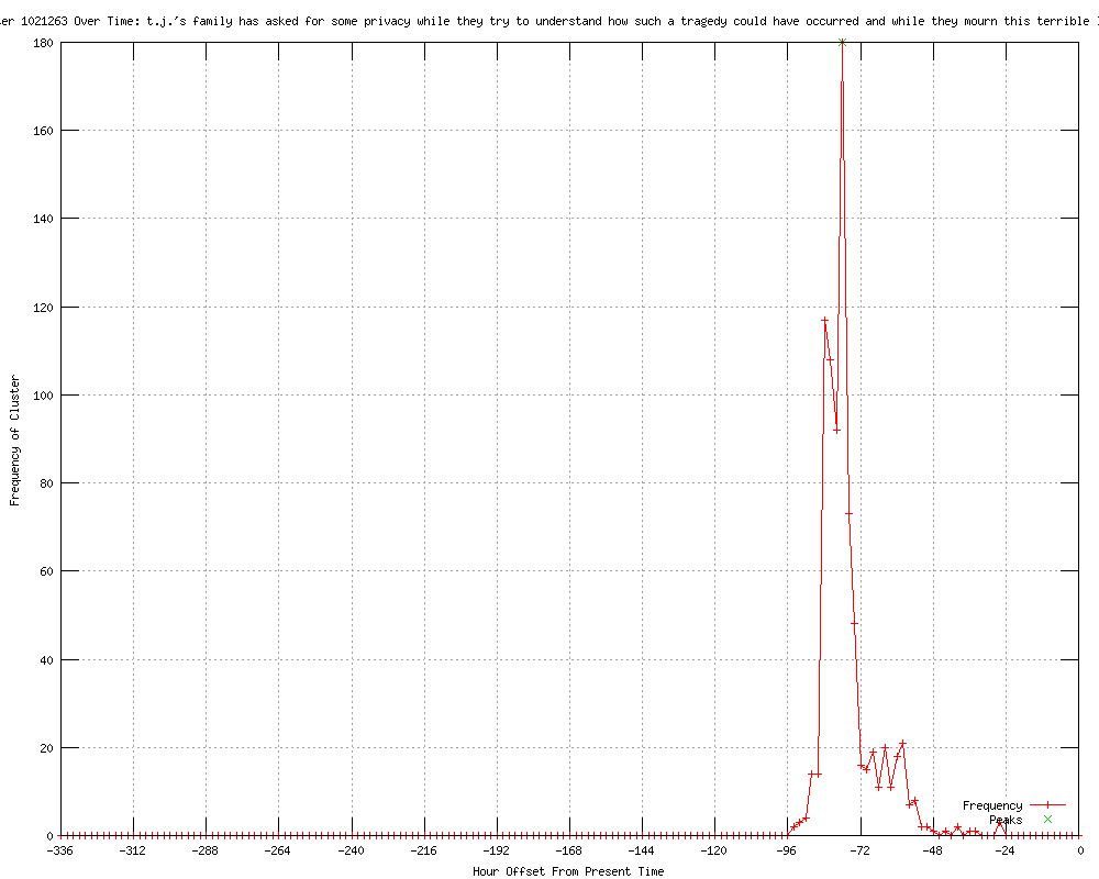 | 19 | t.j.'s family has asked for some privacy while they try to understand how such a tragedy could have occurred and while they mourn this terrible loss for their community Urls http://justnews.com/news/Ohio-school-shooting-suspect-to-make-court-appearance/-/1717324/9142736/-/15gesx4z/-/index.html http://clickorlando.com/news/Ohio-school-shooting-suspect-to-make-court-appearance/-/1637132/9142736/-/13yauje/-/index.html http://wyff4.com/news/30556669/detail.html http://clickorlando.com/news/Third-student-dies-in-Ohio-school-shooting/-/1637132/9142736/-/146wcqwz/-/index.html http://ksbw.com/news/Third-student-dies-in-Ohio-school-shooting/-/1852/9142736/-/n4g0qfz/-/index.html http://wqad.com/news/wqad-third-death-reported-in-ohio-school-shooting-20120228,0,1477445.story http://slumz.boxden.com/f5/feb-28-third-student-has-died-wounds-suffered-mondays-shooting-ohio-high-school-1713117/ http://justnews.com/news/Third-student-dies-in-Ohio-school-shooting/-/1717324/9142736/-/569lcy/-/index.html http://ksbw.com/news/Third-student-dies-after-Ohio-school-shooting/-/1852/9142736/-/re3g8t/-/index.html http://kpax.com/news/third-student-dies-in-ohio-school-shooting/ http://koco.com/news/30556669/detail.html http://11alive.com/rss/article/229949/166/Third-student-dies-from-Ohio-high-school-shooting http://wibw.com/home/headlines/Third_Student_Dies_After_Ohio_School_Shooting_140766693.html http://wibw.com/nationalnews/headlines/Third_Student_Dies_After_Ohio_School_Shooting_140766693.html http://ontd-political.livejournal.com/9380612.html http://kbmt12.com/story/17039349/prosecutor-suspect-admitted-to-shootings-at-school http://cbs19.tv/story/17039370/suspect-admitted-to-shootings-at-school http://wibw.com/home/headlines/140766693.html http://rss.cnn.com/~r/rss/cnn_latest/~3/Q3IC3P3xsXs/index.html |