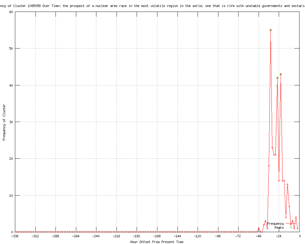 | 20 | the prospect of a nuclear arms race in the most volatile region in the world, one that is rife with unstable governments and sectarian tensions Urls http://da.feedsportal.com/c/33039/f/555218/s/329da2ef/l/0Ltimesofindia0Bindiatimes0N0Cworld0Cus0CBarack0EObama0Ewarns0Eagainst0Epremature0Estrike0Eon0EIran0Carticleshow0C121141630Bcms/ia1.htm http://timesofindia.indiatimes.com/world/us/Barack-Obama-warns-against-premature-strike-on-Iran/articleshow/12114163.cms http://brecorder.com/top-news/1-front-top-news/48018-obama-warns-against-premature-strike-on-iran-.html http://news.yahoo.com/obama-dont-allow-iran-play-victim-132859769.html http://siasat.com/english/news/president-obama-warns-against-premature-strike-iran http://.canada.com/nanaimodailynews/news/story.html?id=6240883 http://arabtimesonline.com/RSS/tabid/69/smid/414/ArticleID/180279/t/US-warns-Israel-off-premature-attack/Default.aspx http://freemalaysiatoday.com/2012/03/03/obama-warns-against-premature-iran-strike/ http://channelnewsasia.com/stories/afp_world/view/1186728/1/.html http://sbs.com.au/news/article/1631295/Obama-says-he-s-not-bluffing-on-Iran http://uk.news.yahoo.com/obama-warns-against-premature-iran-strike-060049027.html http://my.news.yahoo.com/obama-warns-against-premature-iran-strike-060049451.html http://dawn.com/2012/03/03/obama-warns-against-premature-iran-strike.html http://feeds.bangkokpost.com/c/33101/f/535950/s/1d1c692a/l/0L0Sbangkokpost0N0Cbreakingnews0C2826680Cobama0Ewarns0Eagainst0Epremature0Eiran0Estrike/story01.htm http://feeds.bangkokpost.com/c/33101/f/535952/s/1d1c68ed/l/0L0Sbangkokpost0N0Cnews0Cworld0C2826680Cobama0Ewarns0Eagainst0Epremature0Eiran0Estrike/story01.htm http://ndtv.com.feedsportal.com/c/33805/f/606695/s/1d18aaec/l/0L0Sndtv0N0Carticle0Cworld0Cobama0Ewarns0Eiran0Ewould0Eplay0Evictim0Eif0Eattacked0E1820A0A6/story01.htm http://rawstory.com/rs/2012/03/02/obama-warns-iran-would-play-victim-if-attacked/ http://bi-me.com/main.php?c=3&cg=2&t=1&id=56914 http://bi-me.com/main.php?c=3&cg=4&t=1&id=56914 http://ndtv.com.feedsportal.com/c/33805/f/606695/s/1d18aaec/l/0L0Sndtv0N0Carticle0Cworld0Cobama0Esays0Ehe0Es0Enot0Ebluffing0Eabout0Eiran0E1820A0A6/story01.htm |