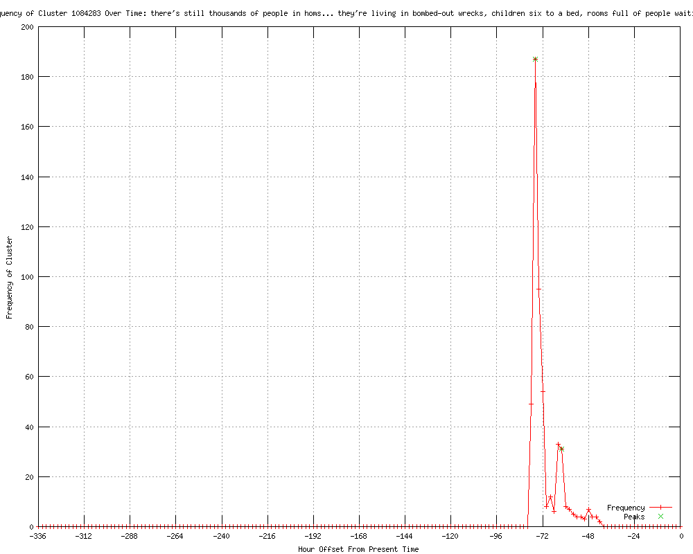 | 8 | there's still thousands of people in homs... they're living in bombed-out wrecks, children six to a bed, rooms full of people waiting to die Urls http://mysinchew.com/node/70902 http://my.news.yahoo.com/fears-grow-brutal-reprisals-syrias-baba-amr-045944372.html http://breitbart.com/article.php?id=CNG.c60212281ccf85c8b89672925e2a754d.191&show_article=1 http://feeds.bangkokpost.com/c/33101/f/535952/s/1d1c71f3/l/0L0Sbangkokpost0N0Cnews0Cworld0C2826670Cfears0Egrow0Eof0Ebrutal0Ereprisals0Ein0Esyria0Ebaba0Eamr/story01.htm http://feeds.bangkokpost.com/c/33101/f/535952/s/1d1c4dde/l/0L0Sbangkokpost0N0Cnews0Cworld0C2826630Choms0Eis0Emedieval0Esiege0Eand0Eslaughter0Ephotographer/story01.htm http://uk.news.yahoo.com/homs-medieval-siege-slaughter-photographer-042015924.html http://dailystar.com.lb/News/Middle-East/2012/Mar-03/165395-homs-is-medieval-siege-and-slaughter-photographer.ashx http://carillongroup.blogspot.com/2012/03/world-must-help-syrian-people-dream.html |