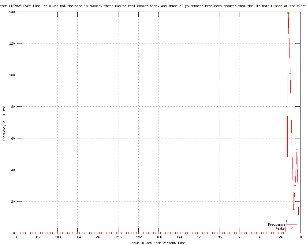 | 6 | this was not the case in russia. there was no real competition, and abuse of government resources ensured that the ultimate winner of the election was never in doubt Urls http://washingtonpost.com/world/russian-election-skewed-for-putin-observers-say/2012/03/05/gIQAykbXsR_story.html?wprss=rss_world http://washingtonpost.com/world/russian-election-skewed-for-putin-observers-say/2012/03/05/gIQAykbXsR_story.html?wprss=rss_homepage http://nytimes.com/2012/03/06/world/europe/observers-detail-flaws-in-russian-election.html?partner=rss&emc=rss http://sltrib.com/sltrib/world/53650020-68/election-observers-putin-russia.html.csp http://post-gazette.com/pg/12066/1214808-82.stm?cmpid=news.xml http://post-gazette.com/pg/12066/1214808-82.stm?cmpid=nationworld.xml |