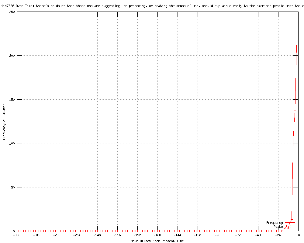 | 15 | those who are suggesting or proposing or beating the drums of war should explain clearly to the american people what they think the costs and benefits would be Urls http://wibw.com/home/headlines/US_Other_Nations_Agree_to_Talks_With_Iran_141683423.html http://news-press.com/article/20120306/NATION/120306018/Obama-defends-Iran-policy-blasts-GOP-bluster-?odyssey=tab|topnews|text|Home http://news-press.com/article/20120306/NATION/120306018/Obama-defends-Iran-policy-blasts-GOP-bluster-?odyssey=tab|topnews|img|Home http://content.usatoday.com/communities/theoval/post/2012/03/obama-takes-questions-from-reporters/1 http://news-press.com/article/20120306/NATION/120306018?odyssey=mod|mostcom http://abc.net.au/news/2012-03-07/obama-warns-against-military-action-in-syria/3872982 http://bangordailynews.com/2012/03/06/news/nation/obama-says-new-bargaining-with-iranians-could-quickly-indicate-if-military-action-is-needed/ http://latimes.com/news/nationworld/world/la-fg-iran-nuclear-talks-20120307,0,6330572.story?track=rss http://twincities.com/national/ci_20117244/talks-should-reveal-irans-intentions-obama-says?source=rss http://latimes.com/news/nationworld/world/middleeast/la-fg-iran-nuclear-talks-20120307,0,562033.story?track=rss http://washingtonpost.com/politics/obama-blasts-gop-hopefuls-over-comments-on-war-with-iran/2012/03/06/gIQAYiL7uR_story.html?wprss=rss_homepage http://washingtonpost.com/politics/obama-blasts-gop-hopefuls-over-comments-on-war-with-iran/2012/03/06/gIQAYiL7uR_story.html?wprss=rss_whitehouse http://washingtonpost.com/politics/obama-blasts-gop-hopefuls-over-comments-on-war-with-iran/2012/03/06/gIQAYiL7uR_story.html?wprss=rss_politics http://ksdk.com/news/article/308400/18/President-Obama-holds-first-news-conference-of-the-year-on-Super-Tuesday http://ksdk.com/news/world/article/308400/18/President-Obama-holds-first-news-conference-of-the-year-on-Super-Tuesday |