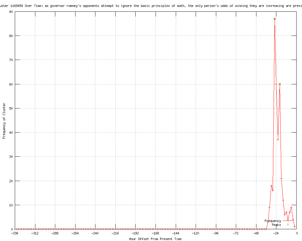 | 11 | as governor romney's opponents attempt to ignore the basic principles of math, the only person's odds of winning they are increasing are president barack obama 's Urls http://newsday.com/news/nation/romney-politely-encourages-rivals-to-fold-1.3584600 http://newsday.com/news/nation/romney-politely-encourages-rivals-to-fold-1.3584428 http://newsday.com/news/nation/romney-encourages-rivals-to-fold-no-way-they-say-1.3584428 http://newsday.com/news/nation/romney-politely-encourages-rivals-to-fold-1.3586733 http://newsday.com/news/nation/romney-encourages-rivals-to-fold-no-way-they-say-1.3584600 http://newsday.com/news/nation/romney-encourages-rivals-to-fold-no-way-they-say-1.3586831 http://newsday.com/news/nation/romney-encourages-rivals-to-fold-no-way-they-say-1.3587015 http://wsbradio.com/ap/ap/general/rivals-vow-to-fight-on-despite-romneys-nudge/nLNT7/ http://newsday.com/news/nation/rivals-vow-to-fight-on-despite-romney-s-nudge-1.3584600 http://newsday.com/news/nation/rivals-vow-to-fight-on-despite-romney-s-nudge-1.3586831 http://newsday.com/news/nation/rivals-vow-to-fight-on-despite-romney-s-nudge-1.3587321 |