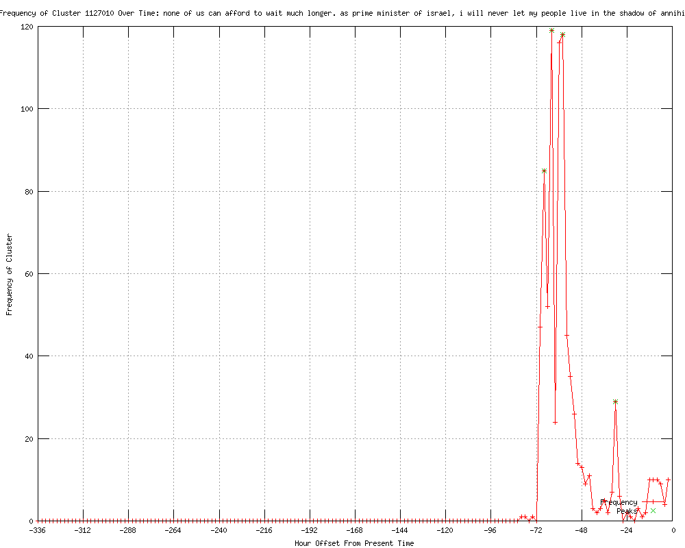 | 248 | none of us can afford to wait much longer. as prime minister of israel, i will never let my people live in the shadow of annihilation Urls http://politico.com/news/stories/0312/73648.html http://feeds.politico.com/click.phdo?i=34be80fbf88e798bf99c3a29ef1cfb4c http://justnews.com/news/politics/Netanyahu-warns-time-running-out-on-Iran/-/1895020/9219260/-/la27rg/-/index.html http://clickorlando.com/news/politics/Netanyahu-warns-time-running-out-on-Iran/-/1637100/9219260/-/yos35qz/-/index.html http://uk.news.yahoo.com/netanyahu-tells-obama-no-israeli-decision-iran-attack-035243891.html http://uk.reuters.com/article/2012/03/06/uk-usa-israel-idUKTRE82506220120306?feedType=RSS&feedName=topNews http://uk.reuters.com/article/2012/03/06/uk-usa-israel-idUKTRE82506220120306?feedType=RSS&feedName=worldNews http://thestar.com.my.feedsportal.com/c/33048/f/534559/s/1d2d11bb/l/0Lthestar0N0Bmy0Cnews0Cstory0Basp0Dfile0F0C20A120C30C60Cworldupdates0C20A120E0A30E0A6T0A35243Z0I10ITRE8250A620IRTROPTT0I0A0IUK0EUSA0EISRAEL0Gsec0FWorldupdates/story01.htm http://news.yahoo.com/netanyahu-tells-obama-no-israeli-decision-iran-attack-021744611.html http://publicbroadcasting.net/wabe/news.newsmain/article/0/0/1910310/World/Netanyahu.tells.Obama.No.Israeli.decision.on.Iran.attack http://feeds.reuters.com/%7Er/Reuters/UKTopNews/%7E3/ajWsXlNj1Ss/uk-usa-israel-idUKTRE82506220120306 http://reuters.com/article/2012/03/06/us-usa-israel-obama-idUSTRE8230EM20120306?feedType=RSS&feedName=wtMostRead http://trust.org/alertnet/news/netanyahu-tells-obama-no-israeli-decision-on-iran-attack http://kdwn.com/index.php?page=2§ion=TOP_NEWS&title=Netanyahu:_Israel__has_right_to_defend_itself http://kold.com/story/17086255/netanyahu-israel-has-right-to-defend-itself http://wboc.com/story/17086255/netanyahu-israel-has-right-to-defend-itself http://wistv.com/story/17086255/netanyahu-israel-has-right-to-defend-itself http://inforum.com/event/apArticle/id/D9TAP9I00/ http://wsbradio.com/ap/ap/defense/netanyahu-israel-has-right-to-defend-itself/nLL2X/ http://newsvine.com/_news/2012/03/05/10587617-netanyahu-israel-has-right-to-defend-itself http://wbtv.com/story/17086255/netanyahu-israel-has-right-to-defend-itself http://guardian.co.uk/world/feedarticle/10128695 http://salon.com/2012/03/06/netanyahu_israel_has_right_to_defend_itself_3/ http://kentucky.com/2012/03/05/2096912/netanyahu-israel-has-right-to.html#storylink=rss http://timesleader.com/r?19=961&43=182021&44=141536553&32=3991&7=186426&40=http%3A%2F%2Fwww.timesleader.com%2Fnews%2FNetanyahu__Israel__has_right_to_defend_itself_03-05-2012.html http://taiwannews.com.tw/etn/news_content.php?id=1860429 http://blog.al.com/wire/2012/03/benjamin_netanyahu_israel_has.html http://komonews.com/news/national/Netanyahu-Israel-has-right-to-defend-itself-141538123.html http://guardian.co.uk/world/feedarticle/10128755 http://katu.com/news/national/141538123.html http://kcby.com/news/national/Netanyahu-Israel-has-right-to-defend-itself-141538123.html http://zeenews.india.com/news/world/netanyahu-israel-has-right-to-defend-itself_762384.html http://newsits.com/news/us-news/benjamin-netanyahu-israel-has-the-right-to-defend-itself-against-iran/ http://guardian.co.uk/world/feedarticle/10128769 http://timesleader.com/r?19=961&43=182021&44=141539283&32=3991&7=186426&40=http%3A%2F%2Fwww.timesleader.com%2Fnews%2FNetanyahu__Israel_has_right_to_defend_itself_03-06-2012.html http://msnbc.msn.com/id/46635557 http://chinapost.com.tw/international/middle-east/2012/03/06/333763/Netanyahu-Israel.htm http://dawn.com/2012/03/06/netanyahu-israel-has-right-to-defend-itself.html http://inforum.com/event/apArticle/id/D9TAQ98O1/ http://inforum.com/event/apArticle/id/D9TAQQ8G0/ http://guardian.co.uk/world/feedarticle/10128672 http://citizen.com/news/2012-03-06/Front_Page/Obama_Netanyahu_talk_unity_underline_differences.html http://guardian.co.uk/world/feedarticle/10128765 http://timesleader.com/r?19=961&43=182021&44=141539293&32=3991&7=186426&40=http%3A%2F%2Fwww.timesleader.com%2Fnews%2FObama__Netanyahu_talk_unity__underline_differences_03-06-2012.html http://blogs.independent.co.uk/2012/03/06/netanyahu-unbound/ http://wral.com/news/national_world/world/story/10817841/ http://kdwn.com/index.php?page=2§ion=BREAKING_NEWS&title=Netanyahu:_Israel__has_right_to_defend_itself http://newsvine.com/_news/2012/03/05/10587250-netanyahu-israel-has-right-to-defend-itself http://theolympian.com/2012/03/05/2017743/netanyahu-israel-has-right-to.html http://wsfa.com/story/17086255/netanyahu-israel-has-right-to-defend-itself http://wrex.com/story/17086255/netanyahu-israel-has-right-to-defend-itself http://kxxv.com/story/17086255/netanyahu-israel-has-right-to-defend-itself http://kswt.com/story/17086255/netanyahu-israel-has-right-to-defend-itself http://wthr.com/story/17086255/netanyahu-israel-has-right-to-defend-itself http://waff.com/story/17086255/netanyahu-israel-has-right-to-defend-itself http://news-leader.com/usatoday/article/38733379?odyssey=mod|newswell|text|FRONTPAGE|p http://news-leader.com/usatoday/article/38733379?odyssey=mod|newswell|img|FRONTPAGE|p http://kusi.com/story/17086255/netanyahu-israel-has-right-to-defend-itself http://wkrn.com/story/17086255/netanyahu-israel-has-right-to-defend-itself http://abc12.com/story/17086255/netanyahu-israel-has-right-to-defend-itself http://kfvs.com/story/17086255/netanyahu-israel-has-right-to-defend-itself http://fox11az.com/story/17086255/netanyahu-israel-has-right-to-defend-itself http://wbal.com/article/ap?articleurl=http%3a%2f%2fhosted.ap.org%2fdynamic%2fstories%2fU%2fUS_NETANYAHU_AIPAC%3fSITE%3dWBAL%26SECTION%3dHOME%26TEMPLATE%3dDEFAULT http://kansascity.com/2012/03/05/3471102/netanyahu-israel-has-right-to.html#storylink=rss http://koamtv.com/story/17086255/netanyahu-israel-has-right-to-defend-itself http://wmbfnews.com/story/17086255/netanyahu-israel-has-right-to-defend-itself http://sacbee.com/2012/03/05/4313930/netanyahu-israel-has-right-to.html#mi_rss=Wire%20National%20News http:/