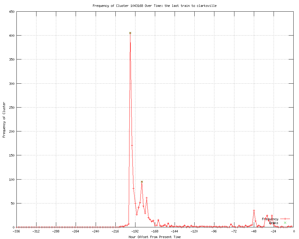 | 8 | the last train to clarksville Urls http://webpronews.com/davy-jones-dead-2012-02 http://wik.io/info/US/317630558 http://allieiswired.com/archives/2012/02/davy-jones-of-the-monkees-dead-at-66/ http://blog.devshirme.com/2012/02/davy-jones-rip/ http://ChicagoTribune.feedsportal.com/c/34253/f/622826/s/1d0d27f1/l/0L0Schicagotribune0N0Cnews0Ccolumnists0Cct0Emet0Ekass0E0A30A10E20A120A30A10H0A0H4827990Bcolumn0Dtrack0Frss/story01.htm http://findata.co.nz/News/14792937/Being_a_believer_is_a_little_bit_me_and_a_little_bit_you.htm http://chicagotribune.com/news/columnists/ct-met-kass-0301-20120301,0,482799.column?track=rss http://chicagotribune.com/news/columnists/ct-met-kass-0301-20120301,0,482799.column |