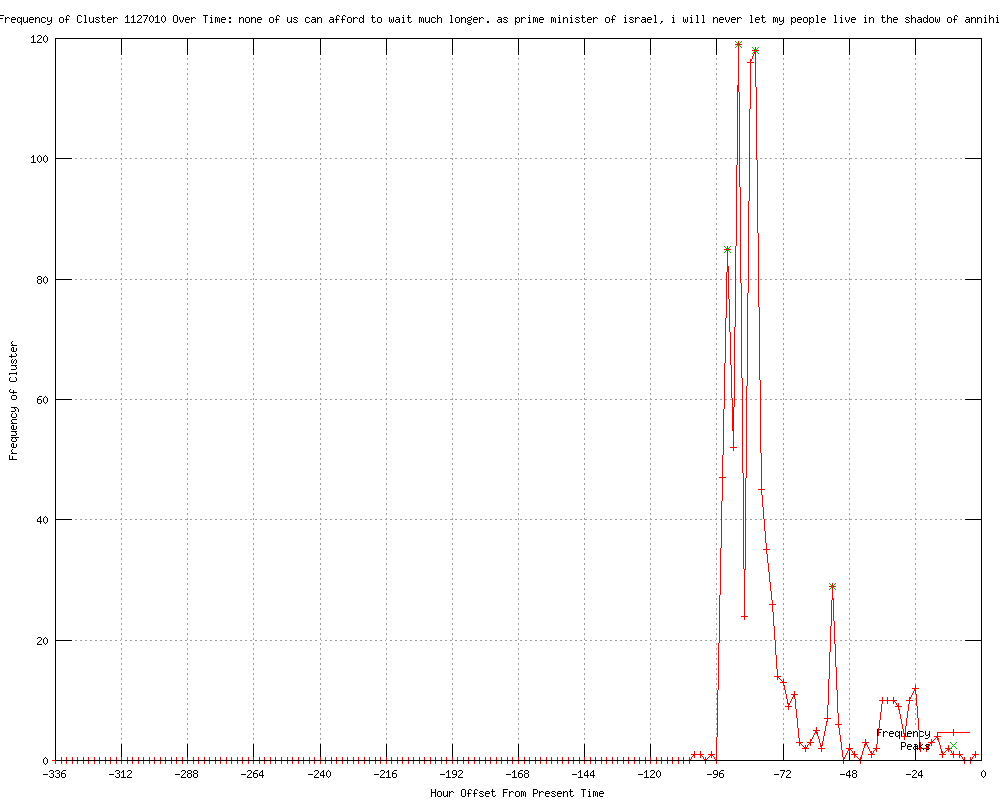 | 248 | none of us can afford to wait much longer. as prime minister of israel, i will never let my people live in the shadow of annihilation Urls http://politico.com/news/stories/0312/73648.html http://feeds.politico.com/click.phdo?i=34be80fbf88e798bf99c3a29ef1cfb4c http://justnews.com/news/politics/Netanyahu-warns-time-running-out-on-Iran/-/1895020/9219260/-/la27rg/-/index.html http://clickorlando.com/news/politics/Netanyahu-warns-time-running-out-on-Iran/-/1637100/9219260/-/yos35qz/-/index.html http://uk.news.yahoo.com/netanyahu-tells-obama-no-israeli-decision-iran-attack-035243891.html http://uk.reuters.com/article/2012/03/06/uk-usa-israel-idUKTRE82506220120306?feedType=RSS&feedName=topNews http://uk.reuters.com/article/2012/03/06/uk-usa-israel-idUKTRE82506220120306?feedType=RSS&feedName=worldNews http://thestar.com.my.feedsportal.com/c/33048/f/534559/s/1d2d11bb/l/0Lthestar0N0Bmy0Cnews0Cstory0Basp0Dfile0F0C20A120C30C60Cworldupdates0C20A120E0A30E0A6T0A35243Z0I10ITRE8250A620IRTROPTT0I0A0IUK0EUSA0EISRAEL0Gsec0FWorldupdates/story01.htm http://news.yahoo.com/netanyahu-tells-obama-no-israeli-decision-iran-attack-021744611.html http://publicbroadcasting.net/wabe/news.newsmain/article/0/0/1910310/World/Netanyahu.tells.Obama.No.Israeli.decision.on.Iran.attack http://feeds.reuters.com/%7Er/Reuters/UKTopNews/%7E3/ajWsXlNj1Ss/uk-usa-israel-idUKTRE82506220120306 http://reuters.com/article/2012/03/06/us-usa-israel-obama-idUSTRE8230EM20120306?feedType=RSS&feedName=wtMostRead http://trust.org/alertnet/news/netanyahu-tells-obama-no-israeli-decision-on-iran-attack http://kdwn.com/index.php?page=2§ion=TOP_NEWS&title=Netanyahu:_Israel__has_right_to_defend_itself http://kold.com/story/17086255/netanyahu-israel-has-right-to-defend-itself http://wboc.com/story/17086255/netanyahu-israel-has-right-to-defend-itself http://wistv.com/story/17086255/netanyahu-israel-has-right-to-defend-itself http://inforum.com/event/apArticle/id/D9TAP9I00/ http://wsbradio.com/ap/ap/defense/netanyahu-israel-has-right-to-defend-itself/nLL2X/ http://newsvine.com/_news/2012/03/05/10587617-netanyahu-israel-has-right-to-defend-itself http://wbtv.com/story/17086255/netanyahu-israel-has-right-to-defend-itself http://guardian.co.uk/world/feedarticle/10128695 http://salon.com/2012/03/06/netanyahu_israel_has_right_to_defend_itself_3/ http://kentucky.com/2012/03/05/2096912/netanyahu-israel-has-right-to.html#storylink=rss http://timesleader.com/r?19=961&43=182021&44=141536553&32=3991&7=186426&40=http%3A%2F%2Fwww.timesleader.com%2Fnews%2FNetanyahu__Israel__has_right_to_defend_itself_03-05-2012.html http://taiwannews.com.tw/etn/news_content.php?id=1860429 http://blog.al.com/wire/2012/03/benjamin_netanyahu_israel_has.html http://komonews.com/news/national/Netanyahu-Israel-has-right-to-defend-itself-141538123.html http://guardian.co.uk/world/feedarticle/10128755 http://katu.com/news/national/141538123.html http://kcby.com/news/national/Netanyahu-Israel-has-right-to-defend-itself-141538123.html http://zeenews.india.com/news/world/netanyahu-israel-has-right-to-defend-itself_762384.html http://newsits.com/news/us-news/benjamin-netanyahu-israel-has-the-right-to-defend-itself-against-iran/ http://guardian.co.uk/world/feedarticle/10128769 http://timesleader.com/r?19=961&43=182021&44=141539283&32=3991&7=186426&40=http%3A%2F%2Fwww.timesleader.com%2Fnews%2FNetanyahu__Israel_has_right_to_defend_itself_03-06-2012.html http://msnbc.msn.com/id/46635557 http://chinapost.com.tw/international/middle-east/2012/03/06/333763/Netanyahu-Israel.htm http://dawn.com/2012/03/06/netanyahu-israel-has-right-to-defend-itself.html http://inforum.com/event/apArticle/id/D9TAQ98O1/ http://inforum.com/event/apArticle/id/D9TAQQ8G0/ http://guardian.co.uk/world/feedarticle/10128672 http://citizen.com/news/2012-03-06/Front_Page/Obama_Netanyahu_talk_unity_underline_differences.html http://guardian.co.uk/world/feedarticle/10128765 http://timesleader.com/r?19=961&43=182021&44=141539293&32=3991&7=186426&40=http%3A%2F%2Fwww.timesleader.com%2Fnews%2FObama__Netanyahu_talk_unity__underline_differences_03-06-2012.html http://blogs.independent.co.uk/2012/03/06/netanyahu-unbound/ http://wral.com/news/national_world/world/story/10817841/ http://kdwn.com/index.php?page=2§ion=BREAKING_NEWS&title=Netanyahu:_Israel__has_right_to_defend_itself http://newsvine.com/_news/2012/03/05/10587250-netanyahu-israel-has-right-to-defend-itself http://theolympian.com/2012/03/05/2017743/netanyahu-israel-has-right-to.html http://wsfa.com/story/17086255/netanyahu-israel-has-right-to-defend-itself http://wrex.com/story/17086255/netanyahu-israel-has-right-to-defend-itself http://kxxv.com/story/17086255/netanyahu-israel-has-right-to-defend-itself http://kswt.com/story/17086255/netanyahu-israel-has-right-to-defend-itself http://wthr.com/story/17086255/netanyahu-israel-has-right-to-defend-itself http://waff.com/story/17086255/netanyahu-israel-has-right-to-defend-itself http://news-leader.com/usatoday/article/38733379?odyssey=mod|newswell|text|FRONTPAGE|p http://news-leader.com/usatoday/article/38733379?odyssey=mod|newswell|img|FRONTPAGE|p http://kusi.com/story/17086255/netanyahu-israel-has-right-to-defend-itself http://wkrn.com/story/17086255/netanyahu-israel-has-right-to-defend-itself http://abc12.com/story/17086255/netanyahu-israel-has-right-to-defend-itself http://kfvs.com/story/17086255/netanyahu-israel-has-right-to-defend-itself http://fox11az.com/story/17086255/netanyahu-israel-has-right-to-defend-itself http://wbal.com/article/ap?articleurl=http%3a%2f%2fhosted.ap.org%2fdynamic%2fstories%2fU%2fUS_NETANYAHU_AIPAC%3fSITE%3dWBAL%26SECTION%3dHOME%26TEMPLATE%3dDEFAULT http://kansascity.com/2012/03/05/3471102/netanyahu-israel-has-right-to.html#storylink=rss http://koamtv.com/story/17086255/netanyahu-israel-has-right-to-defend-itself http://wmbfnews.com/story/17086255/netanyahu-israel-has-right-to-defend-itself http://sacbee.com/2012/03/05/4313930/netanyahu-israel-has-right-to.html#mi_rss=Wire%20National%20News http:/