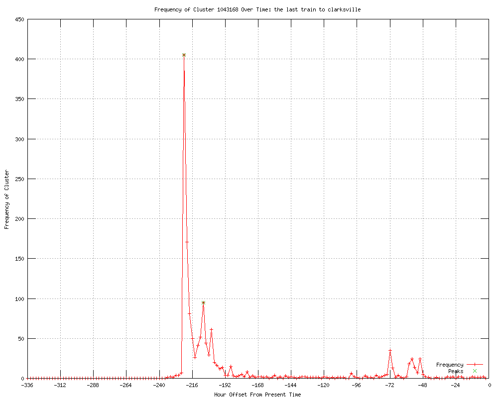 | 8 | the last train to clarksville Urls http://webpronews.com/davy-jones-dead-2012-02 http://wik.io/info/US/317630558 http://allieiswired.com/archives/2012/02/davy-jones-of-the-monkees-dead-at-66/ http://blog.devshirme.com/2012/02/davy-jones-rip/ http://ChicagoTribune.feedsportal.com/c/34253/f/622826/s/1d0d27f1/l/0L0Schicagotribune0N0Cnews0Ccolumnists0Cct0Emet0Ekass0E0A30A10E20A120A30A10H0A0H4827990Bcolumn0Dtrack0Frss/story01.htm http://findata.co.nz/News/14792937/Being_a_believer_is_a_little_bit_me_and_a_little_bit_you.htm http://chicagotribune.com/news/columnists/ct-met-kass-0301-20120301,0,482799.column?track=rss http://chicagotribune.com/news/columnists/ct-met-kass-0301-20120301,0,482799.column |