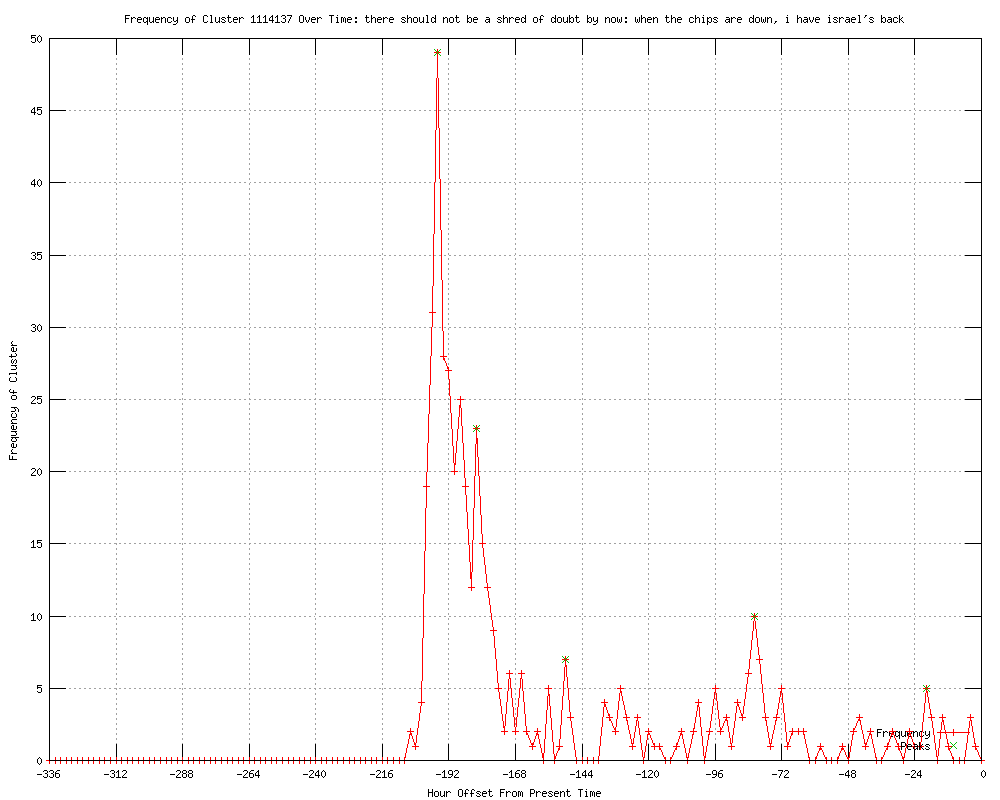 | 38 | there should not be a shred of doubt by now Urls http://statesman.com/news/nation/obama-assures-israel-us-force-an-option-on-2215547.html http://ajc.com/news/nation-world/obama-assures-israel-us-1371879.html?cxtype=rss_sports_82075 http://ajc.com/news/nation-world/obama-assures-israel-us-1371879.html?cxtype=rss_news_82111 http://utsandiego.com/news/2012/mar/04/obama-assures-israel-us-force-an-option-on-iran/ http://heraldonline.com/2012/03/04/3791353/obama-not-hesitant-on-force-to.html http://abcnews.go.com/Politics/wireStory/obama-gop-plays-politics-support-israel-15843267 http://breitbart.com/article.php?id=D9T9TR2O0&show_article=1 http://kolotv.com/home/headlines/Obama_Assures_Israel_US_Force_an_Option_on_Iran_141366553.html http://news.yahoo.com/obama-assures-israel-us-force-option-iran-212500332.html http://mail.com/news/politics/1104644-obama-assures-israel-us-force-option-iran.html http://idahostatesman.com/2012/03/04/2020758/obama-not-hesitant-on-force-to.html#storylink=rss http://blackchristiannews.com/news/2012/03/president-obama-says-there-is-too-much-loose-talk-of-war.html http://abclocal.go.com/wabc/story?section=news/politics&id=8568283&rss=rss-wabc-article-8568283 http://kdwn.com/index.php?page=2§ion=TOP_NEWS&title=Obama_assures_Israel_US_force_an_option_on_Iran http://guardian.co.uk/world/feedarticle/10126764 http://abclocal.go.com/kgo/story?section=news/national_world&id=8568405&rss=rss-kgo-article-8568405 http://abclocal.go.com/wtvd/story?section=news/national_world&id=8568390&rss=rss-wtvd-article-8568390 http://newsmax.com/Newsfront/Obama-israel-iran-attack/2012/03/04/id/431347 http://wvgazette.com/rssFeeds/201203040190 http://newsday.com/news/nation/obama-assures-israel-us-force-an-option-on-iran-1.3578296 http://gadsdentimes.com/article/20120304/wire/120309884 http://timesrepublican.com/page/content.detail/id/547450.html http://abclocal.go.com/kfsn/story?section=news/national_world&id=8568539&rss=rss-kfsn-article-8568539 http://trendpk.com/obama-assures-israel-us-force-an-option-on-iran/148317.html http://gulfnews.com/news/world/usa/obama-assures-israel-us-force-is-an-option-on-iran-1.990274 http://theeagle.com/nation/Obama--Force-an-option-with-Iran--7012884 http://sltrib.com/sltrib/world/53643157-68/obama-israel-iran-nuclear.html.csp http://gulfnews.com/news/world/usa/obama-assures-israel-us-force-is-an-option-on-iran-1.990274?localLinksEnabled=false&utm_source=Feeds&utm_medium=RSS&utm_term=Most_viewed_RSS_&utm_content=1.990274&utm_campaign=Obama_assures_Israel_US_force_is_an_option_on_Iran http://guardian.co.uk/world/feedarticle/10127248 http://durangoherald.com/article/20120305/NEWS03/703059928&source=RSS http://wvgazette.com/topStories12/201203040190 http://recordpub.com/news/article/5163982 http://newsday.com/news/nation/obama-assures-israel-u-s-force-an-option-on-iran-1.3578296 http://theleafchronicle.com/article/20120305/NEWS08/303050018/Obama?odyssey=tab|topnews|text|FRONTPAGE http://nwherald.com/2012/03/05/obama-assures-israel-that-u-s-force-is-an-option-on-iran/a270aid/ http://hawaiitribune-herald.com/sections/news/nation/obama-assures-israel.html http://theleafchronicle.com/article/20120305/NEWS08/303050018?odyssey=mod|mostcom http://longcrisis.com/israels-prime-minster-netanyahu-writes-obamas-iran-speech.php |