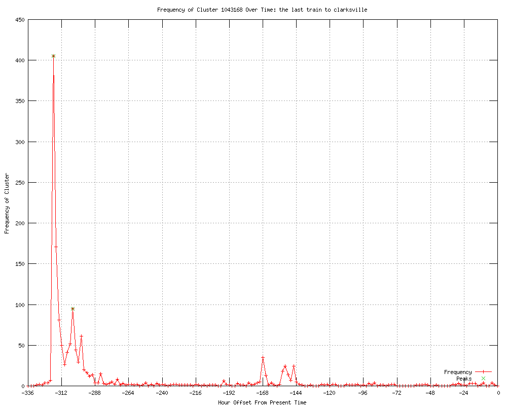 | 8 | the last train to clarksville Urls http://webpronews.com/davy-jones-dead-2012-02 http://wik.io/info/US/317630558 http://allieiswired.com/archives/2012/02/davy-jones-of-the-monkees-dead-at-66/ http://blog.devshirme.com/2012/02/davy-jones-rip/ http://ChicagoTribune.feedsportal.com/c/34253/f/622826/s/1d0d27f1/l/0L0Schicagotribune0N0Cnews0Ccolumnists0Cct0Emet0Ekass0E0A30A10E20A120A30A10H0A0H4827990Bcolumn0Dtrack0Frss/story01.htm http://findata.co.nz/News/14792937/Being_a_believer_is_a_little_bit_me_and_a_little_bit_you.htm http://chicagotribune.com/news/columnists/ct-met-kass-0301-20120301,0,482799.column?track=rss http://chicagotribune.com/news/columnists/ct-met-kass-0301-20120301,0,482799.column |