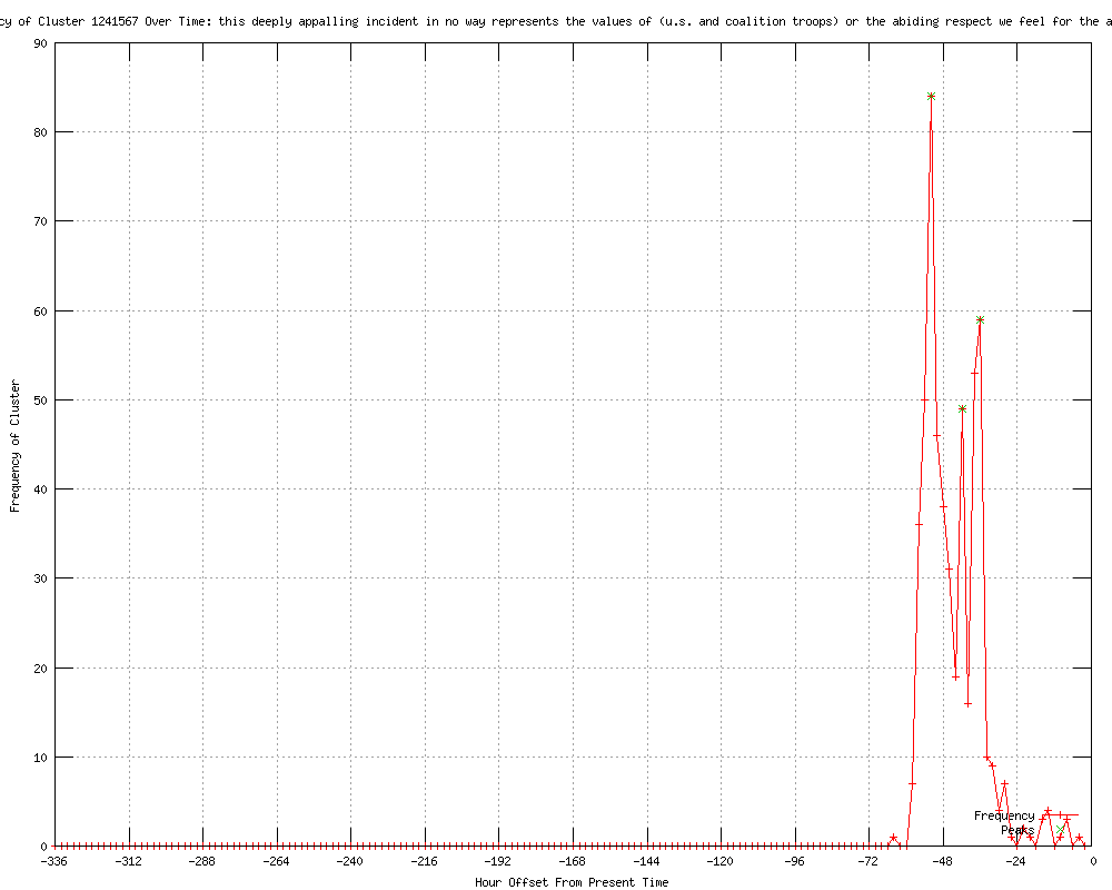 | 14 | deeply appalling incident in no way represents the values of isaf and coalition troops or the abiding respect we feel for the afghan people Urls http://theburningplatform.com/?p=31257 http://10news.com/news/30653759/detail.html http://wmur.com/news/30653759/detail.html http://clickorlando.com/news/U-S-soldier-kills-16-Afghan-civilians-Karzai-says/-/1637132/9275020/-/8jxmli/-/index.html http://justnews.com/news/U-S-soldier-kills-16-Afghan-civilians-Karzai-says/-/1717324/9275020/-/11fj7myz/-/index.html http://justnews.com/news/US-soldier-kills-16-Afghan-civilians-Karzai-says/-/1717324/9275020/-/u8tngo/-/index.html http://clickorlando.com/news/US-soldier-kills-16-Afghan-civilians-Karzai-says/-/1637132/9275020/-/6ei8xn/-/index.html http://rss.cnn.com/%7Er/rss/cnn_allpolitics/%7E3/n6x6JZxNR38/index.html http://newstrick.com/2012/03/us-soldier-kills-16-afghan-civilians.html http://q13fox.com/news/kcpq-us-soldier-goes-on-shooting-spree-in-afghanistan-kills-16-20120311,0,6445035.story http://q13fox.com/news/kcpq-us-soldier-goes-on-shooting-spree-in-afghanistan-kills-16-20120311,0,6445035.story?track=rss http://clickorlando.com/news/U-S-soldier-accused-of-Afghan-killing-spree/-/1637132/9275020/-/xhv75rz/-/index.html http://justnews.com/news/U-S-soldier-accused-of-Afghan-killing-spree/-/1717324/9275020/-/e85tbvz/-/index.html http://ky3.com/news/ktla-cnn-soldier-afghanistan-rampage,0,3729053.story |