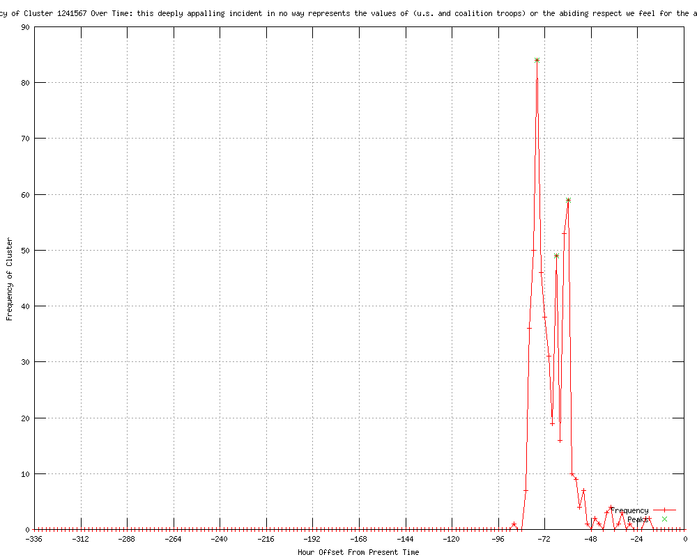 | 14 | deeply appalling incident in no way represents the values of isaf and coalition troops or the abiding respect we feel for the afghan people Urls http://theburningplatform.com/?p=31257 http://10news.com/news/30653759/detail.html http://wmur.com/news/30653759/detail.html http://clickorlando.com/news/U-S-soldier-kills-16-Afghan-civilians-Karzai-says/-/1637132/9275020/-/8jxmli/-/index.html http://justnews.com/news/U-S-soldier-kills-16-Afghan-civilians-Karzai-says/-/1717324/9275020/-/11fj7myz/-/index.html http://justnews.com/news/US-soldier-kills-16-Afghan-civilians-Karzai-says/-/1717324/9275020/-/u8tngo/-/index.html http://clickorlando.com/news/US-soldier-kills-16-Afghan-civilians-Karzai-says/-/1637132/9275020/-/6ei8xn/-/index.html http://rss.cnn.com/%7Er/rss/cnn_allpolitics/%7E3/n6x6JZxNR38/index.html http://newstrick.com/2012/03/us-soldier-kills-16-afghan-civilians.html http://q13fox.com/news/kcpq-us-soldier-goes-on-shooting-spree-in-afghanistan-kills-16-20120311,0,6445035.story http://q13fox.com/news/kcpq-us-soldier-goes-on-shooting-spree-in-afghanistan-kills-16-20120311,0,6445035.story?track=rss http://clickorlando.com/news/U-S-soldier-accused-of-Afghan-killing-spree/-/1637132/9275020/-/xhv75rz/-/index.html http://justnews.com/news/U-S-soldier-accused-of-Afghan-killing-spree/-/1717324/9275020/-/e85tbvz/-/index.html http://ky3.com/news/ktla-cnn-soldier-afghanistan-rampage,0,3729053.story |
