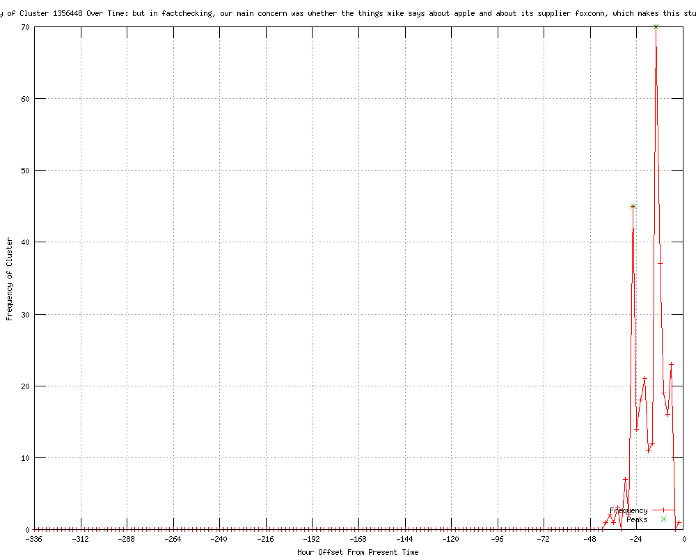 | 7 | but in factchecking, our main concern was whether the things mike says about apple and about its supplier foxconn, which makes this stuff, were true Urls http://au.news.yahoo.com/world/a/-/world/13195555/refile-update-2-radio-show-on-apples-chinese-workers-is-retracted/ http://au.news.yahoo.com/a/-/world/13195555/refile-update-2-radio-show-on-apples-chinese-workers-is-retracted/ http://ontd-political.livejournal.com/9452193.html http://reuters.com/article/2012/03/17/net-us-apple-radioshow-idUSBRE82F1A120120317 http://wdbj7.com/sns-rt-us-apple-radioshowbre82f1a1-20120316,0,6221271.story http://chicagotribune.com/news/nationworld/sns-rt-us-apple-radioshowbre82f1a1-20120316,0,7640008.story?track=rss http://arabtimesonline.com/RSS/tabid/69/smid/414/ArticleID/180869/Default.aspx |