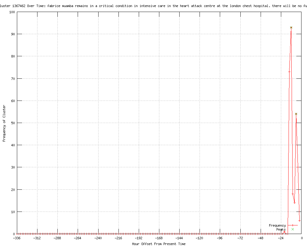 | 269 | fabrice muamba remains in a critical condition in intensive care in the heart attack centre at the london chest hospital Urls http://uk.eurosport.yahoo.com/18032012/58/fa-cup-muamba-critical-cardiac-arrest.html http://soccerway.com/news/2012/March/18/muamba-still-critical-in-hospital http://goal.com/en/news/9/england/2012/03/18/2974706/boltons-muamba-remains-in-critical-condition-in-intensive http://sportal.com.au/news-display/muamba-still-critical-167087 http://soccer365.com/news/european_news/general/13031/muamba_faces_crucial_24_hours http://football365.com/news/21554/7606424/Muamba-faces-crucial-24-hours http://football365.com/news/21554/7606424/Muamba-Remains-In-Critical-Condition...- http://menmedia.co.uk/manchestereveningnews/news/s/1488702_bolton-wanderers-star-fabrice-muamba-to-remain-in-intensive-care-?rss=yes http://menmedia.co.uk/manchestereveningnews/news/s/1488702_bolton-wanderers-star-fabrice-muamba-to-remain-in-intensive-care-after-cardiac-arrest-on-pitch-at-spurs?rss=yes http://independent.co.uk/sport/football/news-and-comment/boltons-fabrice-muamba-still-critical-in-intensive-care-7576580.html http://football365.com/news/21554/7606424/critical-condition http://mirrorfootball.co.uk/news/Critically-ill-Fabrice-Muamba-remains-in-critical-condition-article879798.html http://da.feedsportal.com/c/851/f/10838/s/1d8b7efa/l/0L0Sirishtimes0N0Csports0Csoccer0C20A120C0A3180C12243135184650Bhtml/ia1.htm http://ireland.com/breaking-news/muamba-faces-critical-24-hours/646134 http://independent.co.uk/sport/football/news-and-comment/fabrice-muambas-heart-failed-for-two-hours-7576585.html http://au.news.yahoo.com/a/-/world/13200479/bolton-boss-hopes-muamba-has-happy-outcome/ http://football.co.uk/bolton_wanderers/bolton_boss_hopes_muamba_has__happy_outcome__rss2145031.shtml http://football.co.uk/bolton_wanderers/muamba_remains_in_critical_condition_rss2145151.shtml http://sport.co.uk/news/Football/71694/Bolton_boss_hopes_Muamba_has_happy_outcome.aspx http://sport.co.uk/news/Football/71695/Muamba_remains_in_critical_condition.aspx http://au.news.yahoo.com/a/-/world/13200479/muamba-still-in-critical-condition/ http://au.sports.yahoo.com/football/news/article/-/13200479/muamba-still-in-critical-condition/ http://au.news.yahoo.com/world/a/-/world/13200479/muamba-still-in-critical-condition/ http://timesofmalta.com/articles/view/20120319/football/pray-for-fabrice-says-fiancee.411738 http://thehimalayantimes.com/rssReference.php?id=MzI0NTI0 http://telegraph.feedsportal.com/c/32726/f/568303/s/1d8d6fc8/l/0L0Stelegraph0O0Csport0Cfootball0Cteams0Cbolton0Ewanderers0C91516970CBolton0EWanderers0Emanager0EOwen0ECoyle0Ehopes0Ethere0Ewill0Ebe0Ehappy0Eoutcome0Efor0EFabrice0EMuamba0Bhtml/story01.htm http://telegraph.feedsportal.com/c/32726/f/568303/s/1d8bbcc1/l/0L0Stelegraph0O0Csport0Cfootball0Cteams0Cbolton0Ewanderers0C915130A20CFabrice0EMuamba0Eremains0Ein0Ecritical0Econdition0Efollowing0Ecardiac0Earrest0Eduring0EBoltons0EFA0ECup0Etie0Ewith0ETottenham0Bhtml/story01.htm http://telegraph.feedsportal.com/c/32726/f/568360/s/1d8d73ac/l/0L0Stelegraph0O0Csport0Cfootball0Cteams0Cbolton0Ewanderers0C91516970CBolton0EWanderers0Emanager0EOwen0ECoyle0Ehopes0Ethere0Ewill0Ebe0Ehappy0Eoutcome0Efor0EFabrice0EMuamba0Bhtml/story01.htm http://telegraph.feedsportal.com/c/32726/f/568360/s/1d8bf83c/l/0L0Stelegraph0O0Csport0Cfootball0Cteams0Cbolton0Ewanderers0C915130A20CFabrice0EMuamba0Eremains0Ein0Ecritical0Econdition0Efollowing0Ecardiac0Earrest0Eduring0EBoltons0EFA0ECup0Etie0Ewith0ETottenham0Bhtml/story01.htm http://telegraph.feedsportal.com/c/32726/f/568360/s/1d8b579e/l/0L0Stelegraph0O0Csport0C915130A20CFabrice0EMuamba0Eremains0Ein0Ecritical0Econdition0Efollowing0Ecardiac0Earrest0Eduring0EBoltons0EFA0ECup0Etie0Ewith0ETottenham0Bhtml/story01.htm http://shropshirestar.com/uk/uk-news/2012/03/18/footballer-muamba-still-critical/ http://birminghammail.net/news/top-stories/2012/03/18/fabrice-muamba-update-bolton-midfielder-remains-anaesthetised-at-the-london-chest-hospital-97319-30564072/ http://birminghammail.net/birmingham-sport/birmingham-city-fc/birmingham-city-fc-news/2012/03/18/fabrice-muamba-update-bolton-midfielder-remains-anaesthetised-at-the-london-chest-hospital-97319-30564072/ http://thisisjersey.com/news/uk-news/2012/03/18/footballer-muamba-still-critical/ http://expressandstar.com/uk/uk-news/2012/03/18/footballer-muamba-still-critical/ http://wigantoday.net/news/national-news/footballer-muamba-still-critical-1-4360210 http://thisisguernsey.com/news/uk-news/2012/03/18/footballer-muamba-still-critical/ http://burtonmail.co.uk/News/National-News/Footballer-Muamba-still-critical-570716.xnf?FeedSourceID=11&FeedImageID=986475&BodyFormat=1& http://thisislondon.co.uk/panewsfeeds/footballer-muamba-still-critical-7576557.html http://breakingnews.ie/sport/muamba-suffered-cardiac-arrest-say-hospital-543981.html http://news.uk.msn.com/uk/articles.aspx?cp-documentid=160803027 http://birminghampost.net/news/west-midlands-news/2012/03/18/bolton-midfielder-fabrice-muamba-remains-in-critical-condition-at-the-london-chest-hospital-97319-30564074/ http://uk.express.feedsportal.com/c/33338/f/565859/s/1d8b8a70/l/0L0Sdailyexpress0O0Cposts0Cview0C30A89250CFootballer0EMuamba0Estill0Ecritical0C/story01.htm http://da.feedsportal.com/c/845/f/464365/s/1d8b7c8c/l/0L0Sbelfasttelegraph0O0Cnews0Clocal0Enational0Cuk0Cfootballer0Emuamba0Estill0Ecritical0E161326220Bhtml0Dr0FRSS/ia1.htm http://batleynews.co.uk/news/national/footballer-muamba-still-critical-1-4360210 http://lep.co.uk/news/national/footballer-muamba-still-critical-1-4360210 http://nufcblog.com/2012/03/18/fabrice-muamba-bulletin-remains-in-critical-condition/ http://birminghammail.net/news/birmingham-news/2012/03/18/fabrice-muamba-update-bolton-midfielder-remains-anaesthetised-at-the-london-chest-hospital-97319-30564072/ http://wirralnews.co.uk/wirral-news/wirral-breaking-news/2012/03/18/footballer-muamba-still-critical-80491-30564346/ http://sundaymercury.net/news/midlands-news/20