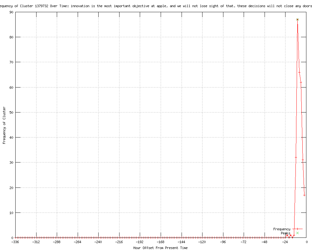 | 5 | innovation is the most important objective at apple, and we will not lose sight of that Urls http://newsfactor.com/story.xhtml?story_id=82621 http://business.newsfactor.com/story.xhtml?story_id=82621 http://sfgate.com/cgi-bin/article.cgi?f=/c/a/2012/03/19/BU201NN0EH.DTL&feed=rss.news http://sfgate.com/cgi-bin/article.cgi?f=/c/a/2012/03/19/BU201NN0EH.DTL&feed=rss.business http://sfgate.com/cgi-bin/article.cgi?f=/c/a/2012/03/19/BU201NN0EH.DTL&feed=rss.technology |