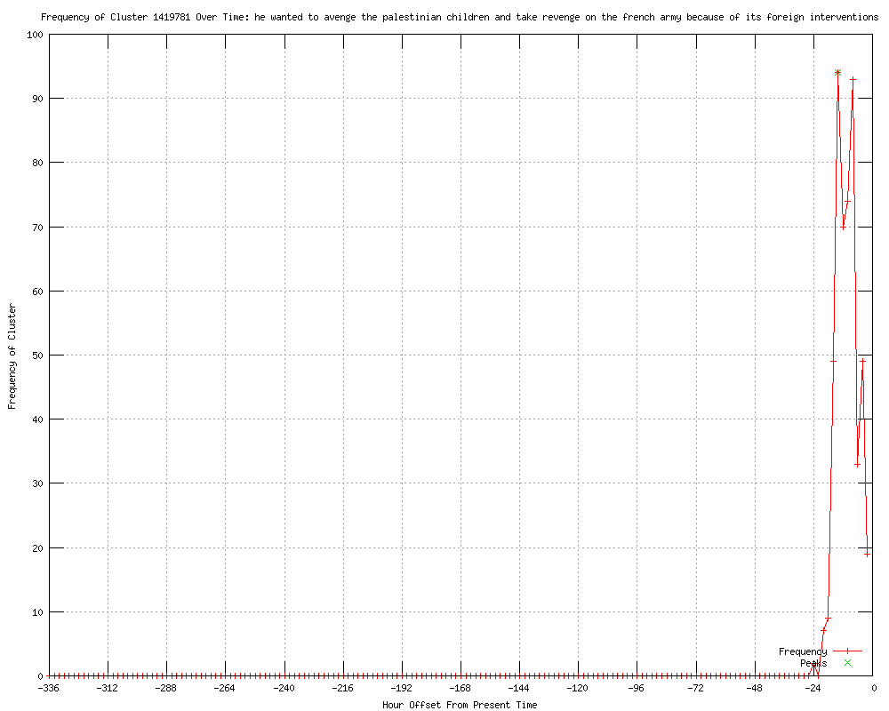 | 20 | he wanted to avenge the palestinian children and take revenge on the french army because of its foreign interventions Urls http://forums.ebay.com/db1/topic/The-Soapbox/French-Police-Finally/5100058194 http://luxlibertas.com/toulouse-siege-live/ http://cbs19.tv/story/17209378/french-police-surround-suspect-in-toulouse-shootings http://patdollard.com/2012/03/developing-french-shooter-in-stand-off-with-police/ http://wibw.com/home/headlines/French_Police_Surround_Suspect_In_Toulouse_Shootings_143649556.html http://facepunch.com/threads/1171762?goto=newpost http://msnbc.msn.com/id/46805770 http://edition.cnn.com/2012/03/21/world/europe/france-shooting-suspect-profile/index.html?eref=rss_europe http://cnn.com/2012/03/21/world/europe/france-shooting-suspect-profile/index.html?eref=rss_topstories http://edition.cnn.com/2012/03/21/world/europe/france-shooting-suspect-profile/index.html?eref=rss_topstories http://rss.cnn.com/~r/rss/cnn_topstories/~3/vQ08ykKJ6Hc/index.html http://cnn.com/2012/03/21/world/europe/france-shooting-suspect-profile/index.html?eref=rss_world http://rss.cnn.com/~r/rss/cnn_world/~3/zZWpPXeOlWA/index.html http://cnn.com/2012/03/21/world/europe/france-shooting-suspect-profile/index.html?hpt=hp_c1 http://bloodthirstyliberal.com/?p=18395 http://blackpoliticalbuzz.blogspot.com/2012/03/mohammed-merah-lead-suspect-in-france.html http://partisan.blogs.hopelesslypartisan.com/item_11806.htm http://cnn.com/2012/03/21/world/europe/france-shooting-suspect-profile/index.html?eref=rss_latest http://kbmt12.com/story/17210917/who-is-french-shootings-suspect-mohammed-merah http://israel-palestijnen.blogspot.com/2012/03/dader-aanslag-op-joodse-school-in.html |