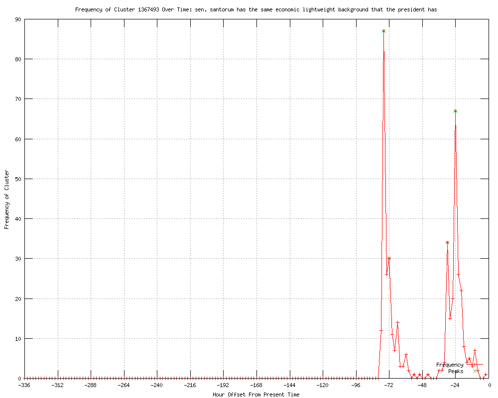 | 6 | sen. santorum has the same economic lightweight background that the president has Urls http://kesq.com/politics/30704792/detail.html http://krcrtv.com/news/30704792/detail.html http://nbcmontana.com/politics/30704792/detail.html http://localnews8.com/politics/30704792/detail.html http://krcrtv.com/politics/30704792/detail.html http://kjct8.com/politics/30704792/detail.html |