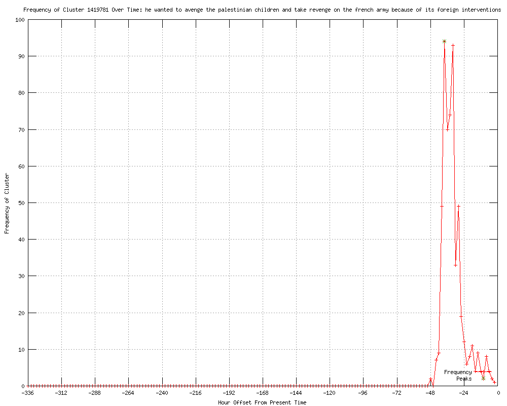 | 31 | he wanted to avenge the palestinian children and take revenge on the french army because of its foreign interventions Urls http://forums.ebay.com/db1/topic/The-Soapbox/French-Police-Finally/5100058194 http://luxlibertas.com/toulouse-siege-live/ http://cbs19.tv/story/17209378/french-police-surround-suspect-in-toulouse-shootings http://patdollard.com/2012/03/developing-french-shooter-in-stand-off-with-police/ http://wibw.com/home/headlines/French_Police_Surround_Suspect_In_Toulouse_Shootings_143649556.html http://facepunch.com/threads/1171762?goto=newpost http://msnbc.msn.com/id/46805770 http://edition.cnn.com/2012/03/21/world/europe/france-shooting-suspect-profile/index.html?eref=rss_europe http://cnn.com/2012/03/21/world/europe/france-shooting-suspect-profile/index.html?eref=rss_topstories http://edition.cnn.com/2012/03/21/world/europe/france-shooting-suspect-profile/index.html?eref=rss_topstories http://rss.cnn.com/~r/rss/cnn_topstories/~3/vQ08ykKJ6Hc/index.html http://cnn.com/2012/03/21/world/europe/france-shooting-suspect-profile/index.html?eref=rss_world http://rss.cnn.com/~r/rss/cnn_world/~3/zZWpPXeOlWA/index.html http://cnn.com/2012/03/21/world/europe/france-shooting-suspect-profile/index.html?hpt=hp_c1 http://bloodthirstyliberal.com/?p=18395 http://blackpoliticalbuzz.blogspot.com/2012/03/mohammed-merah-lead-suspect-in-france.html http://partisan.blogs.hopelesslypartisan.com/item_11806.htm http://cnn.com/2012/03/21/world/europe/france-shooting-suspect-profile/index.html?eref=rss_latest http://kbmt12.com/story/17210917/who-is-french-shootings-suspect-mohammed-merah http://israel-palestijnen.blogspot.com/2012/03/dader-aanslag-op-joodse-school-in.html http://cnn.com/2012/03/21/world/europe/france-shooting-suspect-profile/index.html?hpt=hp_t1 http://orianomattei.blogspot.com/2012/03/who-is-french-shootings-suspect_22.html http://orianomattei.blogspot.com/2012/03/who-is-french-shootings-suspect.html http://rss.cnn.com/~r/rss/edition_europe/~3/wiNvZO9tda0/index.html http://clickorlando.com/news/Who-was-suspected-French-gunman-Mohammed-Merah/-/1637132/9652528/-/n2uomx/-/index.html http://justnews.com/news/Who-was-suspected-French-gunman-Mohammed-Merah/-/1717324/9652528/-/k0vi67/-/index.html http://clickorlando.com/news/Who-was-French-gunman-Mohammed-Merah/-/1637132/9652528/-/11x33ym/-/index.html http://justnews.com/news/Who-was-French-gunman-Mohammed-Merah/-/1717324/9652528/-/tpe8cf/-/index.html http://ibtimes.com/articles/318255/20120322/who-mohammed-merah-french-gunman-killer.htm http://luxlibertas.com/french-shooting-suspect-was-self-styled-al-qaeda-jihadist/ http://breitbart.com/Big-Peace/2012/03/22/world-view-march-22-2012 |