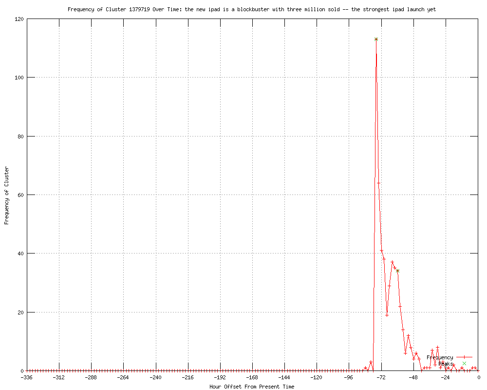 | 8 | the new ipad is a blockbuster with three million sold ? the strongest ipad launch yet Urls http://indianasnewscenter.com/news/state/143398696.html http://wbng.com/news/state/143398956.html http://msnbc.msn.com/id/46789224 http://digitaltrends.com/mobile/apple-makes-1-5-billion-in-a-weekend-sells-3-million-new-ipads/ http://electronics.costfreehost.com/2012/03/19/new-ipad-tops-three-million/ http://news.yahoo.com/apple-makes-1-5-billion-weekend-sells-3-005406123.html http://iphoneappfreelancer.com/blog/21508 http://digitaltrends.com/mobile/apple-makes-1-5-billion-in-a-weekend-sells-3-million-new-ipads |