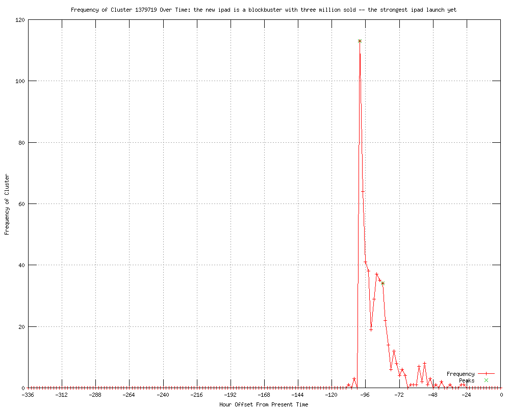 | 8 | the new ipad is a blockbuster with three million sold ? the strongest ipad launch yet Urls http://indianasnewscenter.com/news/state/143398696.html http://wbng.com/news/state/143398956.html http://msnbc.msn.com/id/46789224 http://digitaltrends.com/mobile/apple-makes-1-5-billion-in-a-weekend-sells-3-million-new-ipads/ http://electronics.costfreehost.com/2012/03/19/new-ipad-tops-three-million/ http://news.yahoo.com/apple-makes-1-5-billion-weekend-sells-3-005406123.html http://iphoneappfreelancer.com/blog/21508 http://digitaltrends.com/mobile/apple-makes-1-5-billion-in-a-weekend-sells-3-million-new-ipads |