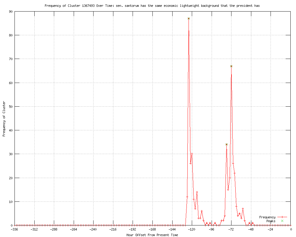 | 6 | sen. santorum has the same economic lightweight background that the president has Urls http://kesq.com/politics/30704792/detail.html http://krcrtv.com/news/30704792/detail.html http://nbcmontana.com/politics/30704792/detail.html http://localnews8.com/politics/30704792/detail.html http://krcrtv.com/politics/30704792/detail.html http://kjct8.com/politics/30704792/detail.html |