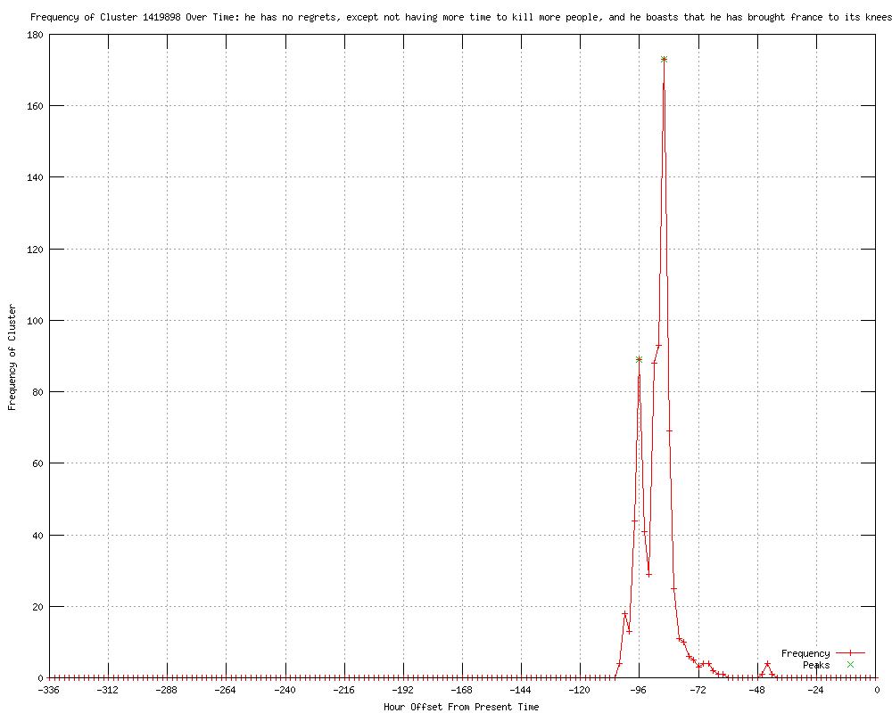 489he has no regrets, except not having more time to kill more people and he boasts that he has brought france to its knees