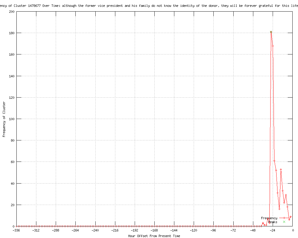 | 552 | although the former vice president and his family do not know the identity of the donor, they will be forever grateful for this lifesaving gift Urls http://wcyb.com/politics/30753948/detail.html http://wcyb.com/nationalnews/30753948/detail.html http://newsmax.com/Newsfront/Cheney-heart-transplant-surgery/2012/03/24/id/433762 http://foxtricities.com/fox-tri-cities/30753948/detail.html http://uk.news.yahoo.com/us-former-vice-president-dick-cheney-gets-heart-231558371.html http://france24.com/en/20120325-us-former-vice-president-dick-cheney-gets-heart-transplant?ns_campaign=editorial&ns_source=RSS_public&ns_mchannel=RSS&ns_fee=0&ns_linkname=20120325_us_former_vice_president_dick_cheney http://channelnewsasia.com/stories/afp_world/view/1191095/1/.html http://timesofindia.feedsportal.com/fy/8at2EuL0Xmggw23M/story01.htm http://archive.japantoday.com/category/world/view/former-u-s-vice-president-cheney-gets-heart-transplant http://japantoday.com/category/world/view/former-u-s-vice-president-cheney-gets-heart-transplant http://newsinfo.inquirer.net/166935/former-us-vice-president-cheney-gets-heart-transplant http://nation.com.pk/pakistan-news-newspaper-daily-english-online/international/25-Mar-2012/former-us-vice-president-cheney-gets-heart-transplant http://ktxs.com/politics/30753948/detail.html http://dispatch.com/content/stories/national_world/2012/03/24/Cheney_heart.html http://bloodthirstyliberal.com/?p=18423 http://forum.prisonplanet.com/index.php?topic=230237.msg1349658#msg1349658 http://forum.prisonplanet.com/index.php?topic=230237.msg1349655#msg1349655 http://forum.prisonplanet.com/index.php?topic=230237.msg1349657#msg1349657 http://forum.prisonplanet.com/index.php?topic=230237.msg1349669#msg1349669 http://forum.prisonplanet.com/index.php?topic=230237.msg1349673#msg1349673 http://forum.prisonplanet.com/index.php?topic=230237.msg1349675#msg1349675 http://forum.prisonplanet.com/index.php?topic=230237.msg1349676#msg1349676 http://ohio.com/news/nation/national-news-briefs-march-24-1.284432 http://unionleader.com/article/20120324/NEWS06/120329866&source=RSS http://publicbroadcasting.net/wuky/news.newsmain/article/0/0/1915432/US/Cheney.gets.heart.transplant..in.intensive.care http://publicbroadcasting.net/wkyu/news.newsmain/article/0/0/1915432/US/Cheney.gets.heart.transplant..in.intensive.care http://kgmi.com/Cheney-gets-heart-transplant-in-intensive-care/11461869?newsId=134079 http://publicbroadcasting.net/wabe/news.newsmain/article/0/0/1915432/US/Cheney.gets.heart.transplant..in.intensive.care http://health.yahoo.com/news/s/nm/cheney-gets-heart-transplant-in-intensive-care http://health.yahoo.net/news/s/nm/cheney-gets-heart-transplant-in-intensive-care http://baltimoresun.com/news/breaking/sns-rt-us-usa-cheneybre82n0fk-20120324,0,610540.story?track=rss http://baltimoresun.com/news/sns-rt-us-usa-cheneybre82n0fk-20120324,0,1046301.story?track=rss http://my.news.yahoo.com/cheney-gets-heart-transplant-intensive-care-024916272.html http://in.reuters.com/article/2012/03/25/usa-cheney-idINDEE82O00N20120325?feedType=RSS&feedName=worldNews http://freemalaysiatoday.com/category/world/2012/03/25/cheney-gets-heart-transplant-in-intensive-care/ http://ibtimes.com/articles/319033/20120325/dick-cheney-heart-transplant-intensive-care-bypass.htm http://reuters.com/article/2012/03/25/us-usa-cheney-idUSBRE82N0FK20120325?feedType=RSS&feedName=wtMostRead http://cbsnews.com/8301-503544_162-57403969-503544/dick-cheney-receives-heart-transplant/ http://outsidethebeltway.com/former-vice-president-cheney-undergoes-heart-transplant-surgery/ http://feeds.cbsnews.com/~r/CBSNewsMain/~3/N2Z7rlNx74U/ http://thenewstribune.com/2012/03/24/2080885/aide-says-cheney-had-heart-transplant.html?storylink=rss http://bnd.com/2012/03/24/2113841/aide-says-cheney-had-heart-transplant.html http://seattlepi.com/news/article/Aide-says-Cheney-had-heart-transplant-3432458.php http://miamiherald.com/2012/03/24/2712033/aide-says-cheney-had-heart-transplant.html http://nydailynews.com/news/national/dick-cheney-heart-transplant-article-1.1050410?localLinksEnabled=false http://newsvine.com/_news/2012/03/24/10847654-aide-says-cheney-had-heart-transplant http://wral.com/lifestyles/healthteam/story/10900749/ http://nwherald.com/2012/03/24/aide-says-cheney-had-heart-transplant/ad2xtxq/ http://startribune.com/nation/144106546.html http://wect.com/story/17247190/aide-says-cheney-had-heart-transplant http://rhymeswithright.mu.nu/archives/327798.php http://nbc12.com/story/17247190/aide-says-cheney-had-heart-transplant http://nbcpolitics.msnbc.msn.com/_news/2012/03/24/10847614-former-vice-president-dick-cheney-recovering-after-heart-transplant?chromedomain=usnews http://wthr.com/story/17247190/aide-says-cheney-had-heart-transplant http://sunherald.com/2012/03/24/3839785/aide-says-cheney-had-heart-transplant.html http://wandtv.com/story/17247190/aide-says-cheney-had-heart-transplant http://wdam.com/story/17247190/aide-says-cheney-had-heart-transplant http://twincities.com/national/ci_20248673/aide-says-cheney-had-heart-transplant?source=rss http://kdwn.com/index.php?page=2§ion=BREAKING_NEWS&title=Aide_says_Cheney_had_heart_transplant http://kdwn.com/index.php?page=2§ion=NATIONAL_NEWS&title=Aide_says_Cheney_had_heart_transplant http://wistv.com/story/17247190/aide-says-cheney-had-heart-transplant http://kentucky.com/2012/03/24/2124711/aide-says-cheney-had-heart-transplant.html#storylink=rss http://kwwl.com/story/17247190/aide-says-cheney-had-heart-transplant http://wmbfnews.com/story/17247190/aide-says-cheney-had-heart-transplant http://mercurynews.com/nation-world/ci_20248683/aide-dick-cheney-recovering-from-heart-transplant?source=rss http://ktiv.com/story/17247190/aide-says-cheney-had-heart-transplant http://whbf.com/story/17247190/aide-says-cheney-had-heart-transplant http://mysanantonio.com/news/article/Aide-says-Cheney-had-heart-transplant-3432458.php http://abc40.com/story/17247190/aide-says-cheney-had-heart-transplant http://kcbd.com/sto