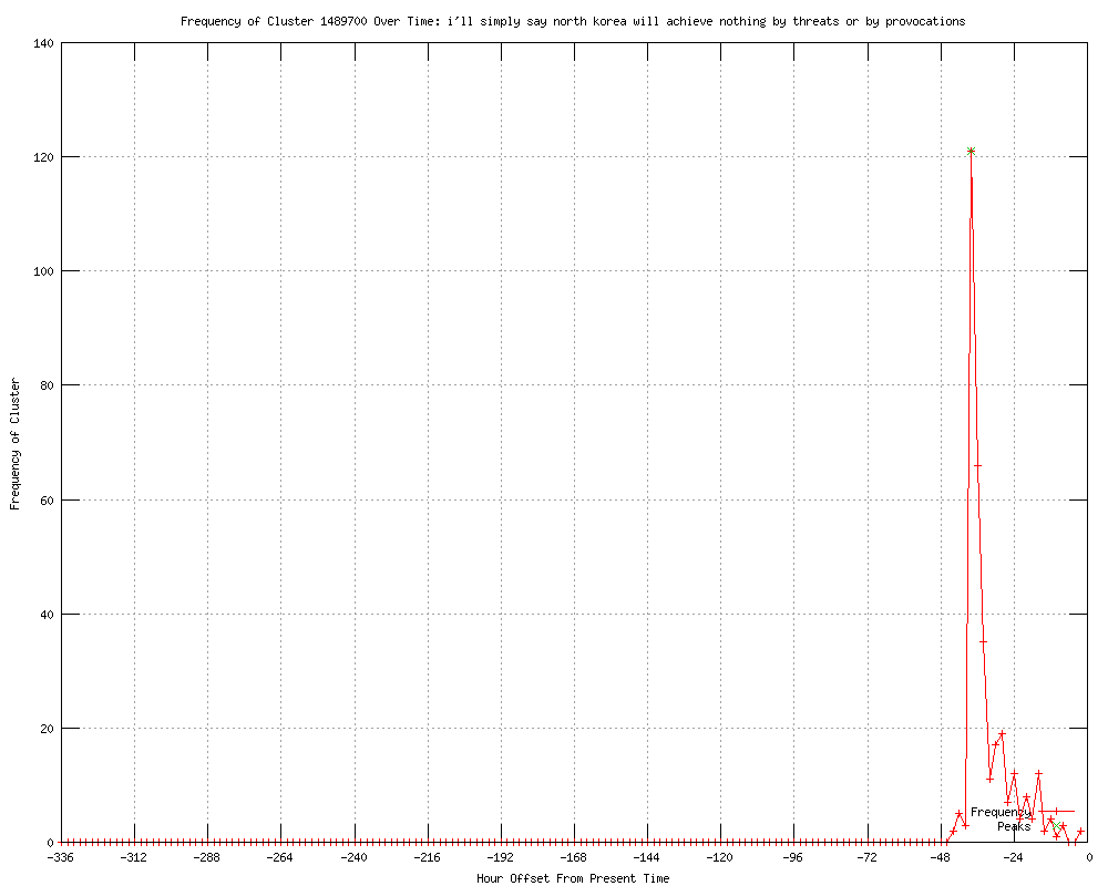 | 11 | achieve nothing by threats or by provocations Urls http://bbc.co.uk/go/rss/int/news/-/news/world-asia-17504822 http://bbc.co.uk/news/world-asia-17504822 http://markwadsworth.blogspot.com/2012/03/kim-jong-un-warns-usa-against-missile.html http://b92.net/eng/news/comments.php?nav_id=79442 http://ictmag.info/politics/obama-warns-n-korea-against-missile-test-launch/ http://rocketnews.com/2012/03/obama-warns-n-korea-over-launch/ http://news.bbc.co.uk/news/world-asia-17504822 http://rferl.org/content/obama_warns_north_korea_over_rocket_launch/24526818.html http://radionz.co.nz/news/world/101751/us-warns-north-korea-over-missile-launch http://digitaljournal.com/article/321799 http://thefinancialexpress-bd.com/more.php?news_id=124702&date=2012-03-26 |