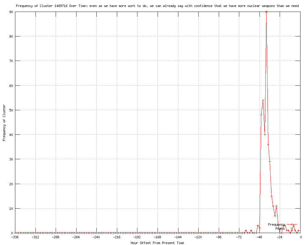 | 89 | we can already say with confidence that we have more nuclear weapons than we need Urls http://reuters.com/article/2012/03/26/us-nuclear-summit-idUSBRE82P01620120326 http://in.reuters.com/article/2012/03/26/nuclear-summit-idINDEE82P02620120326?feedType=RSS&feedName=topNews http://feeds.reuters.com/%7Er/Reuters/UKTopNews/%7E3/5ILbvw1GDM8/uk-nuclear-summit-idUKBRE82P01020120326 http://in.reuters.com/article/2012/03/26/nuclear-summit-idINDEE82P02620120326?feedType=RSS&feedName=worldNews http://my.news.yahoo.com/obama-vows-pursue-further-nuclear-cuts-russia-030832035.html http://wdbj7.com/sns-rt-us-nuclear-summitbre82p016-20120325,0,2398290.story http://moneycontrol.com/news/wire-news/obama-vows-to-pursue-further-nuclear-cutsrussia_685050.html http://chicagotribune.com/news/sns-rt-us-nuclear-summitbre82p016-20120325,0,7356071.story?track=rss http://au.news.yahoo.com/a/-/world/13264671/obama-vows-to-pursue-further-nuclear-cuts-with-russia/ http://zeenews.india.com/news/world/obama-vows-to-pursue-more-nuclear-cuts-with-russia_766146.html http://thehimalayantimes.com/rssReference.php?id=MzI1NTE4 http://kgmi.com/Obama-vows-to-pursue-further-nuclear-cuts-with-Rus/11461924?newsId=134185 http://chicagotribune.com/news/nationworld/sns-rt-us-nuclear-summitbre82p016-20120325,0,2842067.story?track=rss http://publicbroadcasting.net/wabe/news.newsmain/article/0/0/1915574/World/Obama.vows.to.pursue.further.nuclear.cuts.with.Russia http://au.news.yahoo.com/a/-/business/13264671/obama-vows-to-pursue-further-nuclear-cuts-with-russia/ http://au.news.yahoo.com/world/a/-/world/13264671/obama-vows-to-pursue-further-nuclear-cuts-with-russia/ http://publicbroadcasting.net/wkyu/news.newsmain/article/0/0/1915575/Top.Stories/Obama.vows.to.pursue.further.nuclear.cuts.with.Russia http://publicbroadcasting.net/wkyu/news.newsmain/article/0/0/1915574/World/Obama.vows.to.pursue.further.nuclear.cuts.with.Russia http://moneycontrol.com/news/world-news/obama-vows-to-pursue-further-nuclear-cutsrussia_685050.html http://publicbroadcasting.net/wuky/news.newsmain/article/0/0/1915574/World/Obama.vows.to.pursue.further.nuclear.cuts.with.Russia http://thestar.com.my.feedsportal.com/c/33048/f/534559/s/1dc75ea0/l/0Lthestar0N0Bmy0Cnews0Cstory0Basp0Dfile0F0C20A120C30C260Cworldupdates0C20A120E0A30E26T0A30A746Z0I40IBRE82P0A10A0IRTROPTT0I0A0IUK0ENUCLEAR0ESUMMIT0Gsec0FWorldupdates/story01.htm http://actualdot.com/2012/03/26/obama-vows-to-pursue-further-nuclear-cuts-with-russia/ http://wkzo.com/news/articles/2012/mar/26/obama-to-reaffirm-pledge-on-nuclear-arms-cuts/ http://wsbt.com/news/sns-rt-us-nuclear-summitbre82p016-20120325,0,3308928.story http://ibtimes.com/articles/319205/20120326/obama-nuclear-cuts-russia-summit.htm http://allnews.rss.themalaysianinsider.com/c/33362/f/567634/s/1dc7bbb9/l/0L0Sthemalaysianinsider0N0Cworld0Carticle0Cobama0Evows0Eto0Epursue0Efurther0Enuclear0Ecuts0Ewith0Erussia0C/story01.htm http://lfpress.com/news/world/2012/03/26/19548411.html http://irishtimes.com/newspaper/breaking/2012/0326/breaking1.html http://cnbc.com//id/46852572 http://da.feedsportal.com/c/851/f/10838/s/1dc7f0ad/l/0L0Sirishtimes0N0Cnewspaper0Cbreaking0C20A120C0A3260Cbreaking10Bhtm/ia1.htm http://thestar.com.my.feedsportal.com/c/33048/f/534559/s/1dc7e0e1/l/0Lthestar0N0Bmy0Cnews0Cstory0Basp0Dfile0F0C20A120C30C260Cworldupdates0C20A120E0A30E26T0A43929Z0I50IBRE82P0A10A0IRTROPTT0I0A0IUK0ENUCLEAR0ESUMMIT0Gsec0FWorldupdates/story01.htm http://kyivpost.com/news/russia/detail/124915/ http://telegraph.feedsportal.com/c/32726/f/568464/s/1dc82bc7/l/0L0Stelegraph0O0Cnews0Cworldnews0Cbarackobama0C91664840CBarack0EObama0Epushes0Efor0Eworld0Ewithout0Enuclear0Eweapons0Bhtml/story01.htm http://cnews.canoe.ca/CNEWS/World/2012/03/26/19548381.html?cid=rssnews http://fin24.com/Economy/Obama-vows-to-pursue-more-nuclear-cuts-20120326 http://thestar.com.my.feedsportal.com/c/33048/f/534559/s/1dc80ae8/l/0Lthestar0N0Bmy0Cnews0Cstory0Basp0Dfile0F0C20A120C30C260Cworldupdates0C20A120E0A30E26T0A54336Z0I60IBRE82P0A10A0IRTROPTT0I0A0IUK0ENUCLEAR0ESUMMIT0Gsec0FWorldupdates/story01.htm http://msnbc.msn.com/id/46851853 http://telegraph.co.uk/news/worldnews/barackobama/9166484/Barack-Obama-pushes-for-world-without-nuclear-weapons.html http://telegraph.feedsportal.com/c/32726/f/579330/s/1dc821ae/l/0L0Stelegraph0O0Cnews0Cworldnews0Cbarackobama0C91664840CBarack0EObama0Epushes0Efor0Eworld0Ewithout0Enuclear0Eweapons0Bhtml/story01.htm http://independent.ie/world-news/asia-pacific/barack-obama-pushes-for-world-without-nuclear-weapons-3061037.html http://telegraph.feedsportal.com/c/32726/f/564430/s/1dc81fe4/l/0L0Stelegraph0O0Cnews0Cworldnews0Cbarackobama0C91664840CBarack0EObama0Epushes0Efor0Eworld0Ewithout0Enuclear0Eweapons0Bhtml/story01.htm http://spaceports.blogspot.com/2012/03/obama-seeks-global-nuclear-missile.html http://engfootball.com/us-reducing-arsenal-wont-harm-security-obama/ http://engfootball.com/obama-says-us-reducing-nuclear-arsenal-wont-harm-security/ http://bloomberg.com/news/2012-03-26/obama-says-u-s-reducing-nuclear-arms-won-t-endanger-security.html http://ibnlive.in.com/news/obama-to-pursue-further-nuclear-cuts-with-russia/242703-2.html http://stuff.co.nz/timaru-herald/world/6640972/Obama-vows-to-pursue-nuclear-cuts http://stuff.co.nz/world/americas/6640972/Obama-vows-to-pursue-nuclear-cuts http://panarmenian.net/eng/news/100296/ http://wtkr.com/news/nationworld/sns-rt-us-nuclear-summitbre82p016-20120325,0,5745219.story http://da.feedsportal.com/c/32158/f/414204/s/1dc8c045/l/0L0Sitn0O0Cworld0C419270CObama0Kcalls0Kfor0Knuclear0Kcuts/ia1.htm http://reuters.com/article/2012/03/26/us-nuclear-summit-idUSBRE82P01620120326?feedType=RSS&feedName=worldNews&utm_source=feedburner&utm_medium=feed&utm_campaign=Feed%3A+reuters%2FworldNews+%28News+%2F+US+%2F+International%29 http://indiatalkies.com/2012/03/obama-seek-nuke-arms-reductions-russia.html http://feeds.reuters.com/~r/reuters/worldNews/~3/lzgWEmHYVx0/us-nuclear-summit-idUSBRE82P01620120326 http://odt.co.nz/news/world/2029