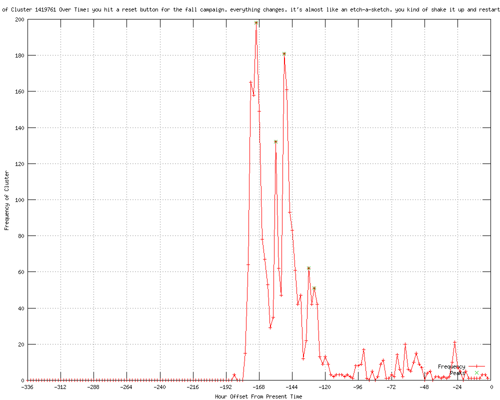 | 61 | i think you hit a reset button for the fall campaign Urls http://newsmax.com/Newsfront/001513NODE-001565NODE-001575NODE-2500/2012/03/21/id/433419 http://nytimes.com/2012/03/22/us/politics/jeb-bush-endorses-romney-aide-makes-etch-a-sketch-gaffe.html?partner=rss&emc=rss http://post-gazette.com/stories/news/us/romneys-day-to-relish-is-marred-by-aides-gaffe-627486/ http://rawstory.com/rs/2012/03/21/adviser-romney-will-change-positions-like-an-etch-a-sketch-after-primary/ http://crooksandliars.com/david/adviser-romney-will-change-positions-etch-sk http://leftword.blogdig.net/archives/articles/March2012/21/Adviser__Romney_Will_Change_Positions__Like_an_Etch_A_Sketch__After_Primary.html http://dailycaller.com/2012/03/21/romney-aide-causes-stir-with-etch-a-sketch-comment/ http://breitbart.com/Big-Government/2012/03/21/Romney-Etch-A-Sketch http://loyalopposition.blogs.nytimes.com/2012/03/21/romney-to-lincoln-you-can-fool-all-the-people/?partner=rss&emc=rss http://dailycaller.com/2012/03/21/etch-a-sketch-makers-hoping-to-make-money-off-media-attention/ http://mercurynews.com/presidentelect/ci_20226948/gaffe-by-romney-aide-overshadows-big-endorsement?source=rss http://post-gazette.com/stories/news/politics-national/romney-feels-momentum-carrying-him-to-nomination-627396/ http://seattletimes.nwsource.com/html/nationworld/2017810643_campaign22.html?syndication=rss http://seattletimes.nwsource.com/html/nationworld/2017810643_campaign22.html http://us.rd.yahoo.com/finance/external/bloomberg/rss/SIG=13510n4v4/*http://www.bloomberg.com/news/2012-03-22/romney-fights-etch-a-sketch-image-in-bid-to-seal-race.html?cmpid=yhoo http://finance.yahoo.com/news/romney-fights-etch-sketch-image-040500568.html http://us.rd.yahoo.com/finance/news/rss/story/*http://us.rd.yahoo.com/finance/news/topfinstories/*http://finance.yahoo.com/news/romney-fights-etch-sketch-image-040500568.html?l=1 http://newsmax.com/Newsfront/Romney-Etch-Sketch-Republican/2012/03/22/id/433577 http://nydailynews.com/news/election-2012/mitt-romney-wife-ann-damage-control-mode-eric-fehrnstrom-etch-a-sketch-gaffe-article-1.1048782?localLinksEnabled=false http://vcstar.com/news/2012/mar/22/milbank-romney-advisers-game-changer/?partner=RSS http://totalcapitol.com/?news_id=5006293&redirect=http://www.vcstar.com/news/2012/mar/22/milbank-romney-advisers-game-changer/?partner=RSS http://theblogismine.com/2012/03/21/mitt-romney-george-w-bush-and-henry-paulson-saved-country-from-depression/ http://cnbc.com//id/46818657 http://thinkprogress.org/romm/2012/03/22/449724/etch-a-sketch-in-2006-romney-touted-high-gasoline-prices-to-discourage-consumption/ http://patrickhenrypress.info/node/597419 http://rawstory.com/rs/2012/03/22/etch-a-sketch-companys-stock-up-over-240/ http://facepunch.com/threads/1172180?goto=newpost http://freerepublic.com/focus/f-news/2862233/posts http://entertainment.wagerweb.com/politics/etch-a-sketch-comment-already-hurting-romney-40874.html http://pentaxforums.com/forums/political-religious-discussion/179821-mitt-etch-sketch-man.html http://nationalinterest.org/blog/jacob-heilbrunn/mitt-romney-sketchy-candidate-6676 http://usnews.com/blogs/Ken-Walshs-Washington/2012/3/22/romney-rivals-say-positions-will-follow-him-into-general-election?s_cid=rss:Ken-Walshs-Washington:romney-rivals-say-positions-will-follow-him-into-general-election http://blogs.villagevoice.com/runninscared/2012/03/etch_a_sketch_president.php http://commonsense-gater.blogspot.com/2012/03/willard-mitt-romney-fox-liar-liar-pants.html http://iconicmidwest.blogspot.com/2012/03/political-science-gaffe-says-new-york.html http://money.usnews.com/blogs/Ken-Walshs-Washington/2012/3/22/romney-rivals-say-positions-will-follow-him-into-general-election?s_cid=rss:Ken-Walshs-Washington:romney-rivals-say-positions-will-follow-him-into-general-election http://fr-online.de/weblog--countdown-fuer-obama/weblog-zur-us-wahl-2012-viel-laerm-um-die-zaubertafel,11777598,11955572.html http://fr-online.de/weblog--countdown-fuer-obama/weblog-zur-us-wahl-2012--22---viel-laerm-um-die-zaubertafel,11777598,11955572.html http://northjersey.com/r?19=961&43=516422&44=143870516&32=4497&7=309037&40=http%3A%2F%2Fwww.northjersey.com%2Fnews%2Fopinions%2Fmilbank_032312.html http://berliner-zeitung.de/weblog--showdown-fuer-obama/weblog-zur-us-wahl-2012--22---viel-laerm-um-die-zaubertafel,11832534,11955572.html http://patriotpost.us/edition/2012/03/23/digest/ http://courier-journal.com/article/20120323/OPINION04/303230021/Dana-Milbank-Etch-Sketch-gaffe-torments-Mitt-Romney?odyssey=nav|head http://courier-journal.com/article/20120323/OPINION04/303230021/Dana-Milbank-Etch-Sketch-gaffe-torments-Mitt-Romney?odyssey=mod|newswell|text|Home|s http://courier-journal.com/article/20120323/OPINION04/303230021/Dana-Milbank-Etch-A-Sketch-gaffe-torments-Mitt-Romney?odyssey=tab|mostpopular|text|FRONTPAGE http://courier-journal.com/article/20120323/OPINION04/303230021/Dana-Milbank-Etch-A-Sketch-gaffe-torments-Mitt-Romney?odyssey=tab|mostpopular|img|FRONTPAGE http://washingtonpost.com/blogs/post-partisan/post/fridays-p-op-quiz-etch-a-sketch-edition/2011/03/04/gIQAjFnMUS_blog.html?wprss=post-partisan http://thinkprogress.org/romm/2012/03/23/450555/romney-etch-a-sketch-eight-reasons-the-gaffe-will-endure/ http://patrickhenrypress.info/node/598544 http://sierraactivist.org/2012/03/23/romney-can-create-jobs-etch-a-sketch-sales-jump-1500-eight-reasons-the-gaffe-will-endure/?utm_source=rss&utm_medium=rss&utm_campaign=romney-can-create-jobs-etch-a-sketch-sales-jump-1500-eight-reasons-the-gaffe-will-endure http://huffingtonpost.com/joseph-romm/eight-reasons-the-etch-a-_b_1375697.html http://blogotariat.com/node/304027 http://facebookapplicationdevelopment.org/uncategorized/joseph-romm-eight-reasons-the-etch-a-sketch-gaffe-will-endure/ http://bangordailynews.com/2012/03/23/opinion/romneys-etch-a-sketch-gaffe/ http://FreedomsPhoenix.com/Find-Freedom.htm?At=108064 http://allword-news.co.uk/2012/03/24/eight-reasons-the-etchasketch-gaff