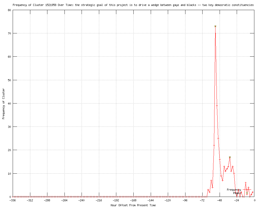 | 127 | the strategic goal of this project is to drive a wedge between gays and blacks - two key democratic constituencies Urls http://ksla.com/story/17267776/gay-marriage-foes-sought-to-split-gays-and-blacks http://pinknews.co.uk/2012/03/27/secret-documents-reveal-anti-gay-marriage-group-planned-to-divide-gay-and-black-voters/ http://salon.com/2012/03/27/noms_gross_race_baiting_tactics/ http://miamiherald.com/2012/03/27/2717177/gay-marriage-foes-sought-to-split.html http://sunherald.com/2012/03/27/3845878/gay-marriage-foes-sought-to-split.html http://koamtv.com/story/17267776/gay-marriage-foes-sought-to-split-gays-and-blacks http://kansascity.com/2012/03/27/3517204/gay-marriage-foes-sought-to-split.html#storylink=rss http://wbtv.com/story/17267776/gay-marriage-foes-sought-to-split-gays-and-blacks http://newson6.com/story/17267776/gay-marriage-foes-sought-to-split-gays-and-blacks http://wrcbtv.com/story/17267776/gay-marriage-foes-sought-to-split-gays-and-blacks http://wmbfnews.com/story/17267776/gay-marriage-foes-sought-to-split-gays-and-blacks http://ktiv.com/story/17267776/gay-marriage-foes-sought-to-split-gays-and-blacks http://ktvn.com/story/17267776/gay-marriage-foes-sought-to-split-gays-and-blacks http://kwqc.com/story/17267776/gay-marriage-foes-sought-to-split-gays-and-blacks http://fox28.com/story/17267776/gay-marriage-foes-sought-to-split-gays-and-blacks http://wandtv.com/story/17267776/gay-marriage-foes-sought-to-split-gays-and-blacks http://wgem.com/story/17267776/gay-marriage-foes-sought-to-split-gays-and-blacks http://wthr.com/story/17267776/gay-marriage-foes-sought-to-split-gays-and-blacks http://kentucky.com/2012/03/27/2128443/gay-marriage-foes-sought-to-split.html#storylink=rss http://wect.com/story/17267776/gay-marriage-foes-sought-to-split-gays-and-blacks http://wbay.com/story/17267776/gay-marriage-foes-sought-to-split-gays-and-blacks http://woi-tv.com/story/17267776/gay-marriage-foes-sought-to-split-gays-and-blacks http://kdwn.com/index.php?page=2§ion=BREAKING_NEWS&title=Gay-marriage_foes_sought_to_split_gays_and_blacks http://newsvine.com/_news/2012/03/27/10889855-gay-marriage-foes-sought-to-split-gays-and-blacks http://komonews.com/news/national/Memos-Gay-marriage-foes-sought-to-split-gays-and-blacks-144427125.html http://wtol.com/story/17267776/gay-marriage-foes-sought-to-split-gays-and-blacks http://news9.com/story/17267776/gay-marriage-foes-sought-to-split-gays-and-blacks http://ajc.com/news/nation-world/gay-marriage-foes-sought-1399781.html?cxtype=rss_news_82111 http://wrex.com/story/17267776/gay-marriage-foes-sought-to-split-gays-and-blacks http://kswo.com/story/17267776/gay-marriage-foes-sought-to-split-gays-and-blacks http://utsandiego.com/news/2012/mar/27/gay-marriage-foes-sought-to-split-gays-and-blacks/ http://kcbd.com/story/17267776/gay-marriage-foes-sought-to-split-gays-and-blacks http://kcautv.com/story/17267776/gay-marriage-foes-sought-to-split-gays-and-blacks http://wkrn.com/story/17267776/gay-marriage-foes-sought-to-split-gays-and-blacks http://wlox.com/story/17267776/gay-marriage-foes-sought-to-split-gays-and-blacks http://wten.com/story/17267776/gay-marriage-foes-sought-to-split-gays-and-blacks http://khnl.com/story/17267776/gay-marriage-foes-sought-to-split-gays-and-blacks http://fox11az.com/story/17267776/gay-marriage-foes-sought-to-split-gays-and-blacks http://fox41.com/story/17267776/gay-marriage-foes-sought-to-split-gays-and-blacks http://wric.com/story/17267776/gay-marriage-foes-sought-to-split-gays-and-blacks http://kwes.com/story/17267776/gay-marriage-foes-sought-to-split-gays-and-blacks http://bellinghamherald.com/2012/03/27/2456085/gay-marriage-foes-sought-to-split.html http://bellinghamherald.com/2012/03/27/2456062/gay-marriage-foes-sought-to-split.html http://kcby.com/news/national/Memos-Gay-marriage-foes-sought-to-split-gays-and-blacks-144427125.html http://sacbee.com/2012/03/27/4370507/gay-marriage-foes-sought-to-split.html#mi_rss=Wire%20National%20News http://seattlepi.com/news/article/Gay-marriage-foes-sought-to-split-gays-and-blacks-3438549.php http://artesianews.com/ap-news/united-states-ap-news/gay-marriage-foes-sought-to-split-gays-and-blacks/ http://wral.com/lifestyles/family/story/10912744/ http://abc12.com/story/17267776/gay-marriage-foes-sought-to-split-gays-and-blacks http://kmph.com/story/17267776/gay-marriage-foes-sought-to-split-gays-and-blacks http://kusi.com/story/17267776/gay-marriage-foes-sought-to-split-gays-and-blacks http://kswt.com/story/17267776/gay-marriage-foes-sought-to-split-gays-and-blacks http://seattletimes.nwsource.com/html/nationworld/2017849414_apusgaymarriage.html?syndication=rss http://seattletimes.nwsource.com/html/localnews/2017849440_apusgaymarriage1stldwritethru.html?syndication=rss http://mail.com/news/us/1162696-gay-marriage-foes-sought-to-split-gays-blacks.html http://katu.com/news/national/144427125.html http://kdwn.com/index.php?page=2§ion=NATIONAL_NEWS&title=Gay-marriage_foes_sought_to_split_gays_and_blacks http://sfgate.com/cgi-bin/article.cgi?f=/n/a/2012/03/27/national/a122559D79.DTL&feed=rss.news_nation http://thedailyrecord.com/2012/03/27/gay-marriage-foes-sought-to-split-gays-and-blacks/ http://kxxv.com/story/17267776/gay-marriage-foes-sought-to-split-gays-and-blacks http://abcnews.go.com/US/wireStory/gay-marriage-foes-sought-split-gays-blacks-16014071 http://wlbt.com/story/17267776/gay-marriage-foes-sought-to-split-gays-and-blacks http://waff.com/story/17267776/gay-marriage-foes-sought-to-split-gays-and-blacks http://wsfa.com/story/17267776/gay-marriage-foes-sought-to-split-gays-and-blacks http://bnd.com/2012/03/27/2117590/gay-marriage-foes-sought-to-split.html http://live5news.com/story/17267776/gay-marriage-foes-sought-to-split-gays-and-blacks http://midwestdemocracy.com/articles/gay-marriage-foes-sought-split-gays-and-blacks/#storylink=rss http://kold.com/story/17267776/gay-marriage-foes-sought-to-split-gays-and-blacks http://news.yahoo.com/gay-marriage-foes-sought-split-gays-blac