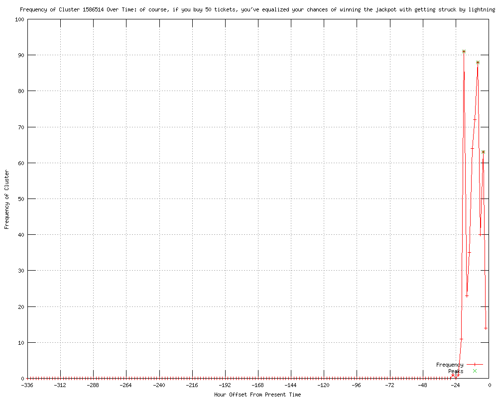 | 50 | you've equalized your chances of winning the jackpot with getting struck by lightning Urls http://miamiherald.com/2012/03/30/2722320/odds-of-winning-record-lottery.html http://wsfa.com/story/17292003/odds-of-winning-record-lottery-jackpot-1-in-176-m http://kold.com/story/17292003/odds-of-winning-record-lottery-jackpot-1-in-176-m http://wboc.com/story/17292003/odds-of-winning-record-lottery-jackpot-1-in-176-m http://wmbfnews.com/story/17292003/odds-of-winning-record-lottery-jackpot-1-in-176-m http://koamtv.com/story/17292003/odds-of-winning-record-lottery-jackpot-1-in-176-m http://kswt.com/story/17292003/odds-of-winning-record-lottery-jackpot-1-in-176-m http://wect.com/story/17292003/odds-of-winning-record-lottery-jackpot-1-in-176-m http://kwqc.com/story/17292003/odds-of-winning-record-lottery-jackpot-1-in-176-m http://ktiv.com/story/17292003/odds-of-winning-record-lottery-jackpot-1-in-176-m http://news9.com/story/17292003/odds-of-winning-record-lottery-jackpot-1-in-176-m http://cbsnews.com/8301-501363_162-57406863/odds-of-winning-record-lottery-jackpot-1-in-176-m/ http://nbc-2.com/story/17292541/odds-of-winning-mega-millions-jackpot-1-in-176m http://kltv.com/story/17292910/odds-of-winning-record-lottery-jackpot-1-in-176-m http://newschannel5.com/story/17293022/mega-millions-jackpot-up-to-world-record-540-million http://kcautv.com/story/17293193/odds-of-winning-record-lottery-jackpot-1-in-176-m http://nebraska.tv/story/17293193/odds-of-winning-record-lottery-jackpot-1-in-176-m http://kare11.com/rss/article/970298/391/Odds-of-winning-record-Mega-Millions-jackpot-1-in-176M http://cnycentral.com/news/story.aspx?id=736350 http://wkyt.com/home/headlines/Odds_of_winning_record_lottery_jackpot_one_in_176_Million_145139065.html http://kvbc.com/content/news/national/story/Millions-hope-to-win-record-lottery/IUAri1B_K0WreYDPu7L3Eg.cspx http://wtvq.com/news/national/story/Millions-hope-to-win-record-lottery/IUAri1B_K0WreYDPu7L3Eg.cspx http://koinlocal6.com/news/national/story/Millions-hope-to-win-record-lottery/IUAri1B_K0WreYDPu7L3Eg.cspx http://koinlocal6.com/news/national/story/Millions-hope-to-win-record-lottery/jq3t_ley8EultF2bKIKVgQ.cspx http://wtva.com/news/national/story/Millions-hope-to-win-record-lottery/IUAri1B_K0WreYDPu7L3Eg.cspx http://wkbn.com/news/national/story/Millions-hope-to-win-record-lottery/IUAri1B_K0WreYDPu7L3Eg.cspx http://wytv.com/news/national/story/Millions-hope-to-win-record-lottery/IUAri1B_K0WreYDPu7L3Eg.cspx http://krnv.com/news/story/Millions-hope-to-win-record-lottery/IUAri1B_K0WreYDPu7L3Eg.cspx http://krnv.com/content/news/national/story/Millions-hope-to-win-record-lottery/IUAri1B_K0WreYDPu7L3Eg.cspx http://khon2.com/news/national/story/Millions-hope-to-win-record-lottery/IUAri1B_K0WreYDPu7L3Eg.cspx http://ksnt.com/news/national/story/Millions-hope-to-win-record-lottery/IUAri1B_K0WreYDPu7L3Eg.cspx http://thecoastalsource.com/news/national/story/Millions-hope-to-win-record-lottery/IUAri1B_K0WreYDPu7L3Eg.cspx http://ksn.com/news/national/story/Millions-hope-to-win-record-lottery/IUAri1B_K0WreYDPu7L3Eg.cspx http://myfoxlubbock.com/news/national/story/Millions-hope-to-win-record-lottery/IUAri1B_K0WreYDPu7L3Eg.cspx http://consumerelectronicsnet.com/articles/viewarticle.jsp?id=1951101 http://broadcastnewsroom.com/articles/viewarticle.jsp?id=1951101 http://wytv.com:80/content/news/local/story/Feeling-Mega-Lucky-Millions-Hope-to-Win-Record/NqYj9IEmnUWiU_v6ApJ7Xg.cspx?rss=3107 http://wkbn.com/content/news/local/story/Feeling-Mega-Lucky-Millions-Hope-to-Win-Record/NqYj9IEmnUWiU_v6ApJ7Xg.cspx http://wkbn.com:80/content/news/local/story/Feeling-Mega-Lucky-Millions-Hope-to-Win-Record/NqYj9IEmnUWiU_v6ApJ7Xg.cspx?rss=3133 http://wytv.com/content/news/local/story/Feeling-Mega-Lucky-Millions-Hope-to-Win-Record/NqYj9IEmnUWiU_v6ApJ7Xg.cspx http://foxyoungstown.com:80/content/news/local/story/Feeling-Mega-Lucky-Millions-Hope-to-Win-Record/NqYj9IEmnUWiU_v6ApJ7Xg.cspx?rss=1731 http://kwtx.com/home/headlines/Mega_Millions__Record_Jackpot_Staggering_Odds_145159725.html http://foxyoungstown.com/content/news/local/story/Feeling-Mega-Lucky-Millions-Hope-to-Win-Record/NqYj9IEmnUWiU_v6ApJ7Xg.cspx http://wytv.com:80/content/news/local/story/UPDATE-Feeling-Mega-Lucky-Jackpot-Spikes-to-640/NqYj9IEmnUWiU_v6ApJ7Xg.cspx?rss=3107 http://wkbn.com:80/content/news/local/story/UPDATE-Feeling-Mega-Lucky-Jackpot-Spikes-to-640/NqYj9IEmnUWiU_v6ApJ7Xg.cspx?rss=3133 http://wkbn.com/content/news/local/story/UPDATE-Feeling-Mega-Lucky-Jackpot-Spikes-to-640/NqYj9IEmnUWiU_v6ApJ7Xg.cspx http://wytv.com/content/news/local/story/UPDATE-Feeling-Mega-Lucky-Jackpot-Spikes-to-640/NqYj9IEmnUWiU_v6ApJ7Xg.cspx http://foxyoungstown.com:80/content/news/local/story/UPDATE-Feeling-Mega-Lucky-Jackpot-Spikes-to-640/NqYj9IEmnUWiU_v6ApJ7Xg.cspx?rss=1731 http://foxyoungstown.com/content/news/local/story/UPDATE-Feeling-Mega-Lucky-Jackpot-Spikes-to-640/NqYj9IEmnUWiU_v6ApJ7Xg.cspx http://newschannel5.com/story/17293022/mega-millions-jackpot-increases-to-640-million |