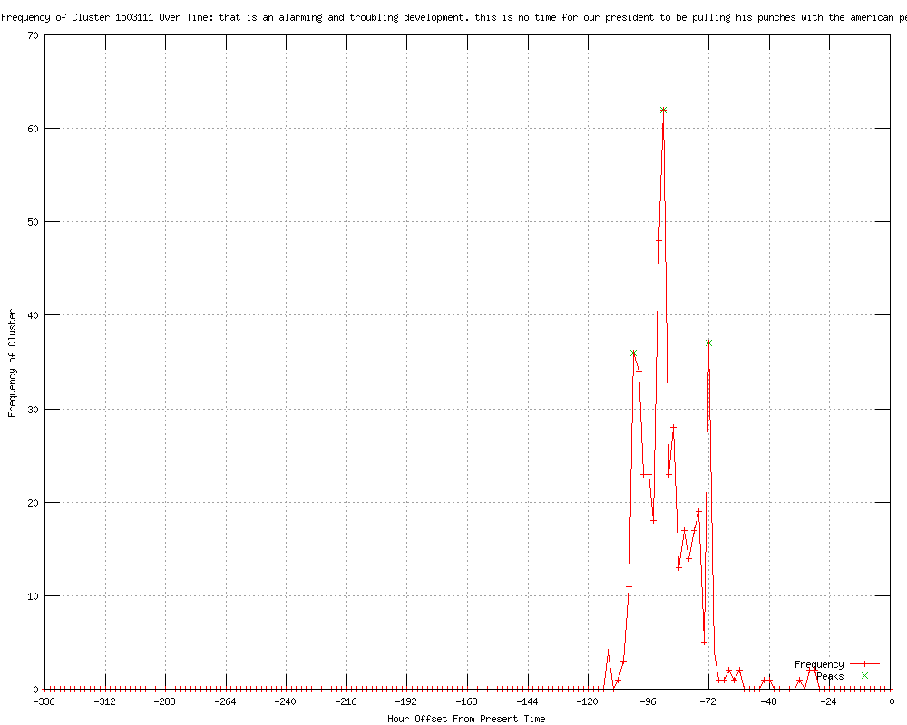 | 13 | alarming and troubling development Urls http://utsandiego.com/news/2012/mar/26/romney-blasts-obama-russia-comments/ http://utsandiego.com/news/2012/mar/26/romney-rips-health-care-law-san-diego/ http://hispanicbusiness.com/2012/3/26/in_microphone_oops_obama_offers_flexibility.htm http://thehindu.com/news/international/article3250038.ece http://news.yahoo.com/few-moments-legendary-sam-donaldson-182613852--abc-news.html http://startribune.com/world/144480715.html http://seattletimes.nwsource.com/html/nationworld/2017852119_romneyrussia28.html?syndication=rss http://tartanmarine.blogspot.com/2012/03/political-digest-for-march-28-2012.html http://sltrib.com/sltrib/world/53803967-68/nuclear-obama-russia-president.html.csp http://nytimes.com/2012/03/28/world/asia/president-obama-talks-missile-defense-at-nuclear-summit-in-south-korea.html?partner=rss&emc=rss http://nationalreview.com/corner/294509/romney-advisers-send-open-letter-obama-demand-candor-foreign-policy-robert-costa http://nti.org/gsn/article/obama-says-political-climate-stymies-prospects-antimissile-deal/ http://ebz.by/info/US/322456802 |