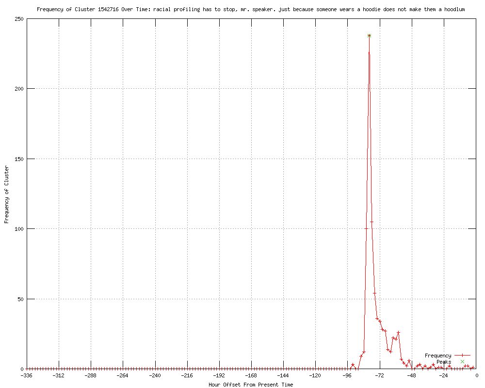| 146 | racial profiling has to stop Urls http://upi.com/Top_News/US/2012/03/28/Rep-Rush-kicked-out-of-chamber-for-hoodie/UPI-37461332982215/ http://content.usatoday.com/communities/onpolitics/post/2012/03/trayvon-martin-hoodie-bobby-rush-/1?csp=34news http://content.usatoday.com/communities/onpolitics/post/2012/03/trayvon-martin-hoodie-bobby-rush-/1?csp=34news&utm_source=feedburner&utm_medium=feed&utm_campaign=Feed:%20usatoday-NewsTopStories%20%28News%20-%20Top%20Stories%29 http://tartanmarine.blogspot.com/2012/03/political-digest-for-march-29-2012.html http://edition.cnn.com/2012/03/28/justice/florida-teen-shooting/index.html?eref=rss_latest http://kbmt12.com/story/17276948/outcry-mounts-answers-few-in-trayvon-martin-shooting http://sistertoldjah.com/archives/2012/03/28/teachable-moment-former-black-panther-bobby-rush/ http://alan.com/2012/03/28/congressman-bobby-rush-kicked-off-house-floor-for-wearing-hoodie/ http://thehill.com/blogs/floor-action/house/218691-rep-bobby-rush-kicked-off-house-floor-for-wearing-hoodie http://freerepublic.com/focus/f-news/2864922/posts http://shavedlongcock.blogspot.com/2012/03/rep-bobby-rush-kicked-off-house-floor.html http://democraticunderground.com/101484429 http://thehill.com/video/house/218691-rep-bobby-rush-kicked-off-house-floor-for-wearing-hoodie http://outsidethebeltway.com/congressman-kicked-off-house-floor-for-wearing-hoodie/ http://freerepublic.com/focus/f-news/2864929/posts http://thegatewaypundit.com/2012/03/idiot-dem-bobby-rush-kicked-off-house-floor-for-wearing-a-hoodie-video/ http://huffingtonpost.com/2012/03/28/trayvon-martin-rep-bobby-rush-house-floor-hoodie_n_1385258.html http://redriverradio.org/post/hoodie-house-leads-shouting-capitol http://kunm.org/post/hoodie-house-leads-shouting-capitol http://kclu.org/npr/?id=149532409 http://godlikeproductions.com/forum1/message1821504/pg1 http://wknofm.org/post/hoodie-house-leads-shouting-capitol http://wkar.org/post/hoodie-house-leads-shouting-capitol http://npr.org/blogs/thetwo-way/2012/03/28/149532409/hoodie-in-the-house-leads-to-reprimand-shouting-in-the-capitol?ft=1&f=103943429 http://wyomingpublicradio.net/post/hoodie-house-leads-shouting-capitol http://freerepublic.com/focus/f-news/2864969/posts http://npr.org/blogs/thetwo-way/2012/03/28/149532409/hoodie-in-the-house-leads-to-reprimand-shouting-in-the-capitol?ft=1&f=1001 http://kunc.org/post/hoodie-house-leads-shouting-capitol http://kios.org/post/hoodie-house-leads-reprimand-shouting-capitol http://wfae.org/wfae/nprnews.cfm?storyId=149532409 http://publicradiodelmarva.net/post/hoodie-house-leads-shouting-capitol http://wuky.org/post/hoodie-house-leads-shouting-capitol http://pba.org/post/hoodie-house-leads-shouting-capitol http://Forum.BlackHairMedia.com/raise-your-voice-for-trayvon-martinletter-pg12_topic335363_post9338626.html#9338626 http://Forum.BlackHairMedia.com/raise-your-voice-for-trayvon-martinletter-pg12_topic335363_post9338619.html#9338619 http://Forum.BlackHairMedia.com/raise-your-voice-for-trayvon-martinletter-pg12_topic335363_post9338607.html#9338607 http://krwg.org/post/hoodie-house-leads-reprimand-shouting-capitol http://upr.org/post/hoodie-house-leads-shouting-capitol http://wncw.org/post/hoodie-house-leads-shouting-capitol http://kosu.org/2012/03/hoodie-in-the-house-leads-to-shouting-in-the-capitol/ http://wesm913.org/post/hoodie-house-leads-shouting-capitol http://wyomingpublicmedia.org/post/hoodie-house-leads-shouting-capitol http://kbia.org/post/hoodie-house-leads-shouting-capitol http://newmediablog.com/2012/03/dem-kicked-off-house-floor-for-hoodie-in-trayvon-martin-protest/ http://rss.cnn.com/~r/rss/cnn_topstories/~3/pAxn0F9yk8c/index.html http://gpb.org/news/2012/03/28/hoodie-in-the-house-leads-to-shouting-in-the-capitol http://wdsu.com/politics/30786017/detail.html http://wcti12.com/politics/30786017/detail.html http://kalw.org/post/hoodie-house-leads-shouting-capitol http://ktvz.com/politics/30786017/detail.html http://justnews.com/news/politics/Rep-wearing-hoodie-removed-from-House-floor/-/1895020/9739194/-/12i2sl1/-/index.html http://kjct8.com/politics/30786017/detail.html http://kesq.com/politics/30786017/detail.html http://cnn.com/2012/03/28/politics/congressman-hoodie/index.html?eref=rss_topstories http://Forum.BlackHairMedia.com/raise-your-voice-for-trayvon-martinletter-pg12_topic335363_post9338653.html#9338653 http://Forum.BlackHairMedia.com/raise-your-voice-for-trayvon-martinletter-pg12_topic335363_post9338658.html#9338658 http://Forum.BlackHairMedia.com/raise-your-voice-for-trayvon-martinletter-pg12_topic335363_post9338654.html#9338654 http://Forum.BlackHairMedia.com/raise-your-voice-for-trayvon-martinletter-pg12_topic335363_post9338655.html#9338655 http://clickorlando.com/news/politics/Rep-wearing-hoodie-removed-from-House-floor/-/1637100/9739194/-/r7a7qf/-/index.html http://nbcmontana.com/politics/30786017/detail.html http://10news.com/politics/30786017/detail.html http://politics.blogs.foxnews.com/2012/03/28/bobby-rush-dons-hoodie-house-floor http://localnews8.com/politics/30786017/detail.html http://cnn.com/2012/03/28/politics/congressman-hoodie/index.html?eref=rss_latest http://wcyb.com/nationalnews/30786017/detail.html http://kvia.com/politics/30786017/detail.html http://cnn.com/2012/03/28/politics/congressman-hoodie/index.html http://npr.org/blogs/thetwo-way/2012/03/28/149532409/hoodie-in-the-house-leads-to-reprimand-shouting-in-the-capitol?ft=1&f=1014 http://politics.blogs.foxnews.com/2012/03/28/bobby-rush-dons-hoodie-house-floor/ http://dailycaller.com/2012/03/28/congressman-ejected-from-house-floor-for-wearing-hoodie/ http://ibloga.blogspot.com/2012/03/fox-rep.html http://outsidethebeltway.com/congressman-kicked-off-house-floor-for-wearing-hoodie/?utm_source=feedburner&utm_medium=feed&utm_campaign=Feed%3A+OTB+%28Outside+The+Beltway+%7C+OTB%29 http://scribblerg.blogspot.com/2012/03/your-congress-at-work.html http://cnn.com/2012/03/28/politics/congressman-hoodie/index.html?hpt=hp_c1 http://pr