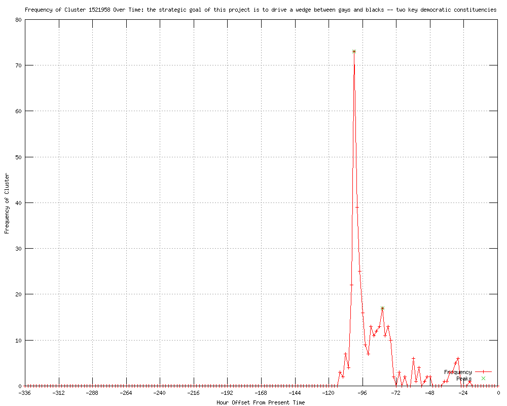 | 127 | the strategic goal of this project is to drive a wedge between gays and blacks - two key democratic constituencies Urls http://ksla.com/story/17267776/gay-marriage-foes-sought-to-split-gays-and-blacks http://pinknews.co.uk/2012/03/27/secret-documents-reveal-anti-gay-marriage-group-planned-to-divide-gay-and-black-voters/ http://salon.com/2012/03/27/noms_gross_race_baiting_tactics/ http://miamiherald.com/2012/03/27/2717177/gay-marriage-foes-sought-to-split.html http://sunherald.com/2012/03/27/3845878/gay-marriage-foes-sought-to-split.html http://koamtv.com/story/17267776/gay-marriage-foes-sought-to-split-gays-and-blacks http://kansascity.com/2012/03/27/3517204/gay-marriage-foes-sought-to-split.html#storylink=rss http://wbtv.com/story/17267776/gay-marriage-foes-sought-to-split-gays-and-blacks http://newson6.com/story/17267776/gay-marriage-foes-sought-to-split-gays-and-blacks http://wrcbtv.com/story/17267776/gay-marriage-foes-sought-to-split-gays-and-blacks http://wmbfnews.com/story/17267776/gay-marriage-foes-sought-to-split-gays-and-blacks http://ktiv.com/story/17267776/gay-marriage-foes-sought-to-split-gays-and-blacks http://ktvn.com/story/17267776/gay-marriage-foes-sought-to-split-gays-and-blacks http://kwqc.com/story/17267776/gay-marriage-foes-sought-to-split-gays-and-blacks http://fox28.com/story/17267776/gay-marriage-foes-sought-to-split-gays-and-blacks http://wandtv.com/story/17267776/gay-marriage-foes-sought-to-split-gays-and-blacks http://wgem.com/story/17267776/gay-marriage-foes-sought-to-split-gays-and-blacks http://wthr.com/story/17267776/gay-marriage-foes-sought-to-split-gays-and-blacks http://kentucky.com/2012/03/27/2128443/gay-marriage-foes-sought-to-split.html#storylink=rss http://wect.com/story/17267776/gay-marriage-foes-sought-to-split-gays-and-blacks http://wbay.com/story/17267776/gay-marriage-foes-sought-to-split-gays-and-blacks http://woi-tv.com/story/17267776/gay-marriage-foes-sought-to-split-gays-and-blacks http://kdwn.com/index.php?page=2§ion=BREAKING_NEWS&title=Gay-marriage_foes_sought_to_split_gays_and_blacks http://newsvine.com/_news/2012/03/27/10889855-gay-marriage-foes-sought-to-split-gays-and-blacks http://komonews.com/news/national/Memos-Gay-marriage-foes-sought-to-split-gays-and-blacks-144427125.html http://wtol.com/story/17267776/gay-marriage-foes-sought-to-split-gays-and-blacks http://news9.com/story/17267776/gay-marriage-foes-sought-to-split-gays-and-blacks http://ajc.com/news/nation-world/gay-marriage-foes-sought-1399781.html?cxtype=rss_news_82111 http://wrex.com/story/17267776/gay-marriage-foes-sought-to-split-gays-and-blacks http://kswo.com/story/17267776/gay-marriage-foes-sought-to-split-gays-and-blacks http://utsandiego.com/news/2012/mar/27/gay-marriage-foes-sought-to-split-gays-and-blacks/ http://kcbd.com/story/17267776/gay-marriage-foes-sought-to-split-gays-and-blacks http://kcautv.com/story/17267776/gay-marriage-foes-sought-to-split-gays-and-blacks http://wkrn.com/story/17267776/gay-marriage-foes-sought-to-split-gays-and-blacks http://wlox.com/story/17267776/gay-marriage-foes-sought-to-split-gays-and-blacks http://wten.com/story/17267776/gay-marriage-foes-sought-to-split-gays-and-blacks http://khnl.com/story/17267776/gay-marriage-foes-sought-to-split-gays-and-blacks http://fox11az.com/story/17267776/gay-marriage-foes-sought-to-split-gays-and-blacks http://fox41.com/story/17267776/gay-marriage-foes-sought-to-split-gays-and-blacks http://wric.com/story/17267776/gay-marriage-foes-sought-to-split-gays-and-blacks http://kwes.com/story/17267776/gay-marriage-foes-sought-to-split-gays-and-blacks http://bellinghamherald.com/2012/03/27/2456085/gay-marriage-foes-sought-to-split.html http://bellinghamherald.com/2012/03/27/2456062/gay-marriage-foes-sought-to-split.html http://kcby.com/news/national/Memos-Gay-marriage-foes-sought-to-split-gays-and-blacks-144427125.html http://sacbee.com/2012/03/27/4370507/gay-marriage-foes-sought-to-split.html#mi_rss=Wire%20National%20News http://seattlepi.com/news/article/Gay-marriage-foes-sought-to-split-gays-and-blacks-3438549.php http://artesianews.com/ap-news/united-states-ap-news/gay-marriage-foes-sought-to-split-gays-and-blacks/ http://wral.com/lifestyles/family/story/10912744/ http://abc12.com/story/17267776/gay-marriage-foes-sought-to-split-gays-and-blacks http://kmph.com/story/17267776/gay-marriage-foes-sought-to-split-gays-and-blacks http://kusi.com/story/17267776/gay-marriage-foes-sought-to-split-gays-and-blacks http://kswt.com/story/17267776/gay-marriage-foes-sought-to-split-gays-and-blacks http://seattletimes.nwsource.com/html/nationworld/2017849414_apusgaymarriage.html?syndication=rss http://seattletimes.nwsource.com/html/localnews/2017849440_apusgaymarriage1stldwritethru.html?syndication=rss http://mail.com/news/us/1162696-gay-marriage-foes-sought-to-split-gays-blacks.html http://katu.com/news/national/144427125.html http://kdwn.com/index.php?page=2§ion=NATIONAL_NEWS&title=Gay-marriage_foes_sought_to_split_gays_and_blacks http://sfgate.com/cgi-bin/article.cgi?f=/n/a/2012/03/27/national/a122559D79.DTL&feed=rss.news_nation http://thedailyrecord.com/2012/03/27/gay-marriage-foes-sought-to-split-gays-and-blacks/ http://kxxv.com/story/17267776/gay-marriage-foes-sought-to-split-gays-and-blacks http://abcnews.go.com/US/wireStory/gay-marriage-foes-sought-split-gays-blacks-16014071 http://wlbt.com/story/17267776/gay-marriage-foes-sought-to-split-gays-and-blacks http://waff.com/story/17267776/gay-marriage-foes-sought-to-split-gays-and-blacks http://wsfa.com/story/17267776/gay-marriage-foes-sought-to-split-gays-and-blacks http://bnd.com/2012/03/27/2117590/gay-marriage-foes-sought-to-split.html http://live5news.com/story/17267776/gay-marriage-foes-sought-to-split-gays-and-blacks http://midwestdemocracy.com/articles/gay-marriage-foes-sought-split-gays-and-blacks/#storylink=rss http://kold.com/story/17267776/gay-marriage-foes-sought-to-split-gays-and-blacks http://news.yahoo.com/gay-marriage-foes-sought-split-gays-blac