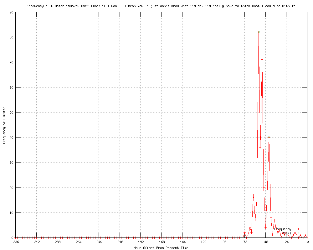 | 39 | if i won -- i mean wow! i just don't know what i'd do. i'd really have to think what i could do with it Urls http://theithacajournal.com/article/20120331/NEWS01/203310314/Americans-bet-nearly-1-5B-win-Mega-Millions-record-jackpot?odyssey=nav|head http://theithacajournal.com/article/20120331/NEWS01/203310314/Americans-bet-nearly-1-5B-win-Mega-Millions-record-jackpot?odyssey=tab|topnews|text|FRONTPAGE http://news-leader.com/usatoday/article/38922901?odyssey=mod|newswell|text|FRONTPAGE|p http://ktvu.com/news/news/local/mega-lottery-fever-sweeps-bay-area/nLgxM/ http://the-review.com/latest%20headlines/2012/03/30/mega-long-odds-for-winning-record-jackpot-1333123603 http://ebz.by/info/US/323066999 http://whas11.com/community/blogs/news-blog/145175975.html http://theeagle.com/nation/Mega-mania-as-jackpot-increases-to--640-million--7070735 http://mercurynews.com/nation-world/ci_20291285/its-mega-mania-lottery-fever-sweeps-nation?source=rss http://the-review.com/latest%20headlines/2012/03/30/mega-mania-as-jackpot-increases-to-640-million http://santafenewmexican.com/localnews/Mega-Millions-jackpot-increases-to--640-million http://myfoxdfw.com/dpp/news/mega-millions-jackpot-increases-to-%24640m-dpgapx-20120330-fc1333135276773 http://nola.com/louisiana-lottery/index.ssf/2012/03/mega_millions_jackpot_prompts.html http://standard.net/node/125480 http://standard.net/stories/2012/03/30/americans-bet-nearly-15b-win-record-jackpot http://contracostatimes.com/nation-world/ci_20291285/its-mega-mania-lottery-fever-sweeps-nation?source=rss http://abclocal.go.com/ktrk/story?section=news/national_world&id=8602184&rss=rss-ktrk-article-8602184 http://krem.com/home/145265435.html http://cbsnews.com/8301-201_162-57407405/winning-mega-millions-numbers-announced/ http://feeds.cbsnews.com/~r/CBSNewsMain/~3/RufgzV8StYQ/ http://wibw.com/home/headlines/Number_Drawn_for_Worlds_Largest_Lottery_Jackpot_145268155.html http://wibw.com/nationalnews/headlines/Number_Drawn_for_Worlds_Largest_Lottery_Jackpot_145268155.html http://boston.com/news/nation/articles/2012/03/30/odds_of_winning_record_lottery_jackpot_1_in_176_m/?rss_id=Top+Stories http://theithacajournal.com/article/20120331/NEWS01/203310314/1124/ http://stargazette.com/article/20120331/NEWS01/203310312/Americans-bet-nearly-1-5B-win-Mega-Millions-record-jackpot?odyssey=tab|topnews|img|FRONTPAGE http://stargazette.com/article/20120331/NEWS01/203310312/Americans-bet-nearly-1-5B-win-Mega-Millions-record-jackpot?odyssey=tab|topnews|text|FRONTPAGE http://stargazette.com/article/20120331/NEWS01/203310312/Americans-bet-nearly-1-5B-win-Mega-Millions-record-jackpot?odyssey=nav|head http://wibw.com/home/headlines/145268155.html http://stargazette.com/article/20120331/NEWS01/203310312/Americans-bet-nearly-1-5B-to-win-Mega-Millions-record-jackpot?odyssey=tab|mostpopular|img|FRONTPAGE http://stargazette.com/article/20120331/NEWS01/203310312/Americans-bet-nearly-1-5B-to-win-Mega-Millions-record-jackpot?odyssey=tab|mostpopular|text|FRONTPAGE http://theithacajournal.com/article/20120331/NEWS01/203310314/Americans-bet-nearly-1-5B-to-win-Mega-Millions-record-jackpot?odyssey=tab|mostpopular|img|FRONTPAGE http://theithacajournal.com/article/20120331/NEWS01/203310314/Americans-bet-nearly-1-5B-to-win-Mega-Millions-record-jackpot?odyssey=tab|mostpopular|text|FRONTPAGE http://newarkadvocate.com/article/20120331/NEWS01/203310304/Players-bet-close-1-5B-win-jackpot?odyssey=tab|topnews|text|Frontpage http://NewarkAdvocate.com/article/20120331/NEWS01/203310304/Players-bet-close-to-1-5B-to-win-jackpot?odyssey=tab|mostpopular|text|FRONTPAGE http://newarkadvocate.com/article/20120331/NEWS01/203310304/Players-bet-close-1-5B-win-jackpot http://newarkadvocate.com/article/20120331/NEWS01/203310304/Players-bet-close-1-5B-win-jackpot?odyssey=mod|newswell|text|Frontpage|s http://stargazette.com/article/20120331/NEWS01/203310312/Americans-bet-nearly-1-5B-win-Mega-Millions-record-jackpot?odyssey=mod|newswell|img|FRONTPAGE|p http://stargazette.com/article/20120331/NEWS01/203310312/Americans-bet-nearly-1-5B-win-Mega-Millions-record-jackpot?odyssey=mod|newswell|text|FRONTPAGE|p http://stargazette.com/article/20120331/NEWS01/203310312/Americans-bet-nearly-1-5B-win-Mega-Millions-record-jackpot?odyssey=mod|newswell|text|FRONTPAGE|s |