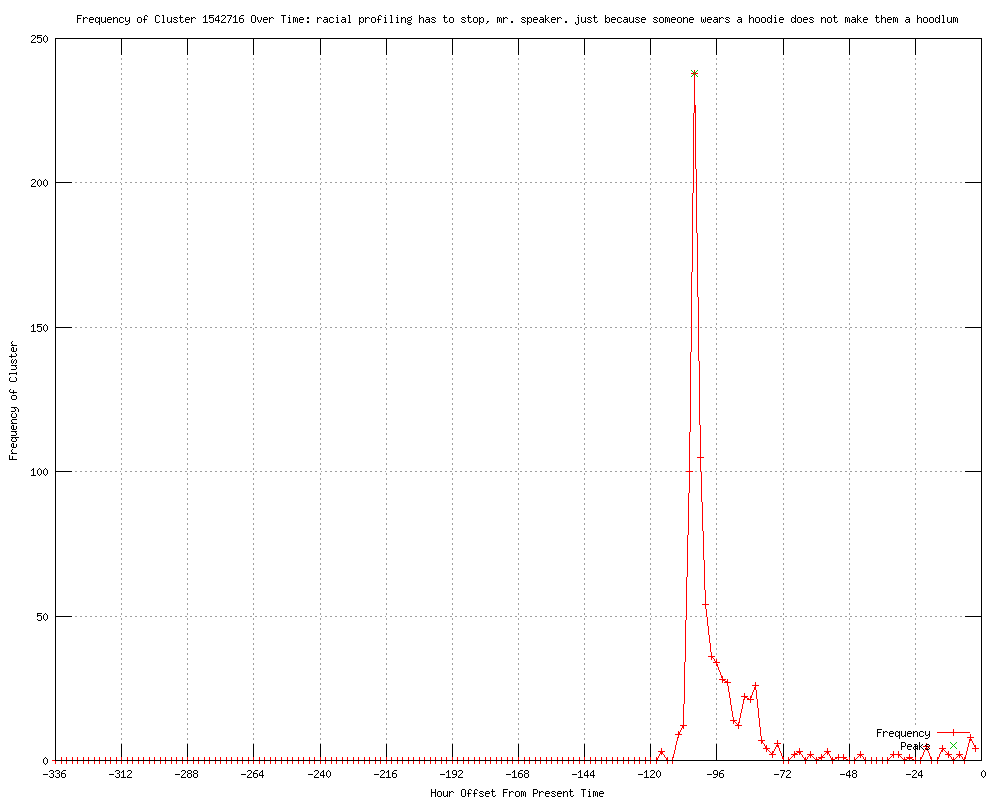 | 160 | racial profiling has to stop Urls http://upi.com/Top_News/US/2012/03/28/Rep-Rush-kicked-out-of-chamber-for-hoodie/UPI-37461332982215/ http://content.usatoday.com/communities/onpolitics/post/2012/03/trayvon-martin-hoodie-bobby-rush-/1?csp=34news http://content.usatoday.com/communities/onpolitics/post/2012/03/trayvon-martin-hoodie-bobby-rush-/1?csp=34news&utm_source=feedburner&utm_medium=feed&utm_campaign=Feed:%20usatoday-NewsTopStories%20%28News%20-%20Top%20Stories%29 http://tartanmarine.blogspot.com/2012/03/political-digest-for-march-29-2012.html http://edition.cnn.com/2012/03/28/justice/florida-teen-shooting/index.html?eref=rss_latest http://kbmt12.com/story/17276948/outcry-mounts-answers-few-in-trayvon-martin-shooting http://sistertoldjah.com/archives/2012/03/28/teachable-moment-former-black-panther-bobby-rush/ http://alan.com/2012/03/28/congressman-bobby-rush-kicked-off-house-floor-for-wearing-hoodie/ http://thehill.com/blogs/floor-action/house/218691-rep-bobby-rush-kicked-off-house-floor-for-wearing-hoodie http://freerepublic.com/focus/f-news/2864922/posts http://shavedlongcock.blogspot.com/2012/03/rep-bobby-rush-kicked-off-house-floor.html http://democraticunderground.com/101484429 http://thehill.com/video/house/218691-rep-bobby-rush-kicked-off-house-floor-for-wearing-hoodie http://outsidethebeltway.com/congressman-kicked-off-house-floor-for-wearing-hoodie/ http://freerepublic.com/focus/f-news/2864929/posts http://thegatewaypundit.com/2012/03/idiot-dem-bobby-rush-kicked-off-house-floor-for-wearing-a-hoodie-video/ http://huffingtonpost.com/2012/03/28/trayvon-martin-rep-bobby-rush-house-floor-hoodie_n_1385258.html http://redriverradio.org/post/hoodie-house-leads-shouting-capitol http://kunm.org/post/hoodie-house-leads-shouting-capitol http://kclu.org/npr/?id=149532409 http://godlikeproductions.com/forum1/message1821504/pg1 http://wknofm.org/post/hoodie-house-leads-shouting-capitol http://wkar.org/post/hoodie-house-leads-shouting-capitol http://npr.org/blogs/thetwo-way/2012/03/28/149532409/hoodie-in-the-house-leads-to-reprimand-shouting-in-the-capitol?ft=1&f=103943429 http://wyomingpublicradio.net/post/hoodie-house-leads-shouting-capitol http://freerepublic.com/focus/f-news/2864969/posts http://npr.org/blogs/thetwo-way/2012/03/28/149532409/hoodie-in-the-house-leads-to-reprimand-shouting-in-the-capitol?ft=1&f=1001 http://kunc.org/post/hoodie-house-leads-shouting-capitol http://kios.org/post/hoodie-house-leads-reprimand-shouting-capitol http://wfae.org/wfae/nprnews.cfm?storyId=149532409 http://publicradiodelmarva.net/post/hoodie-house-leads-shouting-capitol http://wuky.org/post/hoodie-house-leads-shouting-capitol http://pba.org/post/hoodie-house-leads-shouting-capitol http://Forum.BlackHairMedia.com/raise-your-voice-for-trayvon-martinletter-pg12_topic335363_post9338626.html#9338626 http://Forum.BlackHairMedia.com/raise-your-voice-for-trayvon-martinletter-pg12_topic335363_post9338619.html#9338619 http://Forum.BlackHairMedia.com/raise-your-voice-for-trayvon-martinletter-pg12_topic335363_post9338607.html#9338607 http://krwg.org/post/hoodie-house-leads-reprimand-shouting-capitol http://upr.org/post/hoodie-house-leads-shouting-capitol http://wncw.org/post/hoodie-house-leads-shouting-capitol http://kosu.org/2012/03/hoodie-in-the-house-leads-to-shouting-in-the-capitol/ http://wesm913.org/post/hoodie-house-leads-shouting-capitol http://wyomingpublicmedia.org/post/hoodie-house-leads-shouting-capitol http://kbia.org/post/hoodie-house-leads-shouting-capitol http://newmediablog.com/2012/03/dem-kicked-off-house-floor-for-hoodie-in-trayvon-martin-protest/ http://rss.cnn.com/~r/rss/cnn_topstories/~3/pAxn0F9yk8c/index.html http://gpb.org/news/2012/03/28/hoodie-in-the-house-leads-to-shouting-in-the-capitol http://wdsu.com/politics/30786017/detail.html http://wcti12.com/politics/30786017/detail.html http://kalw.org/post/hoodie-house-leads-shouting-capitol http://ktvz.com/politics/30786017/detail.html http://justnews.com/news/politics/Rep-wearing-hoodie-removed-from-House-floor/-/1895020/9739194/-/12i2sl1/-/index.html http://kjct8.com/politics/30786017/detail.html http://kesq.com/politics/30786017/detail.html http://cnn.com/2012/03/28/politics/congressman-hoodie/index.html?eref=rss_topstories http://Forum.BlackHairMedia.com/raise-your-voice-for-trayvon-martinletter-pg12_topic335363_post9338653.html#9338653 http://Forum.BlackHairMedia.com/raise-your-voice-for-trayvon-martinletter-pg12_topic335363_post9338658.html#9338658 http://Forum.BlackHairMedia.com/raise-your-voice-for-trayvon-martinletter-pg12_topic335363_post9338654.html#9338654 http://Forum.BlackHairMedia.com/raise-your-voice-for-trayvon-martinletter-pg12_topic335363_post9338655.html#9338655 http://clickorlando.com/news/politics/Rep-wearing-hoodie-removed-from-House-floor/-/1637100/9739194/-/r7a7qf/-/index.html http://nbcmontana.com/politics/30786017/detail.html http://10news.com/politics/30786017/detail.html http://politics.blogs.foxnews.com/2012/03/28/bobby-rush-dons-hoodie-house-floor http://localnews8.com/politics/30786017/detail.html http://cnn.com/2012/03/28/politics/congressman-hoodie/index.html?eref=rss_latest http://wcyb.com/nationalnews/30786017/detail.html http://kvia.com/politics/30786017/detail.html http://cnn.com/2012/03/28/politics/congressman-hoodie/index.html http://npr.org/blogs/thetwo-way/2012/03/28/149532409/hoodie-in-the-house-leads-to-reprimand-shouting-in-the-capitol?ft=1&f=1014 http://politics.blogs.foxnews.com/2012/03/28/bobby-rush-dons-hoodie-house-floor/ http://dailycaller.com/2012/03/28/congressman-ejected-from-house-floor-for-wearing-hoodie/ http://ibloga.blogspot.com/2012/03/fox-rep.html http://outsidethebeltway.com/congressman-kicked-off-house-floor-for-wearing-hoodie/?utm_source=feedburner&utm_medium=feed&utm_campaign=Feed%3A+OTB+%28Outside+The+Beltway+%7C+OTB%29 http://scribblerg.blogspot.com/2012/03/your-congress-at-work.html http://cnn.com/2012/03/28/politics/congressman-hoodie/index.html?hpt=hp_c1 http://pr