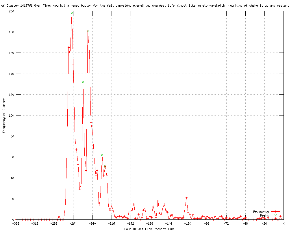 | 61 | i think you hit a reset button for the fall campaign Urls http://newsmax.com/Newsfront/001513NODE-001565NODE-001575NODE-2500/2012/03/21/id/433419 http://nytimes.com/2012/03/22/us/politics/jeb-bush-endorses-romney-aide-makes-etch-a-sketch-gaffe.html?partner=rss&emc=rss http://post-gazette.com/stories/news/us/romneys-day-to-relish-is-marred-by-aides-gaffe-627486/ http://rawstory.com/rs/2012/03/21/adviser-romney-will-change-positions-like-an-etch-a-sketch-after-primary/ http://crooksandliars.com/david/adviser-romney-will-change-positions-etch-sk http://leftword.blogdig.net/archives/articles/March2012/21/Adviser__Romney_Will_Change_Positions__Like_an_Etch_A_Sketch__After_Primary.html http://dailycaller.com/2012/03/21/romney-aide-causes-stir-with-etch-a-sketch-comment/ http://breitbart.com/Big-Government/2012/03/21/Romney-Etch-A-Sketch http://loyalopposition.blogs.nytimes.com/2012/03/21/romney-to-lincoln-you-can-fool-all-the-people/?partner=rss&emc=rss http://dailycaller.com/2012/03/21/etch-a-sketch-makers-hoping-to-make-money-off-media-attention/ http://mercurynews.com/presidentelect/ci_20226948/gaffe-by-romney-aide-overshadows-big-endorsement?source=rss http://post-gazette.com/stories/news/politics-national/romney-feels-momentum-carrying-him-to-nomination-627396/ http://seattletimes.nwsource.com/html/nationworld/2017810643_campaign22.html?syndication=rss http://seattletimes.nwsource.com/html/nationworld/2017810643_campaign22.html http://us.rd.yahoo.com/finance/external/bloomberg/rss/SIG=13510n4v4/*http://www.bloomberg.com/news/2012-03-22/romney-fights-etch-a-sketch-image-in-bid-to-seal-race.html?cmpid=yhoo http://finance.yahoo.com/news/romney-fights-etch-sketch-image-040500568.html http://us.rd.yahoo.com/finance/news/rss/story/*http://us.rd.yahoo.com/finance/news/topfinstories/*http://finance.yahoo.com/news/romney-fights-etch-sketch-image-040500568.html?l=1 http://newsmax.com/Newsfront/Romney-Etch-Sketch-Republican/2012/03/22/id/433577 http://nydailynews.com/news/election-2012/mitt-romney-wife-ann-damage-control-mode-eric-fehrnstrom-etch-a-sketch-gaffe-article-1.1048782?localLinksEnabled=false http://vcstar.com/news/2012/mar/22/milbank-romney-advisers-game-changer/?partner=RSS http://totalcapitol.com/?news_id=5006293&redirect=http://www.vcstar.com/news/2012/mar/22/milbank-romney-advisers-game-changer/?partner=RSS http://theblogismine.com/2012/03/21/mitt-romney-george-w-bush-and-henry-paulson-saved-country-from-depression/ http://cnbc.com//id/46818657 http://thinkprogress.org/romm/2012/03/22/449724/etch-a-sketch-in-2006-romney-touted-high-gasoline-prices-to-discourage-consumption/ http://patrickhenrypress.info/node/597419 http://rawstory.com/rs/2012/03/22/etch-a-sketch-companys-stock-up-over-240/ http://facepunch.com/threads/1172180?goto=newpost http://freerepublic.com/focus/f-news/2862233/posts http://entertainment.wagerweb.com/politics/etch-a-sketch-comment-already-hurting-romney-40874.html http://pentaxforums.com/forums/political-religious-discussion/179821-mitt-etch-sketch-man.html http://nationalinterest.org/blog/jacob-heilbrunn/mitt-romney-sketchy-candidate-6676 http://usnews.com/blogs/Ken-Walshs-Washington/2012/3/22/romney-rivals-say-positions-will-follow-him-into-general-election?s_cid=rss:Ken-Walshs-Washington:romney-rivals-say-positions-will-follow-him-into-general-election http://blogs.villagevoice.com/runninscared/2012/03/etch_a_sketch_president.php http://commonsense-gater.blogspot.com/2012/03/willard-mitt-romney-fox-liar-liar-pants.html http://iconicmidwest.blogspot.com/2012/03/political-science-gaffe-says-new-york.html http://money.usnews.com/blogs/Ken-Walshs-Washington/2012/3/22/romney-rivals-say-positions-will-follow-him-into-general-election?s_cid=rss:Ken-Walshs-Washington:romney-rivals-say-positions-will-follow-him-into-general-election http://fr-online.de/weblog--countdown-fuer-obama/weblog-zur-us-wahl-2012-viel-laerm-um-die-zaubertafel,11777598,11955572.html http://fr-online.de/weblog--countdown-fuer-obama/weblog-zur-us-wahl-2012--22---viel-laerm-um-die-zaubertafel,11777598,11955572.html http://northjersey.com/r?19=961&43=516422&44=143870516&32=4497&7=309037&40=http%3A%2F%2Fwww.northjersey.com%2Fnews%2Fopinions%2Fmilbank_032312.html http://berliner-zeitung.de/weblog--showdown-fuer-obama/weblog-zur-us-wahl-2012--22---viel-laerm-um-die-zaubertafel,11832534,11955572.html http://patriotpost.us/edition/2012/03/23/digest/ http://courier-journal.com/article/20120323/OPINION04/303230021/Dana-Milbank-Etch-Sketch-gaffe-torments-Mitt-Romney?odyssey=nav|head http://courier-journal.com/article/20120323/OPINION04/303230021/Dana-Milbank-Etch-Sketch-gaffe-torments-Mitt-Romney?odyssey=mod|newswell|text|Home|s http://courier-journal.com/article/20120323/OPINION04/303230021/Dana-Milbank-Etch-A-Sketch-gaffe-torments-Mitt-Romney?odyssey=tab|mostpopular|text|FRONTPAGE http://courier-journal.com/article/20120323/OPINION04/303230021/Dana-Milbank-Etch-A-Sketch-gaffe-torments-Mitt-Romney?odyssey=tab|mostpopular|img|FRONTPAGE http://washingtonpost.com/blogs/post-partisan/post/fridays-p-op-quiz-etch-a-sketch-edition/2011/03/04/gIQAjFnMUS_blog.html?wprss=post-partisan http://thinkprogress.org/romm/2012/03/23/450555/romney-etch-a-sketch-eight-reasons-the-gaffe-will-endure/ http://patrickhenrypress.info/node/598544 http://sierraactivist.org/2012/03/23/romney-can-create-jobs-etch-a-sketch-sales-jump-1500-eight-reasons-the-gaffe-will-endure/?utm_source=rss&utm_medium=rss&utm_campaign=romney-can-create-jobs-etch-a-sketch-sales-jump-1500-eight-reasons-the-gaffe-will-endure http://huffingtonpost.com/joseph-romm/eight-reasons-the-etch-a-_b_1375697.html http://blogotariat.com/node/304027 http://facebookapplicationdevelopment.org/uncategorized/joseph-romm-eight-reasons-the-etch-a-sketch-gaffe-will-endure/ http://bangordailynews.com/2012/03/23/opinion/romneys-etch-a-sketch-gaffe/ http://FreedomsPhoenix.com/Find-Freedom.htm?At=108064 http://allword-news.co.uk/2012/03/24/eight-reasons-the-etchasketch-gaff