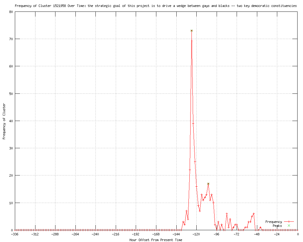 | 127 | the strategic goal of this project is to drive a wedge between gays and blacks - two key democratic constituencies Urls http://ksla.com/story/17267776/gay-marriage-foes-sought-to-split-gays-and-blacks http://pinknews.co.uk/2012/03/27/secret-documents-reveal-anti-gay-marriage-group-planned-to-divide-gay-and-black-voters/ http://salon.com/2012/03/27/noms_gross_race_baiting_tactics/ http://miamiherald.com/2012/03/27/2717177/gay-marriage-foes-sought-to-split.html http://sunherald.com/2012/03/27/3845878/gay-marriage-foes-sought-to-split.html http://koamtv.com/story/17267776/gay-marriage-foes-sought-to-split-gays-and-blacks http://kansascity.com/2012/03/27/3517204/gay-marriage-foes-sought-to-split.html#storylink=rss http://wbtv.com/story/17267776/gay-marriage-foes-sought-to-split-gays-and-blacks http://newson6.com/story/17267776/gay-marriage-foes-sought-to-split-gays-and-blacks http://wrcbtv.com/story/17267776/gay-marriage-foes-sought-to-split-gays-and-blacks http://wmbfnews.com/story/17267776/gay-marriage-foes-sought-to-split-gays-and-blacks http://ktiv.com/story/17267776/gay-marriage-foes-sought-to-split-gays-and-blacks http://ktvn.com/story/17267776/gay-marriage-foes-sought-to-split-gays-and-blacks http://kwqc.com/story/17267776/gay-marriage-foes-sought-to-split-gays-and-blacks http://fox28.com/story/17267776/gay-marriage-foes-sought-to-split-gays-and-blacks http://wandtv.com/story/17267776/gay-marriage-foes-sought-to-split-gays-and-blacks http://wgem.com/story/17267776/gay-marriage-foes-sought-to-split-gays-and-blacks http://wthr.com/story/17267776/gay-marriage-foes-sought-to-split-gays-and-blacks http://kentucky.com/2012/03/27/2128443/gay-marriage-foes-sought-to-split.html#storylink=rss http://wect.com/story/17267776/gay-marriage-foes-sought-to-split-gays-and-blacks http://wbay.com/story/17267776/gay-marriage-foes-sought-to-split-gays-and-blacks http://woi-tv.com/story/17267776/gay-marriage-foes-sought-to-split-gays-and-blacks http://kdwn.com/index.php?page=2§ion=BREAKING_NEWS&title=Gay-marriage_foes_sought_to_split_gays_and_blacks http://newsvine.com/_news/2012/03/27/10889855-gay-marriage-foes-sought-to-split-gays-and-blacks http://komonews.com/news/national/Memos-Gay-marriage-foes-sought-to-split-gays-and-blacks-144427125.html http://wtol.com/story/17267776/gay-marriage-foes-sought-to-split-gays-and-blacks http://news9.com/story/17267776/gay-marriage-foes-sought-to-split-gays-and-blacks http://ajc.com/news/nation-world/gay-marriage-foes-sought-1399781.html?cxtype=rss_news_82111 http://wrex.com/story/17267776/gay-marriage-foes-sought-to-split-gays-and-blacks http://kswo.com/story/17267776/gay-marriage-foes-sought-to-split-gays-and-blacks http://utsandiego.com/news/2012/mar/27/gay-marriage-foes-sought-to-split-gays-and-blacks/ http://kcbd.com/story/17267776/gay-marriage-foes-sought-to-split-gays-and-blacks http://kcautv.com/story/17267776/gay-marriage-foes-sought-to-split-gays-and-blacks http://wkrn.com/story/17267776/gay-marriage-foes-sought-to-split-gays-and-blacks http://wlox.com/story/17267776/gay-marriage-foes-sought-to-split-gays-and-blacks http://wten.com/story/17267776/gay-marriage-foes-sought-to-split-gays-and-blacks http://khnl.com/story/17267776/gay-marriage-foes-sought-to-split-gays-and-blacks http://fox11az.com/story/17267776/gay-marriage-foes-sought-to-split-gays-and-blacks http://fox41.com/story/17267776/gay-marriage-foes-sought-to-split-gays-and-blacks http://wric.com/story/17267776/gay-marriage-foes-sought-to-split-gays-and-blacks http://kwes.com/story/17267776/gay-marriage-foes-sought-to-split-gays-and-blacks http://bellinghamherald.com/2012/03/27/2456085/gay-marriage-foes-sought-to-split.html http://bellinghamherald.com/2012/03/27/2456062/gay-marriage-foes-sought-to-split.html http://kcby.com/news/national/Memos-Gay-marriage-foes-sought-to-split-gays-and-blacks-144427125.html http://sacbee.com/2012/03/27/4370507/gay-marriage-foes-sought-to-split.html#mi_rss=Wire%20National%20News http://seattlepi.com/news/article/Gay-marriage-foes-sought-to-split-gays-and-blacks-3438549.php http://artesianews.com/ap-news/united-states-ap-news/gay-marriage-foes-sought-to-split-gays-and-blacks/ http://wral.com/lifestyles/family/story/10912744/ http://abc12.com/story/17267776/gay-marriage-foes-sought-to-split-gays-and-blacks http://kmph.com/story/17267776/gay-marriage-foes-sought-to-split-gays-and-blacks http://kusi.com/story/17267776/gay-marriage-foes-sought-to-split-gays-and-blacks http://kswt.com/story/17267776/gay-marriage-foes-sought-to-split-gays-and-blacks http://seattletimes.nwsource.com/html/nationworld/2017849414_apusgaymarriage.html?syndication=rss http://seattletimes.nwsource.com/html/localnews/2017849440_apusgaymarriage1stldwritethru.html?syndication=rss http://mail.com/news/us/1162696-gay-marriage-foes-sought-to-split-gays-blacks.html http://katu.com/news/national/144427125.html http://kdwn.com/index.php?page=2§ion=NATIONAL_NEWS&title=Gay-marriage_foes_sought_to_split_gays_and_blacks http://sfgate.com/cgi-bin/article.cgi?f=/n/a/2012/03/27/national/a122559D79.DTL&feed=rss.news_nation http://thedailyrecord.com/2012/03/27/gay-marriage-foes-sought-to-split-gays-and-blacks/ http://kxxv.com/story/17267776/gay-marriage-foes-sought-to-split-gays-and-blacks http://abcnews.go.com/US/wireStory/gay-marriage-foes-sought-split-gays-blacks-16014071 http://wlbt.com/story/17267776/gay-marriage-foes-sought-to-split-gays-and-blacks http://waff.com/story/17267776/gay-marriage-foes-sought-to-split-gays-and-blacks http://wsfa.com/story/17267776/gay-marriage-foes-sought-to-split-gays-and-blacks http://bnd.com/2012/03/27/2117590/gay-marriage-foes-sought-to-split.html http://live5news.com/story/17267776/gay-marriage-foes-sought-to-split-gays-and-blacks http://midwestdemocracy.com/articles/gay-marriage-foes-sought-split-gays-and-blacks/#storylink=rss http://kold.com/story/17267776/gay-marriage-foes-sought-to-split-gays-and-blacks http://news.yahoo.com/gay-marriage-foes-sought-split-gays-blac