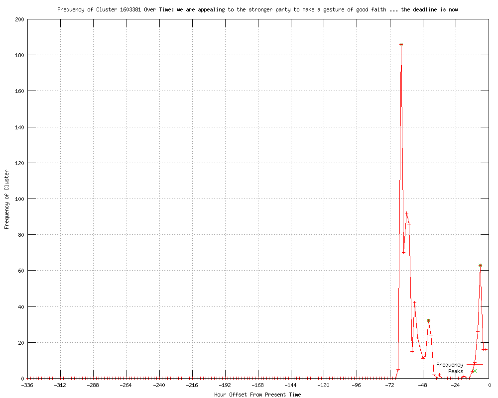 | 84 | we are appealing to the stronger party to make a gesture of good faith ... the deadline is now Urls http://guardian.co.uk/world/feedarticle/10173071 http://seattletimes.nwsource.com/html/nationworld/2017878973_apmlsyria.html?syndication=rss http://globalnews.ca/Canada/syrian+official+says+army+will+not+make+1st+move+withdraw+troops+from+flashpoint+areas/6442612102/story.html http://newstalk650.com/content/syrian-official-says-regime-wont-back-down-first http://ckom.com/content/syrian-official-says-regime-wont-back-down-first http://cjme.com/content/syrian-official-says-regime-wont-back-down-first http://ctv.ca/CTVNews/World/20120331/syria-cease-fire-plan-implementation-challenges-120331/ http://ctv.ca/CTVNews/TopStories/20120331/syria-cease-fire-plan-implementation-challenges-120331/ http://miamiherald.com/2012/03/31/2724439/syrian-official-says-regime-wont.html http://wkrn.com/story/17301213/syrian-official-says-regime-wont-back-down-first http://kswo.com/story/17301213/syrian-official-says-regime-wont-back-down-first http://wtol.com/story/17301213/syrian-official-says-regime-wont-back-down-first http://klfy.com/story/17301213/syrian-official-says-regime-wont-back-down-first http://kwes.com/story/17301213/syrian-official-says-regime-wont-back-down-first http://live5news.com/story/17301213/syrian-official-says-regime-wont-back-down-first http://mysanantonio.com/news/article/Syrian-official-says-regime-won-t-back-down-first-3439868.php http://wten.com/story/17301213/syrian-official-says-regime-wont-back-down-first http://wlox.com/story/17301213/syrian-official-says-regime-wont-back-down-first http://khnl.com/story/17301213/syrian-official-says-regime-wont-back-down-first http://enquirerherald.com/2012/03/31/1866984/syrian-official-says-regime-wont.html http://newstimes.com/news/article/Syrian-official-says-regime-won-t-back-down-first-3439868.php http://msnbc.msn.com/id/46913100 http://ajc.com/news/nation-world/syrian-official-says-regime-1403263.html?cxtype=rss_news_82109 http://wsfa.com/story/17301213/syrian-official-says-regime-wont-back-down-first http://klkntv.com/story/17301213/syrian-official-says-regime-wont-back-down-first http://fortmilltimes.com/2012/03/31/1953267/syrian-official-says-regime-wont.html http://guardian.co.uk/world/feedarticle/10173224 http://wsbradio.com/ap/ap/top-news/syrian-official-says-regime-wont-back-down-first/nLwtr/ http://wandtv.com/story/17301213/syrian-official-says-regime-wont-back-down-first http://startribune.com/world/145370415.html http://wkyc.com/news/national/238907/22/Syrian-official-says-regime-wont-back-down-first http://wfie.com/story/17301213/syrian-official-says-regime-wont-back-down-first http://cbsnews.com/8301-202_162-57407524/syrian-official-regime-wont-back-down/ http://wkyc.com/news/news_article.aspx?storyid=238907 http://wboc.com/story/17301213/syrian-official-says-regime-wont-back-down-first http://guardian.co.uk/world/feedarticle/10173251 http://wsbradio.com/ap/ap/international/syrian-official-says-regime-wont-back-down-first/nLwtr/ http://news-sentinel.com/apps/pbcs.dll/article?AID=/20120331/NEWS/120339925/1006 http://news-sentinel.com/apps/pbcs.dll/article?AID=/20120331/NEWS/120339925 http://feeds.cbsnews.com/~r/CBSNewsMain/~3/NutRu-3qixQ/ http://cbsnews.com/8301-501713_162-57407523/syrian-official-says-regime-wont-back-down-first/ http://globalnews.ca/Canada/syrian+official+says+army+will+not+make+1st+move+withdraw+troops+from+flashpoint+areas2/6442612129/story.html http://news.feedzilla.com/en_us/stories/top-news/world-news/210716870?client_source=feed&format=rss http://abc40.com/story/17301213/syrian-official-says-regime-wont-back-down-first http://twincities.com/news/ci_20297254/syrian-official-says-regime-wont-back-down-first?source=rss http://lakewyliepilot.com/2012/03/31/1483108/syrian-official-says-regime-wont.html http://news.yahoo.com/syria-says-wont-first-lay-down-arms-184039423.html http://ckom.com/content/syria-says-it-wont-be-first-lay-down-arms http://cjme.com/content/syria-says-it-wont-be-first-lay-down-arms http://ajc.com/news/nation-world/syria-says-it-wont-1403263.html?cxtype=rss_news_82109 http://thespec.com/news/world/article/697046--syria-rejects-appeal-by-un-chief http://guardian.co.uk/world/feedarticle/10173572 http://guardian.co.uk/world/feedarticle/10173555 http://newstalk650.com/content/syria-says-it-wont-be-first-lay-down-arms http://seattlepi.com/news/article/Syria-says-it-won-t-be-first-to-lay-down-arms-3439868.php http://mail.com/news/world/1174276-syria-wont-to-lay-arms.html http://kolotv.com/internationalnews/headlines/Syria_Says_it_Wont_be_First_to_Lay_Down_Arms_145420415.html http://denverpost.com/iraq/ci_20297254/syrian-official-says-regime-wont-back-down-first http://kdwn.com/news/world-news/Syria_says_it_wont_be_first_to_lay_down_arms http://newsday.com/news/world/syria-says-it-won-t-be-first-to-lay-down-arms-1.3635452 http://stuff.co.nz/timaru-herald/world/6674576/Syria-says-it-won-t-be-first-to-lay-down-arms http://stuff.co.nz/world/middle-east/6674576/Syria-says-it-won-t-be-first-to-lay-down-arms http://guardian.co.uk/world/feedarticle/10173716 http://cbc.ca/news/world/story/2012/03/31/syria-rejects-annan-offer.html http://en.apa.az/news.php?id=168688 http://cbc.ca/news/world/story/2012/03/31/syria-rejects-annan-offer.html?cmp=rss http://haaretz.com/news/international/syria-demands-peace-before-troops-withdraw-from-cities-1.421865?localLinksEnabled=false http://deccanchronicle.com/channels/world/middle-east/syria-says-it-wont-be-first-lay-down-arms-548 http://guardian.co.uk/world/feedarticle/10173950 http://arabtimesonline.com/RSS/tabid/69/smid/414/ArticleID/181455/t/Syria-says-it-won-t-be-first-to-lay-down-arms/Default.aspx http://hutchnews.com/World/BC-ML--Syria-7th-Ld-Writethru--69-20120331-16-20-00 http://tv3.ie/article.php?locID=1.2.&article_id=69476 http://abcnews.go.com/International/wireStory/syrian-official-regime-back-16044577 http://theglobeandmail.com/news/world/just-da