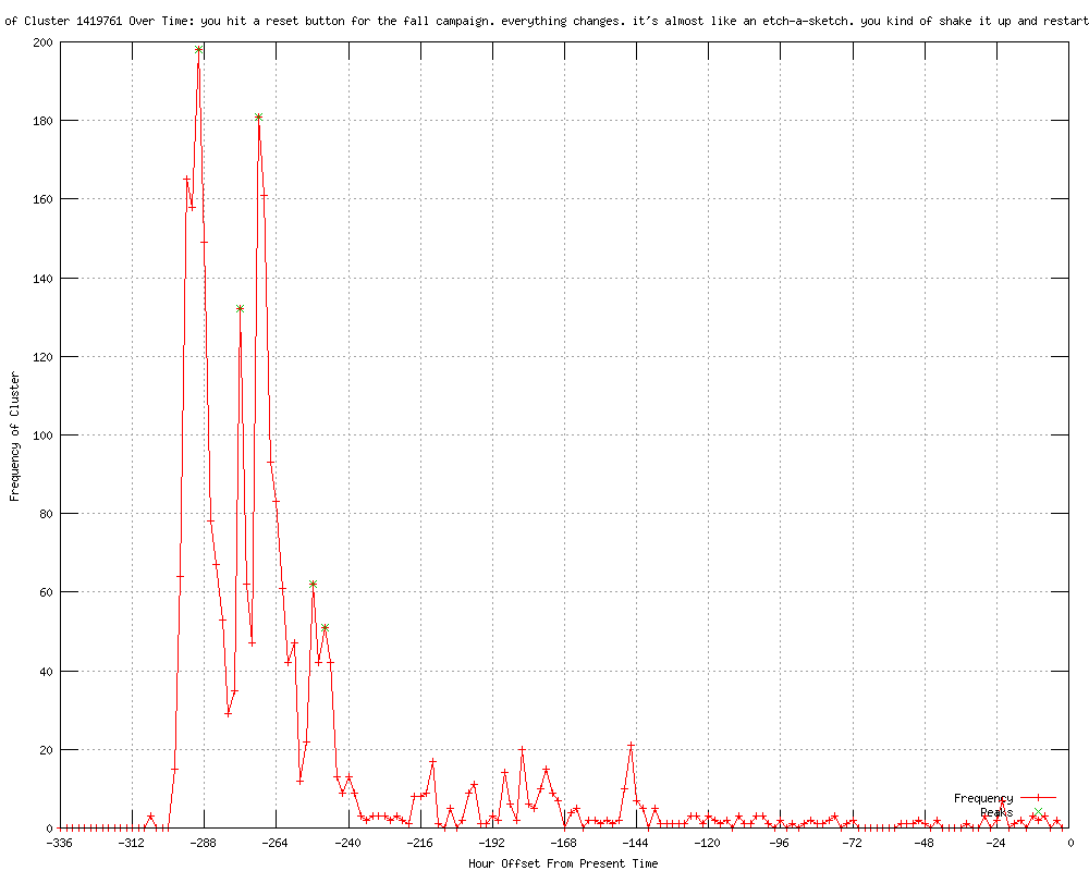 | 34 | everything changes. it's almost like an etch a sketch. you can kind of shake it up and we start all over again Urls http://nbcwashington.com/blogs/first-read-dmv/Etch-A-Sketch-Shakes-Campaign-Rattles-Romney-143717676.html http://newsmax.com/Newsfront/001513NODE-001565NODE-001575NODE-2500/2012/03/21/id/433419 http://us.rd.yahoo.com/finance/external/bloomberg/rss/SIG=13cqimg6v/*http://www.bloomberg.com/news/2012-03-21/romney-beats-santorum-in-illinois-as-long-race-remains-ahead.html?cmpid=yhoo http://post-gazette.com/stories/news/politics-national/romney-feels-momentum-carrying-him-to-nomination-627396/ http://latimes.com/news/politics/la-pn-romney-etch-a-sketch-20120321,0,2407636.story?track=rss http://latimes.com/news/la-pn-romney-etch-a-sketch-20120321,0,2437464.story?track=rss http://latimes.com/news/politics/la-pn-romney-campaign-failing-to-shake-off-etch-a-sketch-label-20120321,0,7348129.story?track=rss http://vixenstrangelymakesuncommonsense.blogspot.com/2012/03/unenviable-branding-genius-of-eric.html http://nypost.com/p/news/national/jeb_mitt_man_Av6bUPKW28pUz2vFktg9jJ?utm_medium=rss&utm_content=National http://conservativerefocus.com/blog5.php/2012/03/21/romney-camp-s-latest-verbal-blunder-may-be-etch-a-sketched-in-history http://feeds.huffingtonpost.com/~r/HP/media/~3/MXRRhODvdNA/john-mccain-etch-a-sketch_n_1373509.html http://nydailynews.com/news/election-2012/mitt-romney-wife-ann-damage-control-mode-eric-fehrnstrom-etch-a-sketch-gaffe-article-1.1048782?localLinksEnabled=false http://vcstar.com/news/2012/mar/22/milbank-romney-advisers-game-changer/?partner=RSS http://totalcapitol.com/?news_id=5006293&redirect=http://www.vcstar.com/news/2012/mar/22/milbank-romney-advisers-game-changer/?partner=RSS http://DecaturDaily.com/stories/In-praise-of-Etch-a-Sketch,93329 http://thinkprogress.org/romm/2012/03/22/449724/etch-a-sketch-in-2006-romney-touted-high-gasoline-prices-to-discourage-consumption/ http://patrickhenrypress.info/node/597419 http://northjersey.com/r?19=961&43=516422&44=143870516&32=4497&7=309037&40=http%3A%2F%2Fwww.northjersey.com%2Fnews%2Fopinions%2Fmilbank_032312.html http://courier-journal.com/article/20120323/OPINION04/303230021/Dana-Milbank-Etch-Sketch-gaffe-torments-Mitt-Romney?odyssey=nav|head http://courier-journal.com/article/20120323/OPINION04/303230021/Dana-Milbank-Etch-Sketch-gaffe-torments-Mitt-Romney?odyssey=mod|newswell|text|Home|s http://courier-journal.com/article/20120323/OPINION04/303230021/Dana-Milbank-Etch-A-Sketch-gaffe-torments-Mitt-Romney?odyssey=tab|mostpopular|text|FRONTPAGE http://courier-journal.com/article/20120323/OPINION04/303230021/Dana-Milbank-Etch-A-Sketch-gaffe-torments-Mitt-Romney?odyssey=tab|mostpopular|img|FRONTPAGE http://washingtonpost.com/blogs/post-partisan/post/fridays-p-op-quiz-etch-a-sketch-edition/2011/03/04/gIQAjFnMUS_blog.html?wprss=post-partisan http://thinkprogress.org/romm/2012/03/23/450555/romney-etch-a-sketch-eight-reasons-the-gaffe-will-endure/ http://patrickhenrypress.info/node/598544 http://sierraactivist.org/2012/03/23/romney-can-create-jobs-etch-a-sketch-sales-jump-1500-eight-reasons-the-gaffe-will-endure/?utm_source=rss&utm_medium=rss&utm_campaign=romney-can-create-jobs-etch-a-sketch-sales-jump-1500-eight-reasons-the-gaffe-will-endure http://huffingtonpost.com/joseph-romm/eight-reasons-the-etch-a-_b_1375697.html http://blogotariat.com/node/304027 http://facebookapplicationdevelopment.org/uncategorized/joseph-romm-eight-reasons-the-etch-a-sketch-gaffe-will-endure/ http://bangordailynews.com/2012/03/23/opinion/romneys-etch-a-sketch-gaffe/ http://allword-news.co.uk/2012/03/24/eight-reasons-the-etchasketch-gaffe-will-endure/ http://965kvki.com/mitt-romney-etch-a-sketch-sales-dollars-and-sense-video/ http://ksfa860.com/mitt-romney-etch-a-sketch-sales-dollars-and-sense-video/ http://newsradio95.com/mitt-romney-etch-a-sketch-sales-dollars-and-sense-video/ |